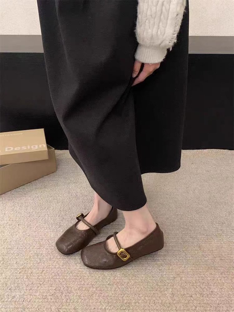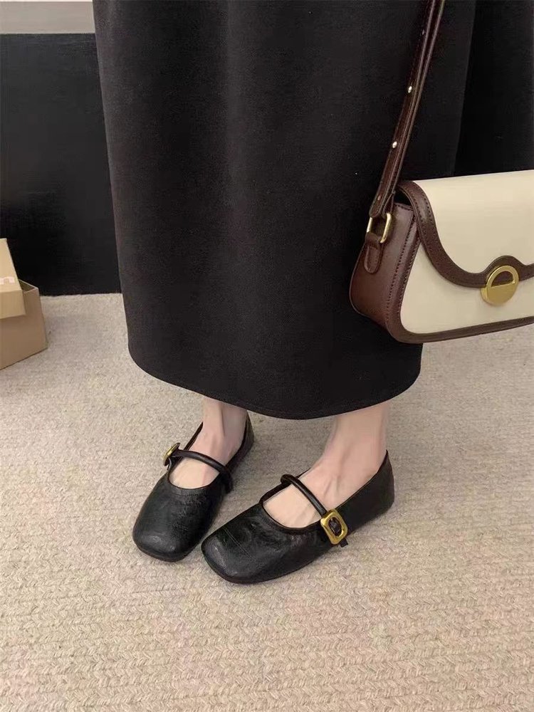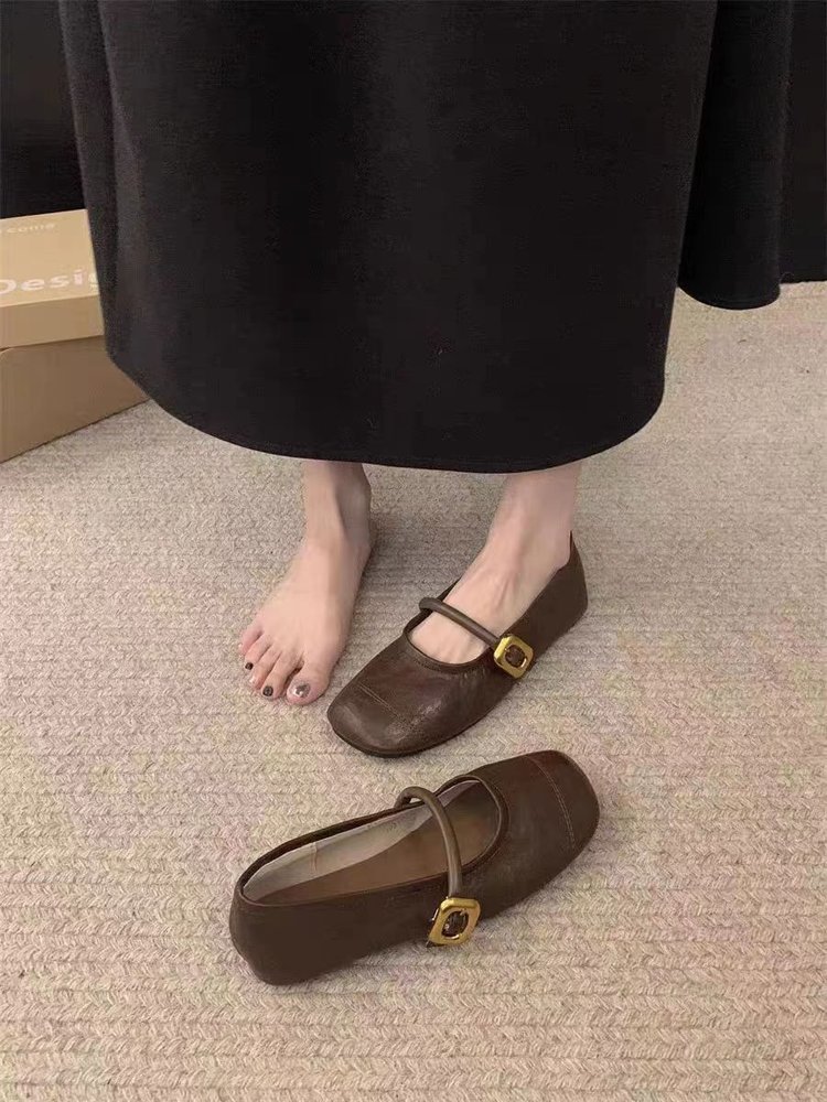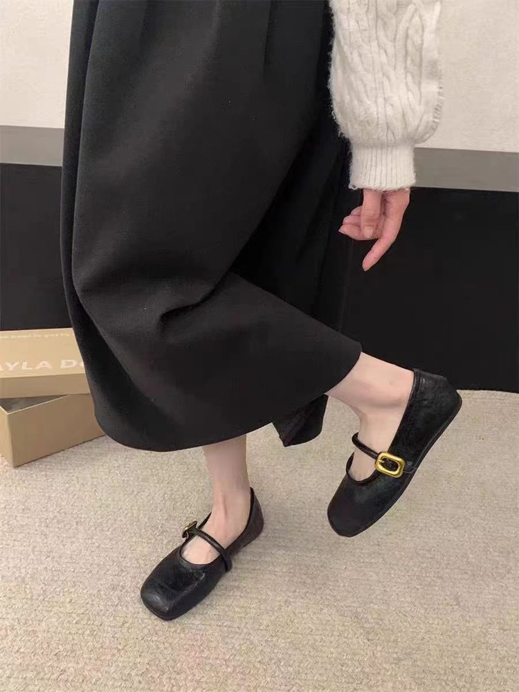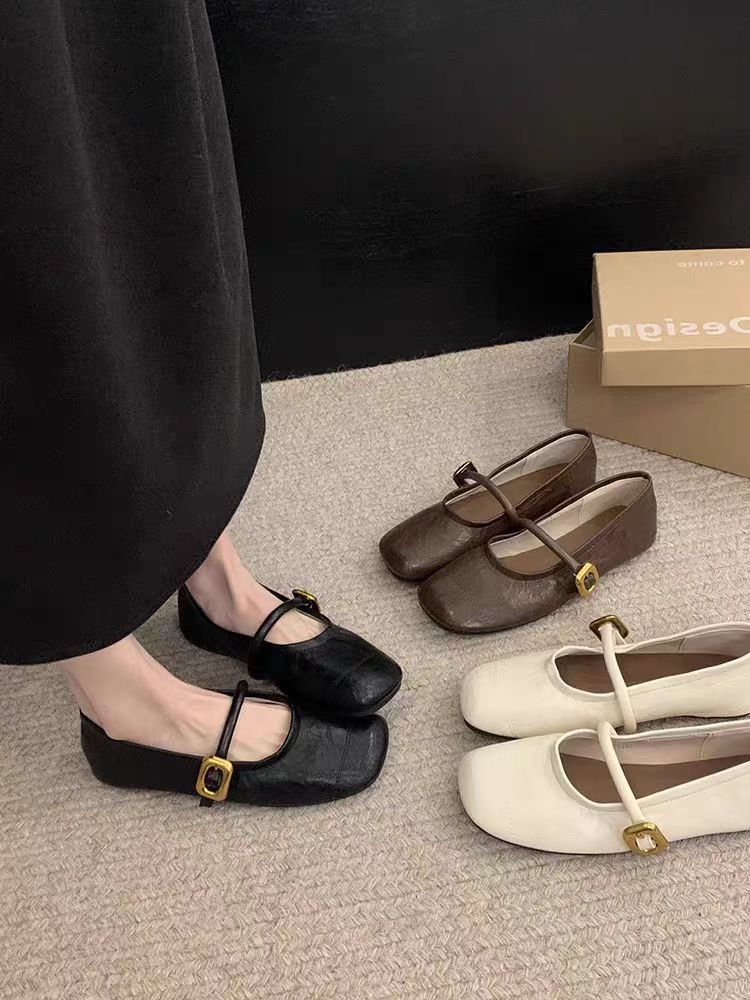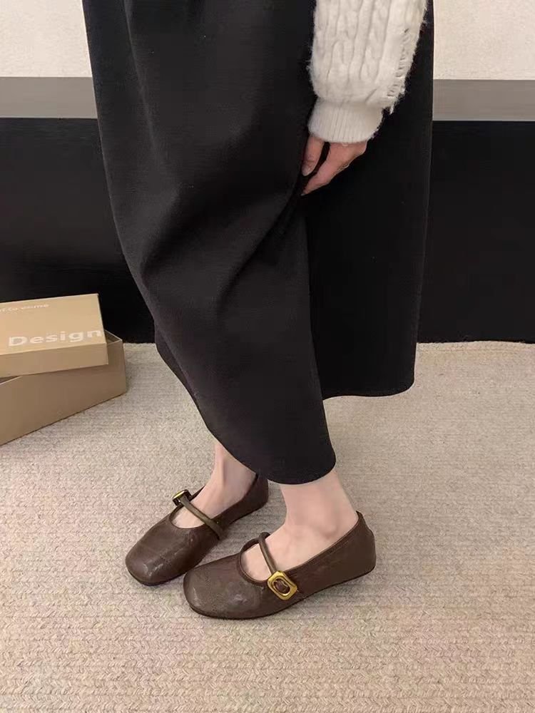 여성용 플랫 슈즈 2025 신상 봄, 가을 프렌치 스타일 메리제인 슈즈, 부드러운 밑창과 스커트가 잘 어울리는 비니 슈즈스토어 가기