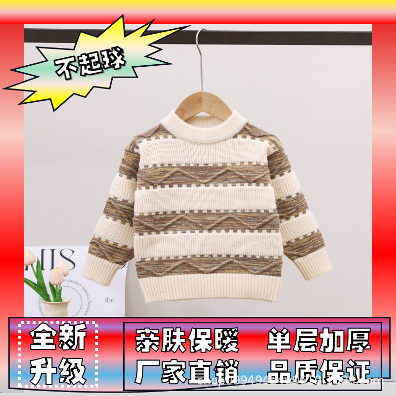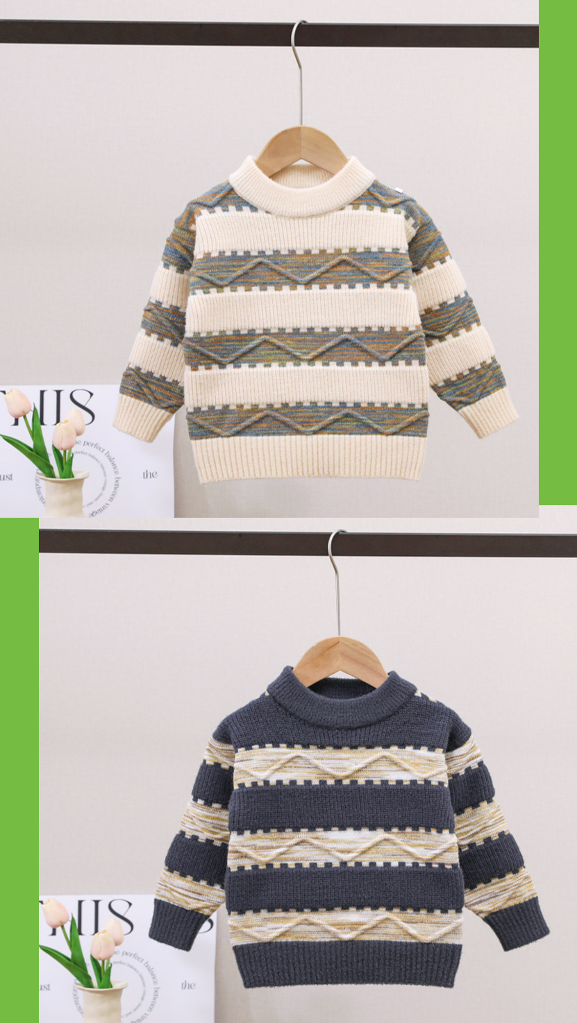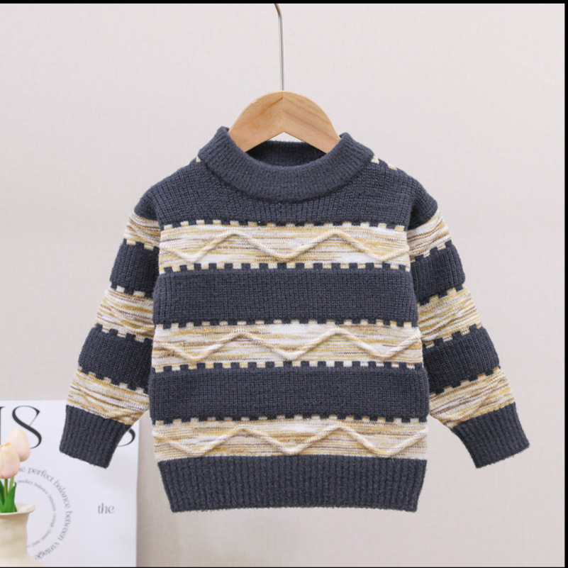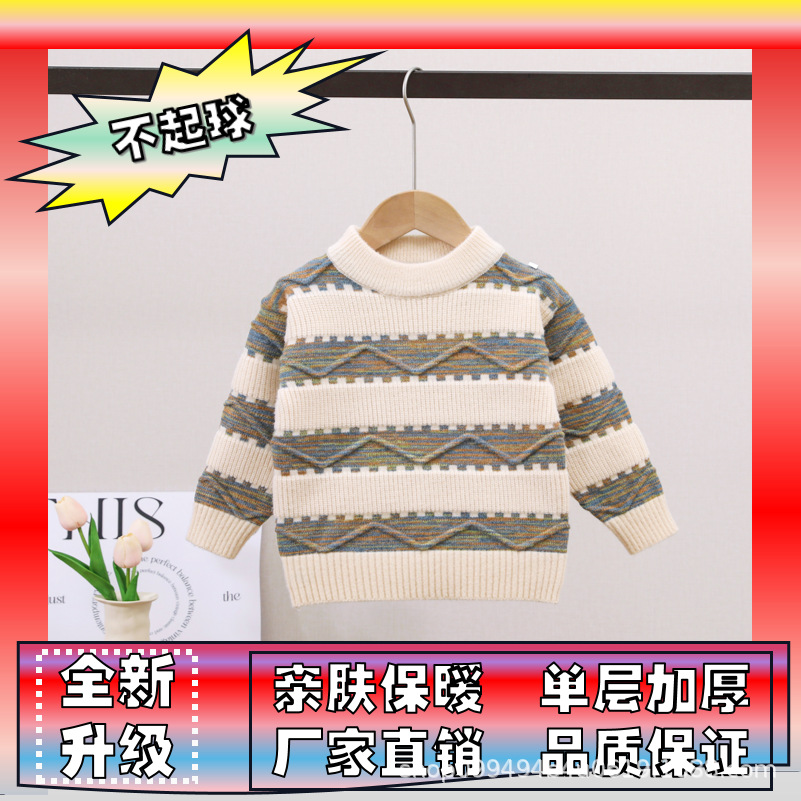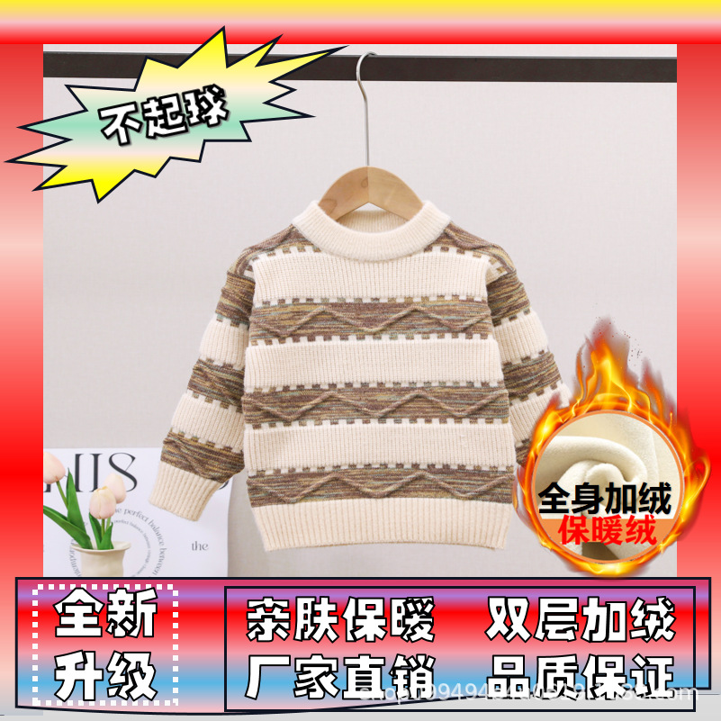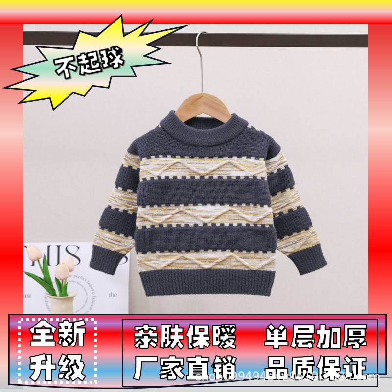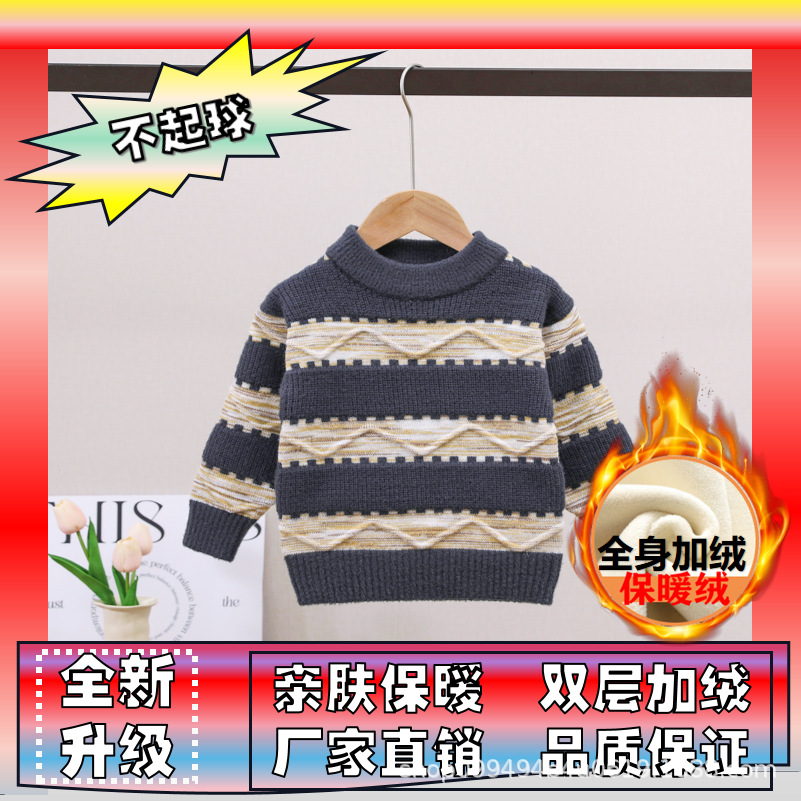 남아용 스웨터, 기모 처리 및 두꺼운 소재, 남아용 니트웨어, 2024년 아동 겨울옷, 보풀이 없는 스트라이프 배색 이너웨어스토어 가기