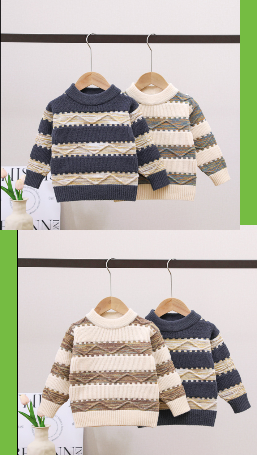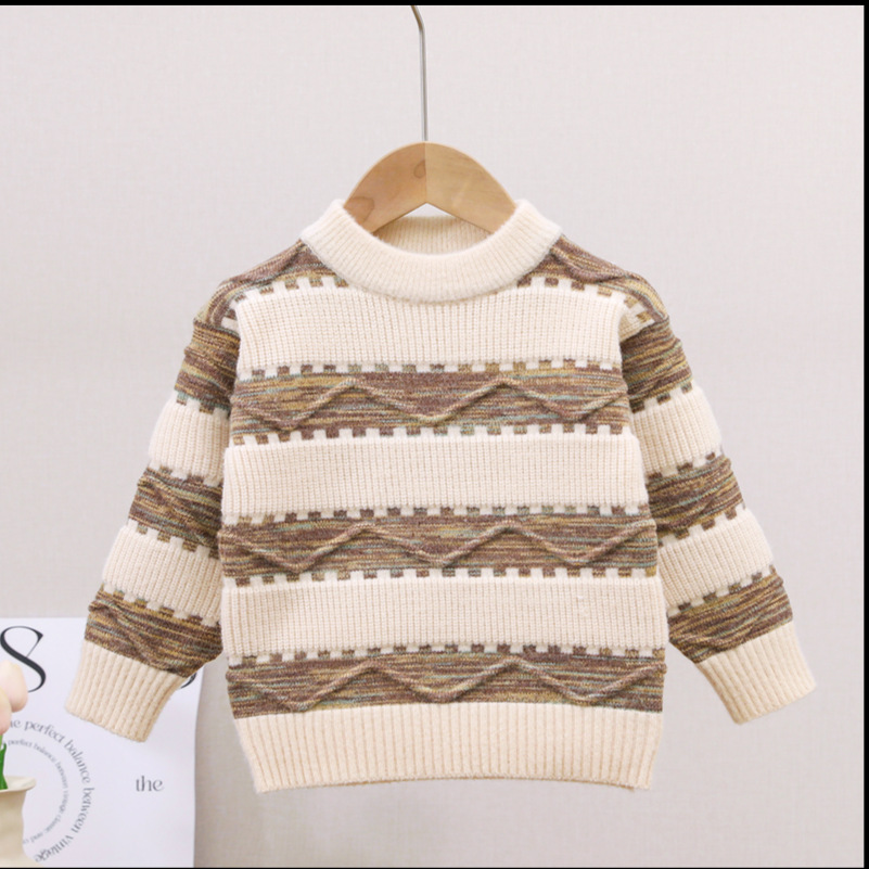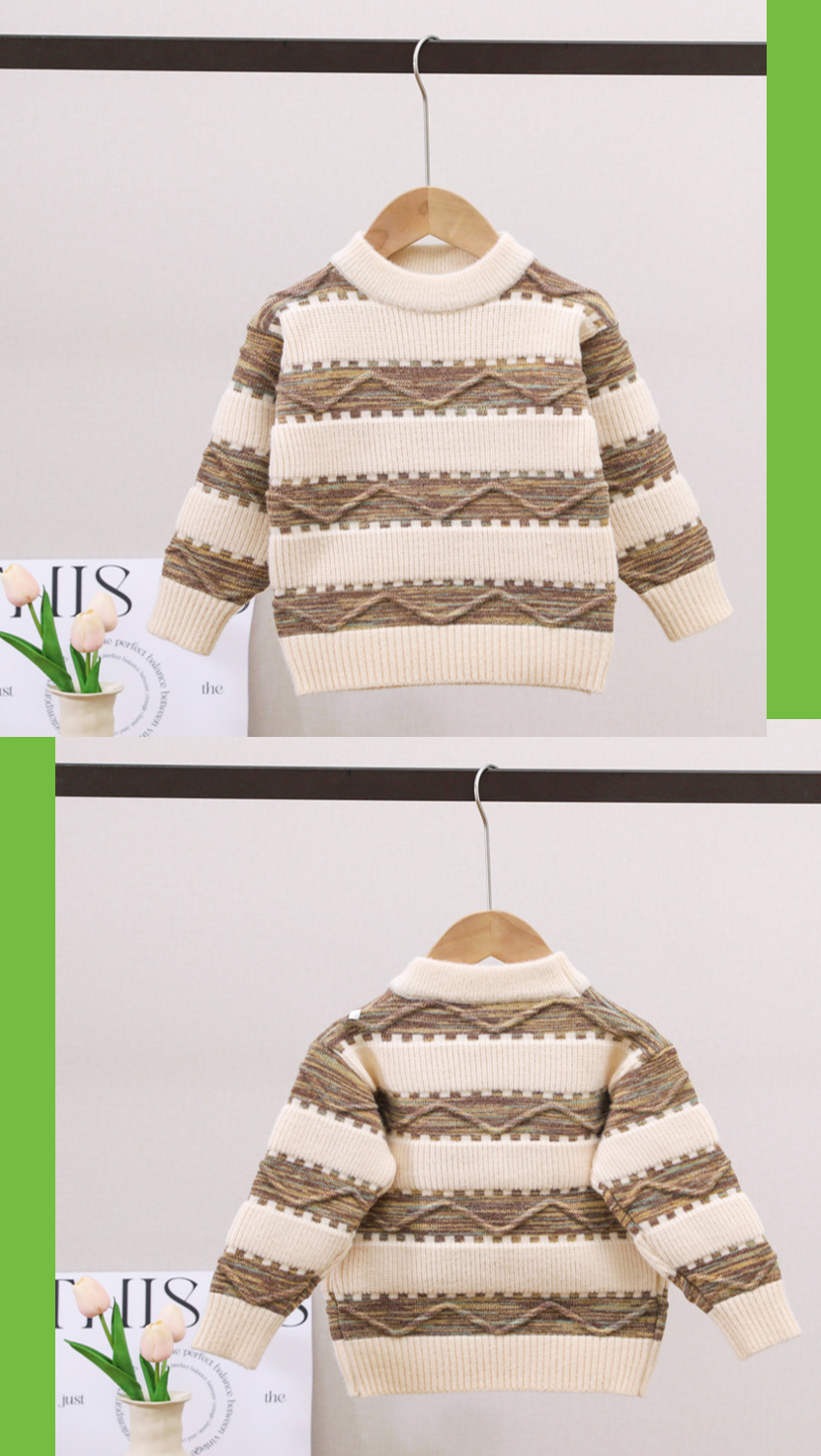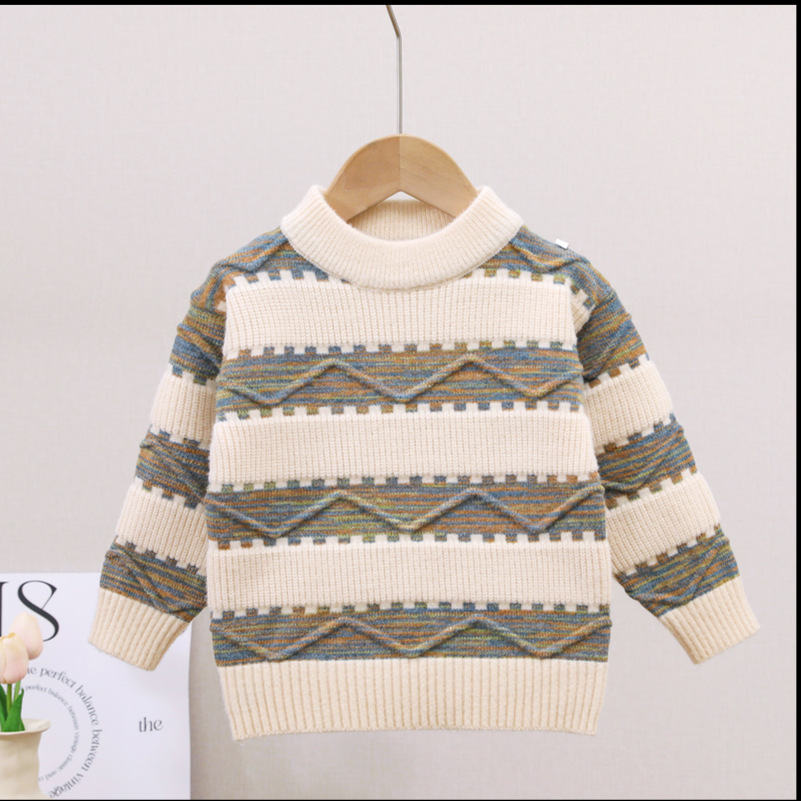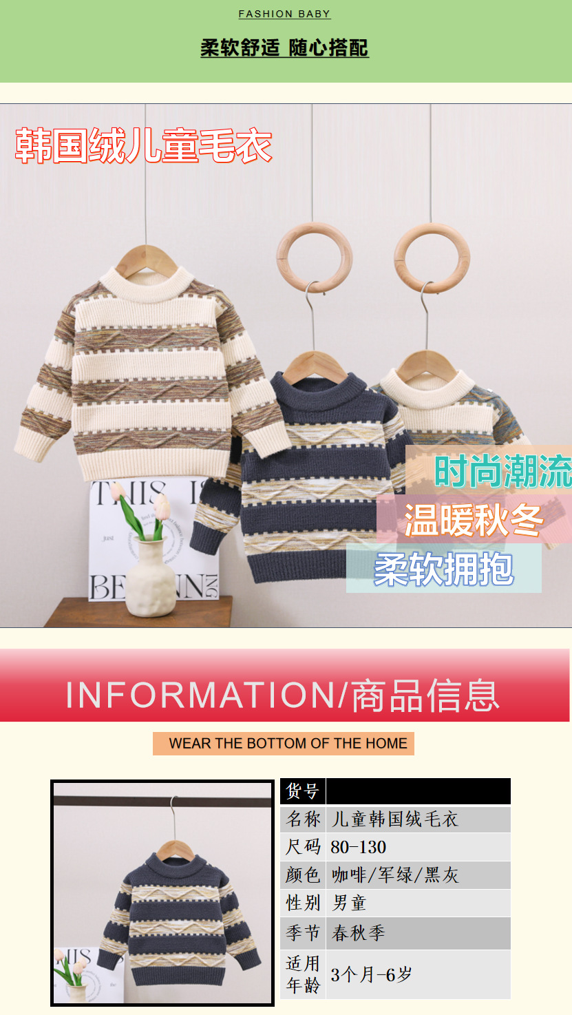 남아용 스웨터, 기모 처리 및 두꺼운 소재, 남아용 니트웨어, 2024년 아동 겨울옷, 보풀이 없는 스트라이프 배색 이너웨어스토어 가기