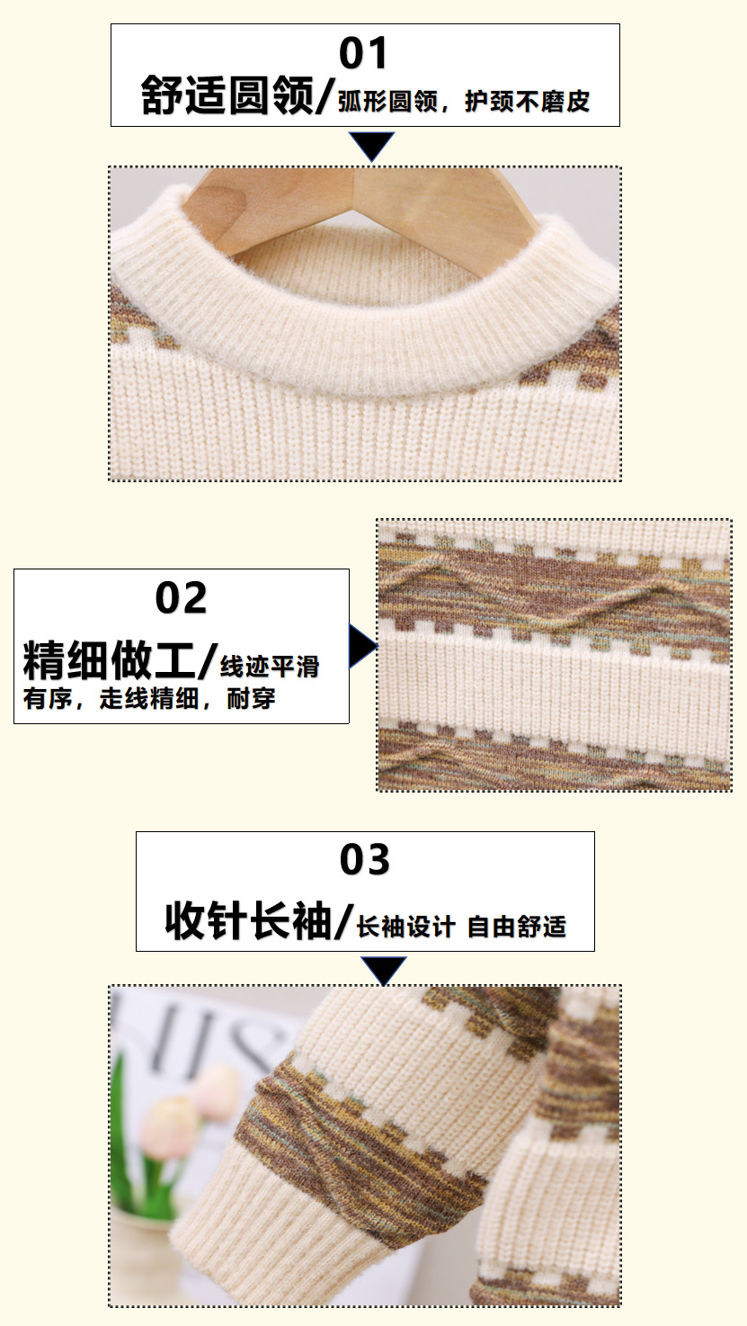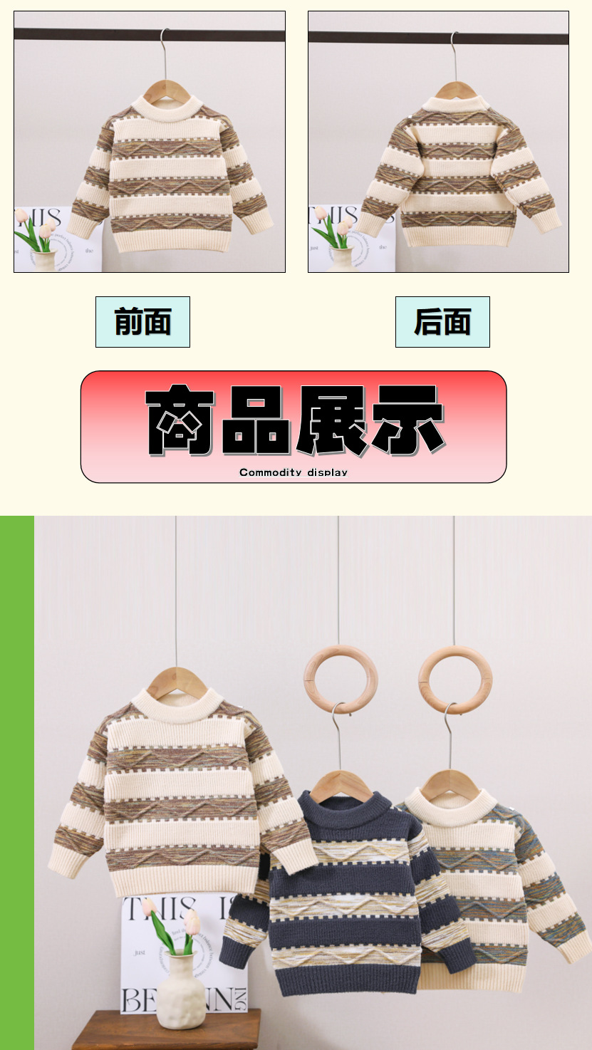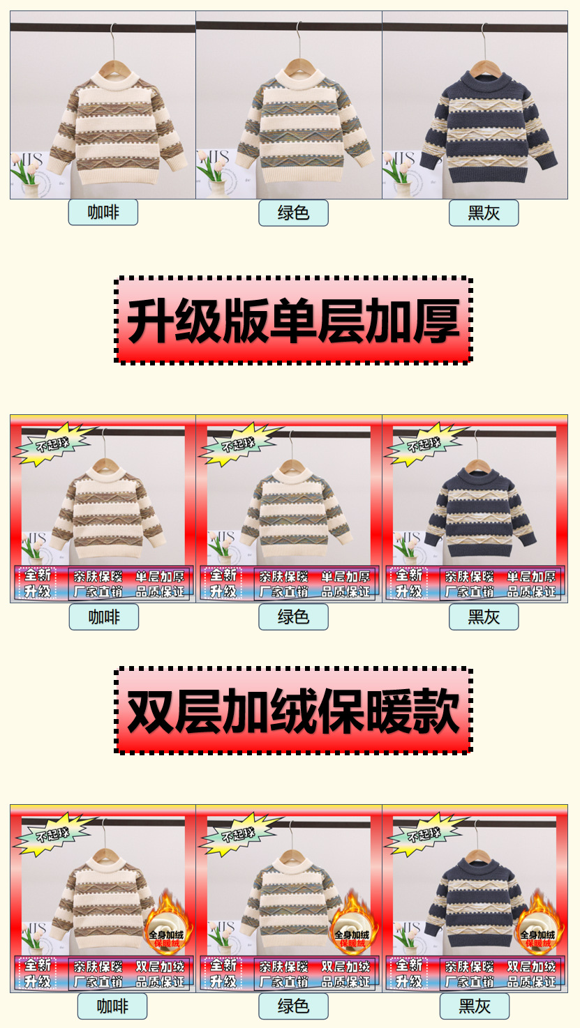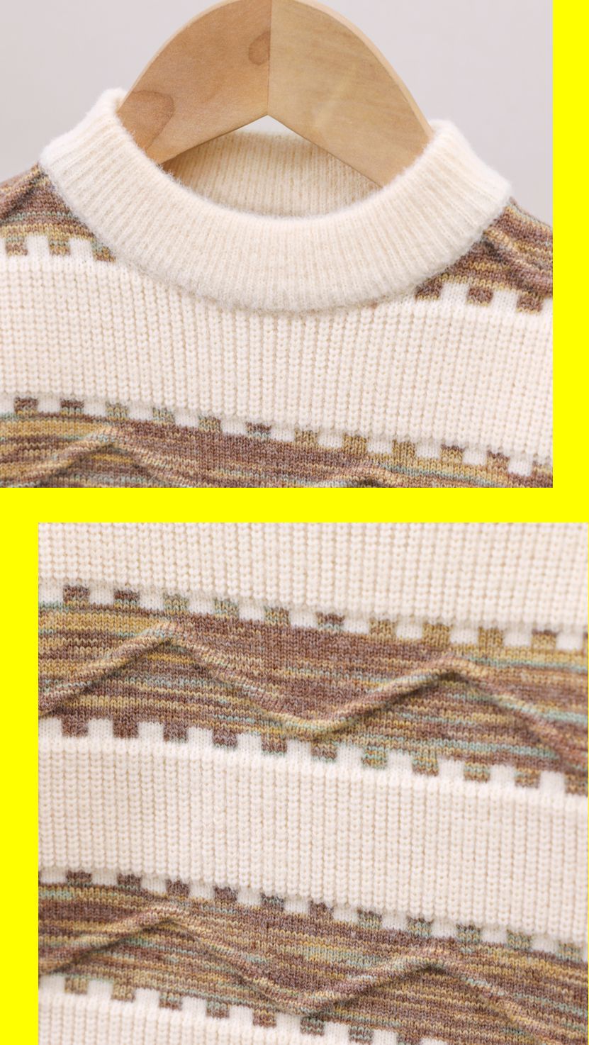 남아용 스웨터, 기모 처리 및 두꺼운 소재, 남아용 니트웨어, 2024년 아동 겨울옷, 보풀이 없는 스트라이프 배색 이너웨어스토어 가기