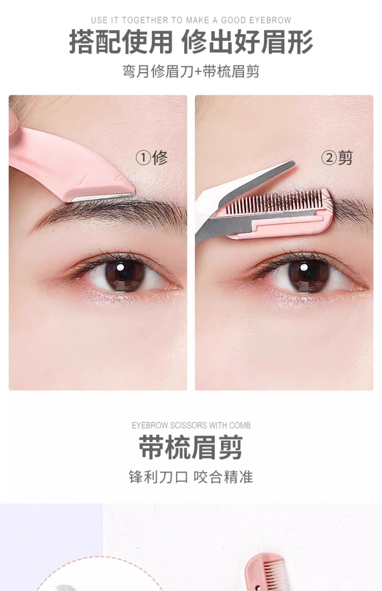 게으른 초보자를위한 2024 새로운 스타일의 눈썹 가위 눈썹 트리밍 나이프와 남성과 여성을위한 초보자 눈썹 면도 칼 세트스토어 가기