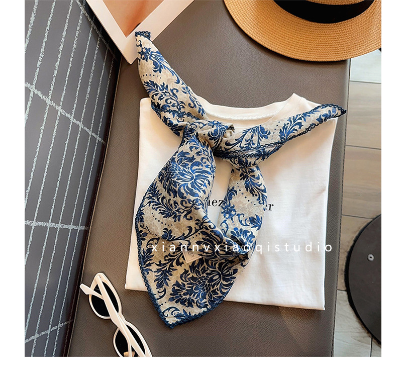 • (순면 70 레이스 스퀘어 스카프) 토템 아이슬란드 블루