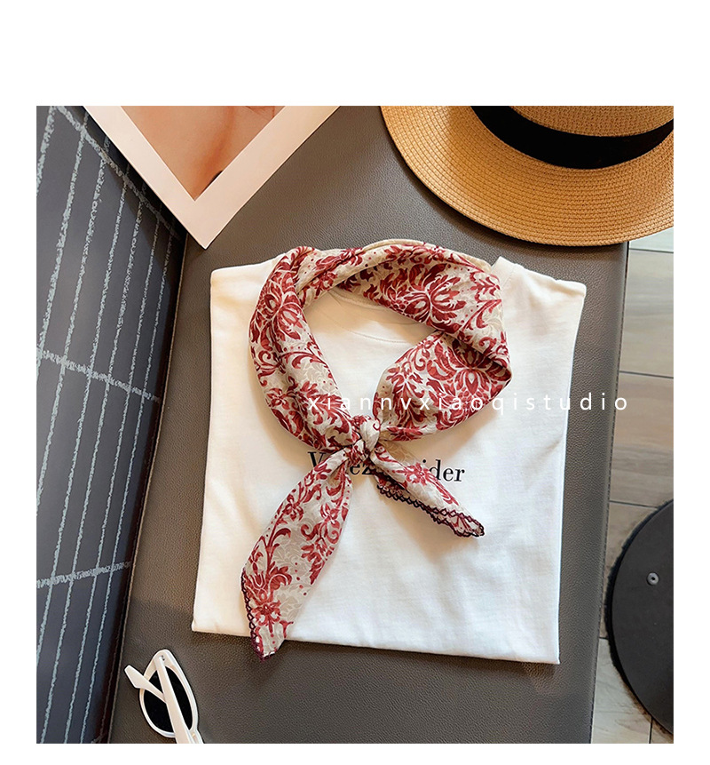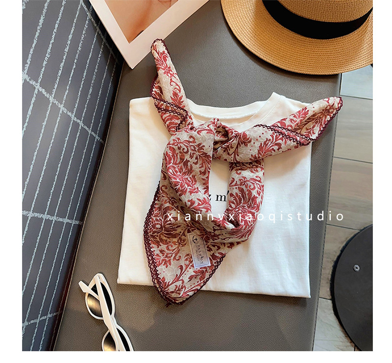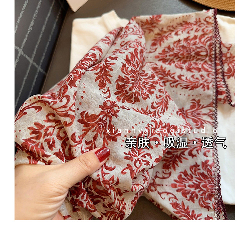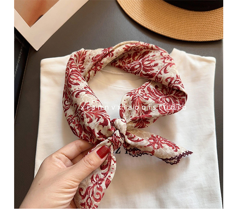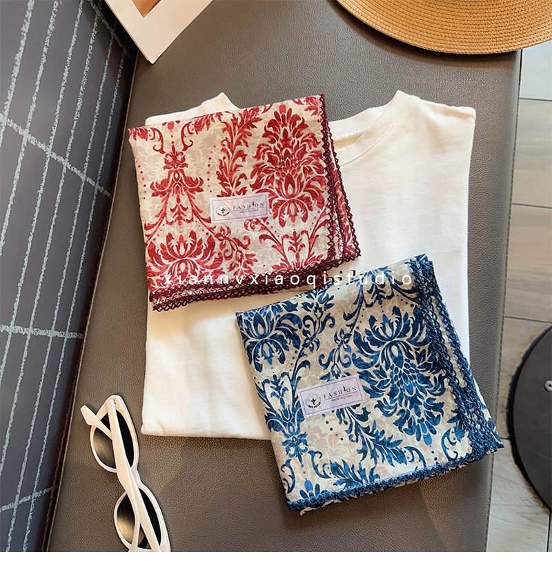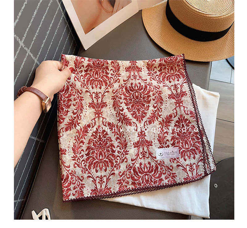 Ankora Red Vintage Totem 인쇄 순수 면 작은 광장 실크 스카프 여성의 봄과 가을 올 매치 일본식 헤드 스카프 헤어 벨트 스카프스토어 가기