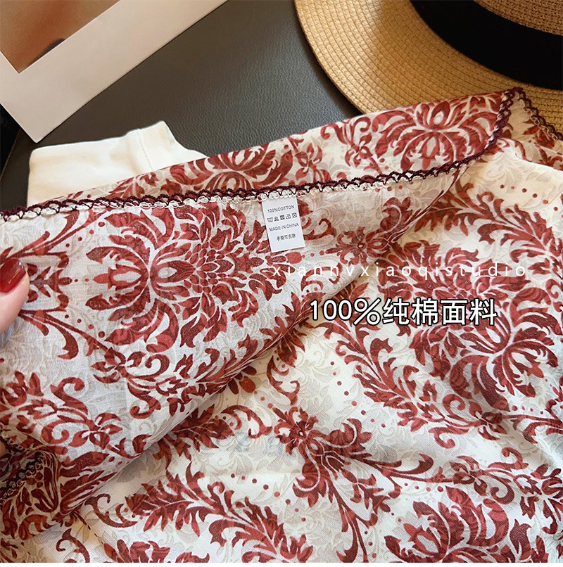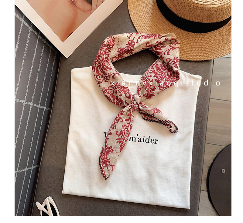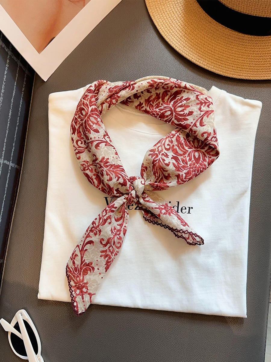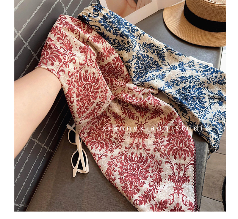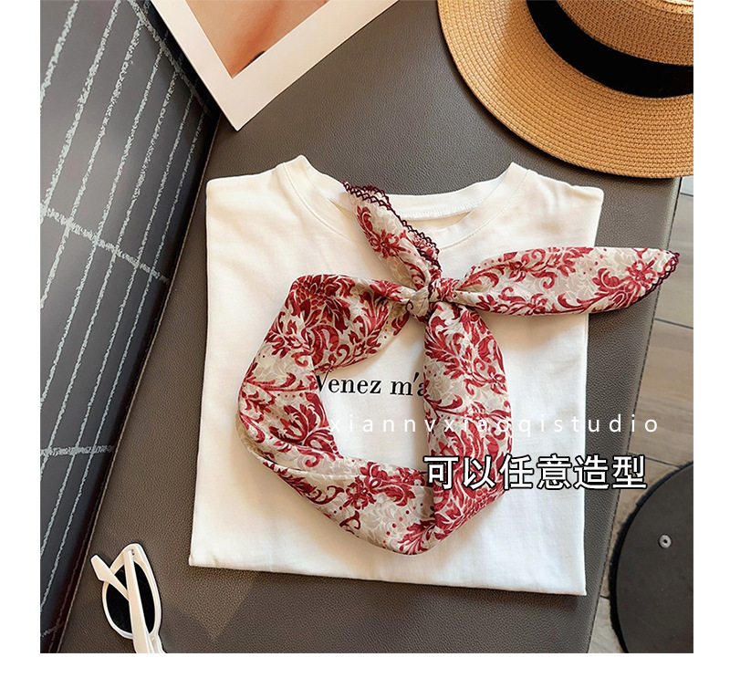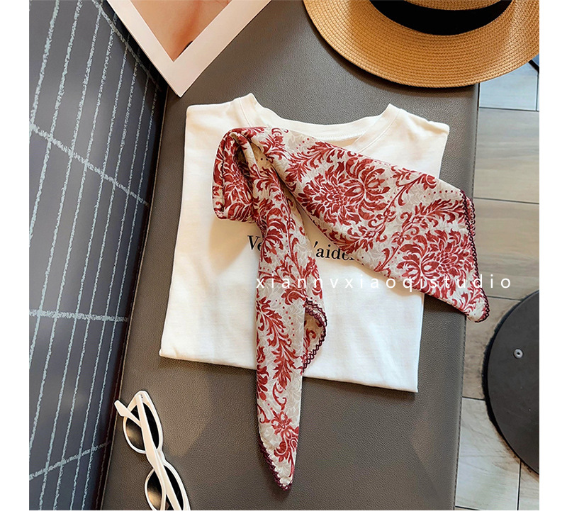 Ankora Red Vintage Totem 인쇄 순수 면 작은 광장 실크 스카프 여성의 봄과 가을 올 매치 일본식 헤드 스카프 헤어 벨트 스카프스토어 가기