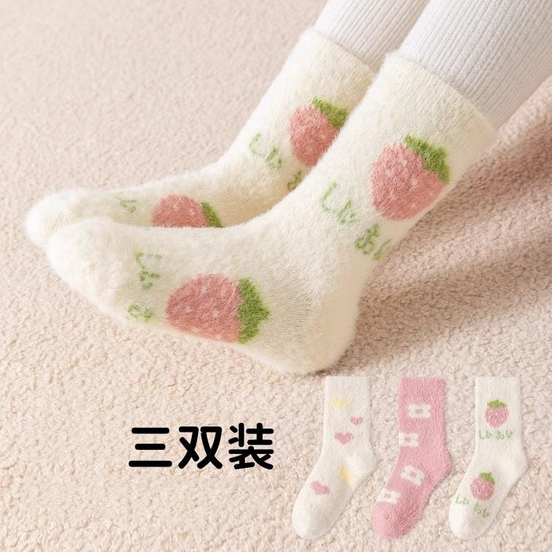 여아용 밍크 양털 양말 겨울용 두꺼운 아동 실내 바닥 양말 보온 중목 양말 두꺼운 보온 양말