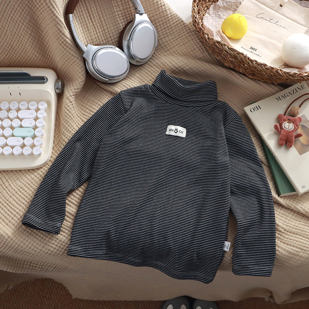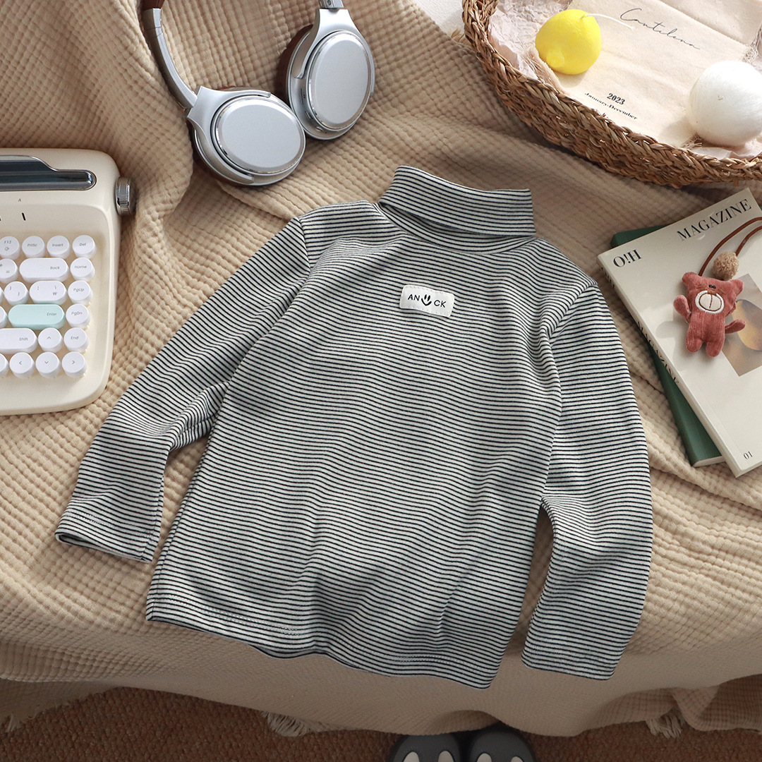 어린이 높은 칼라베이스 셔츠 가을 새 소년 긴팔 티셔츠 소녀 더미 칼라베이스 셔츠 아동용 줄무늬 옷스토어 가기