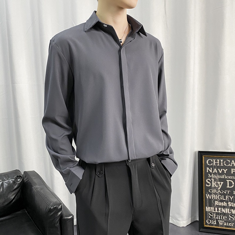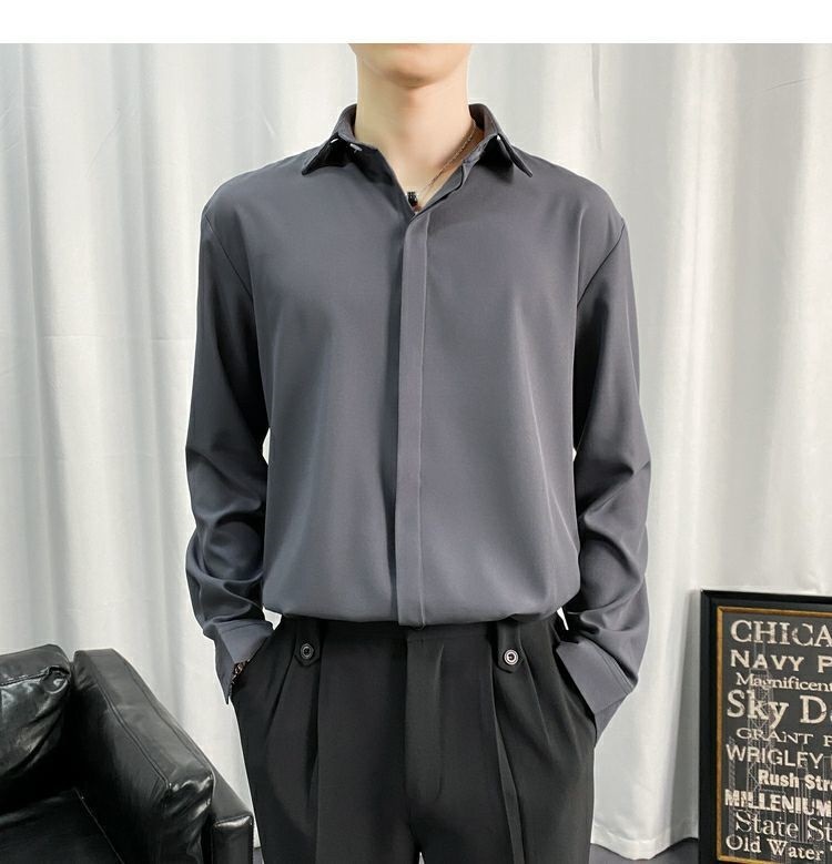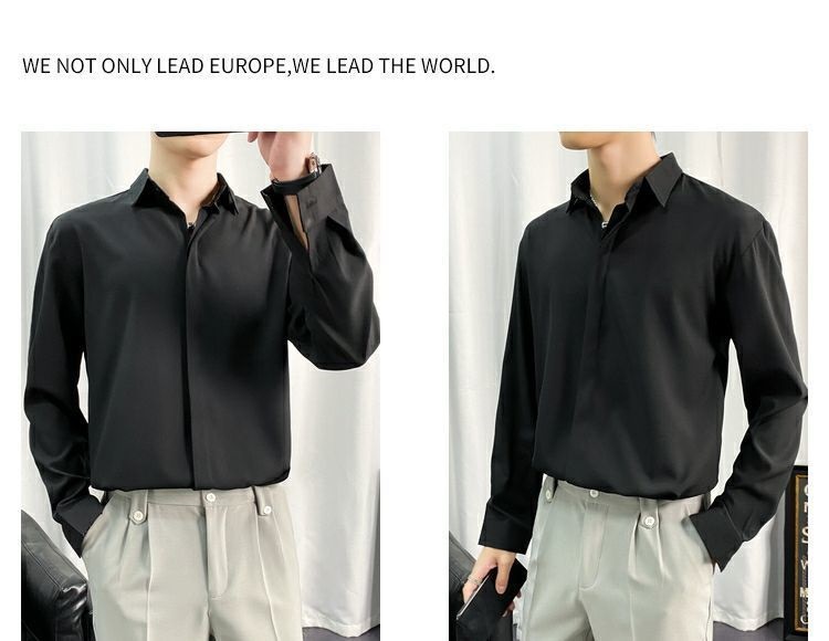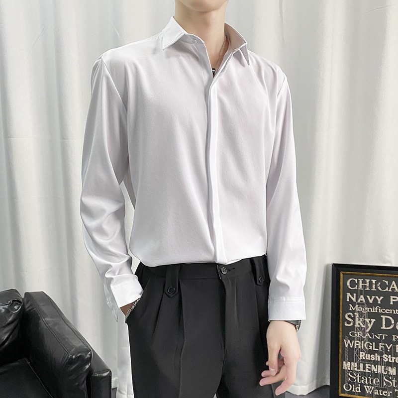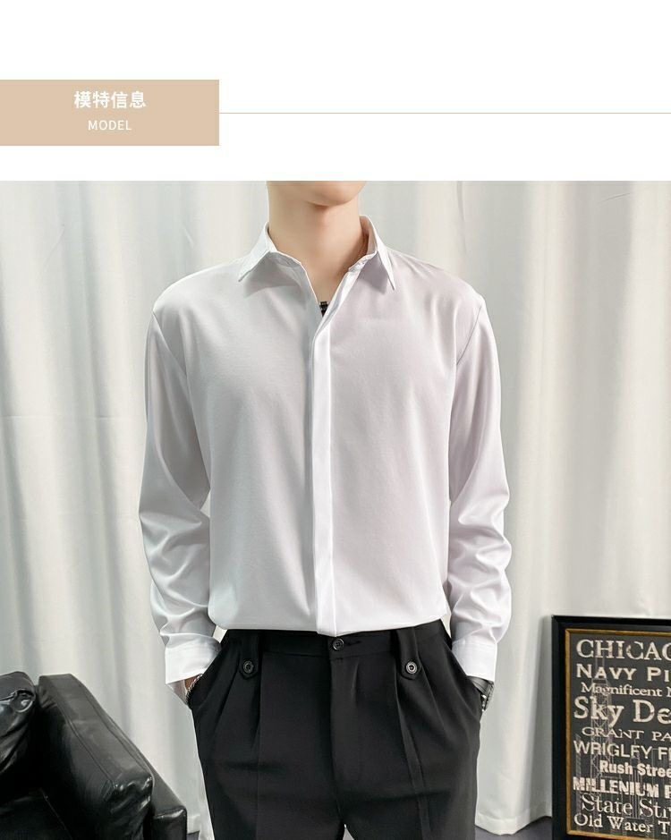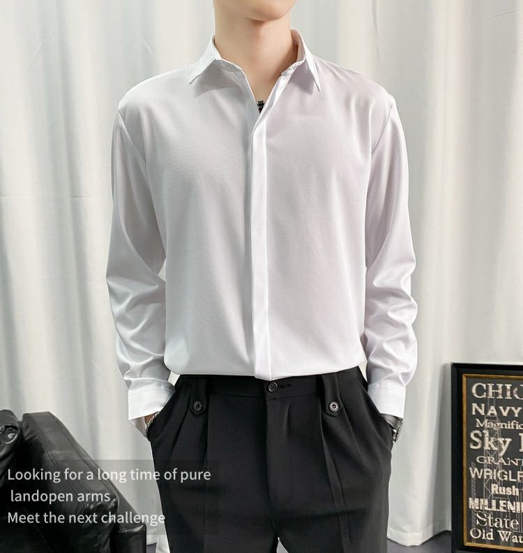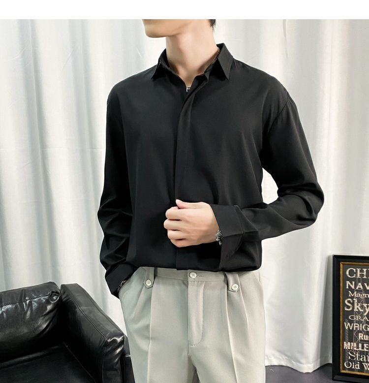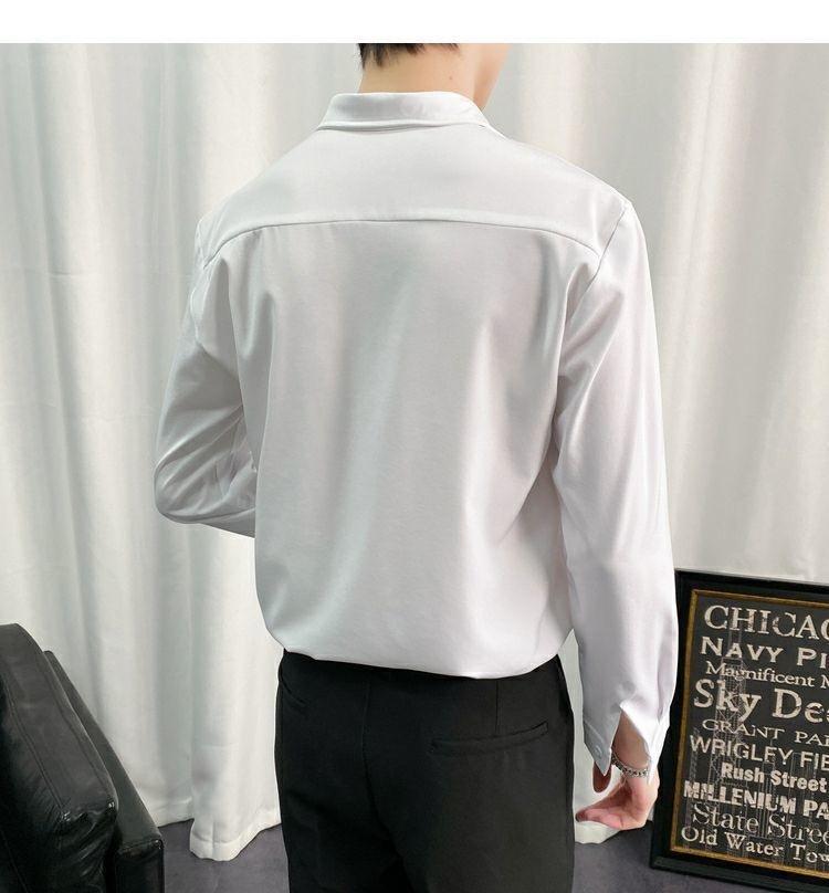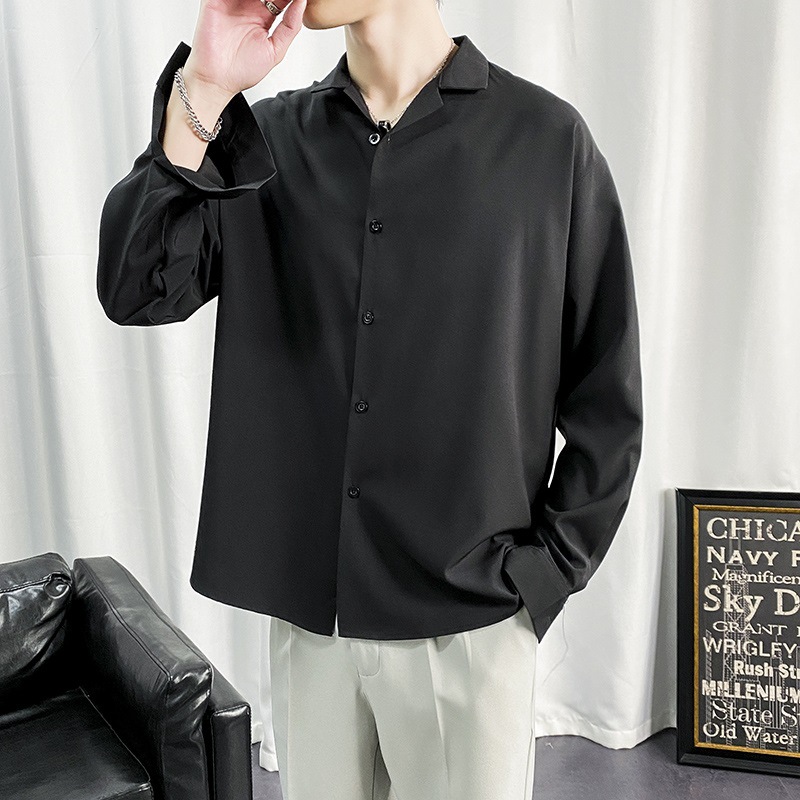 검은 셔츠 남자 긴팔 한국 스타일 유행 잘 생긴 Dk 남자 캐주얼 홍콩 스타일 일본식 게으른 스타일 비 다림질 화이트 셔츠스토어 가기