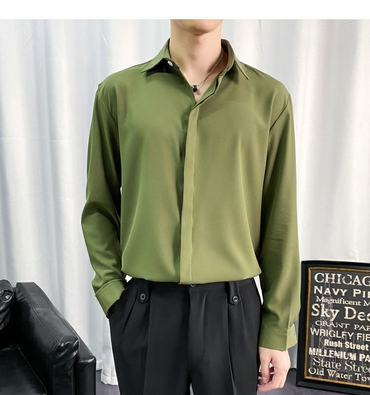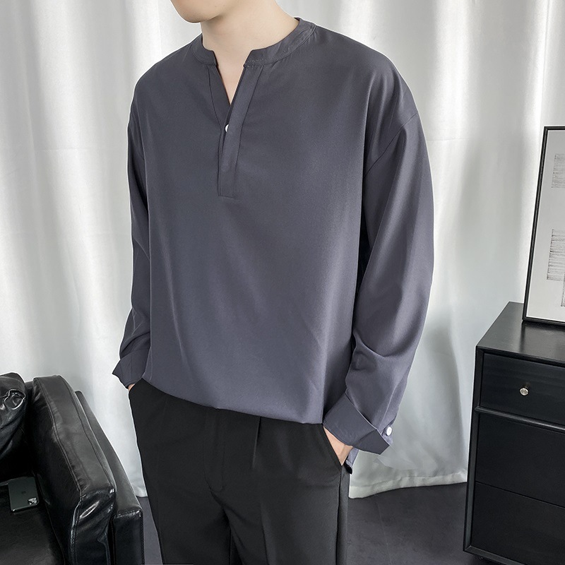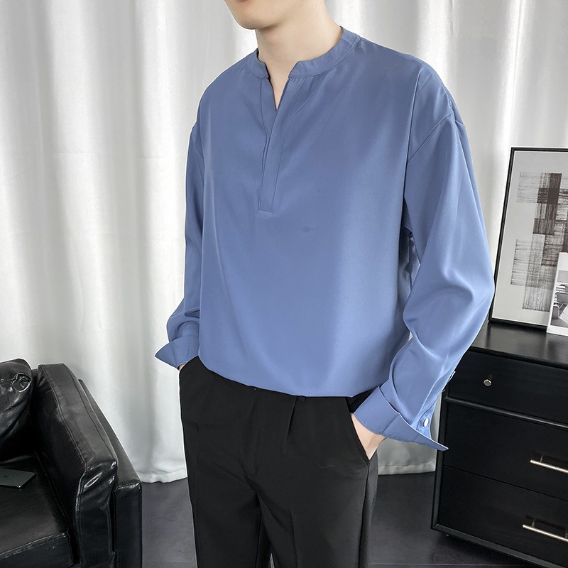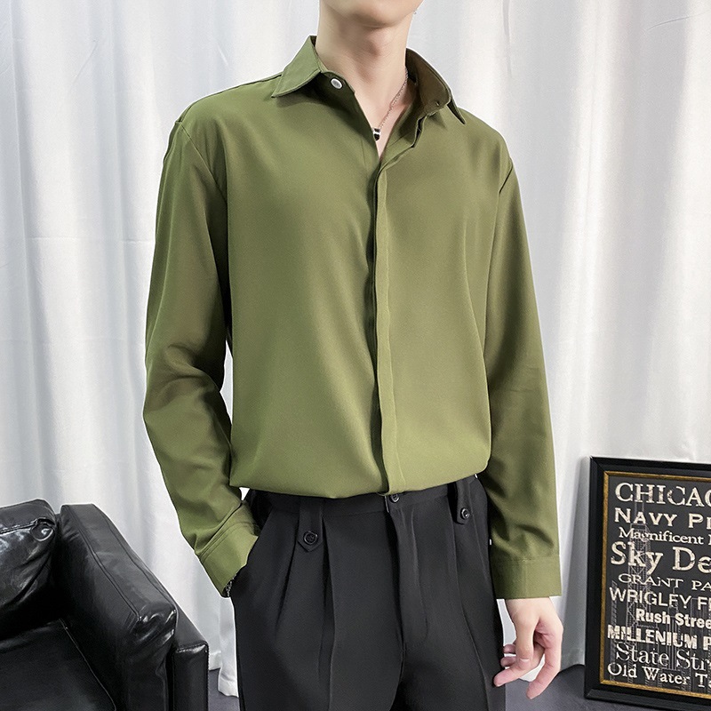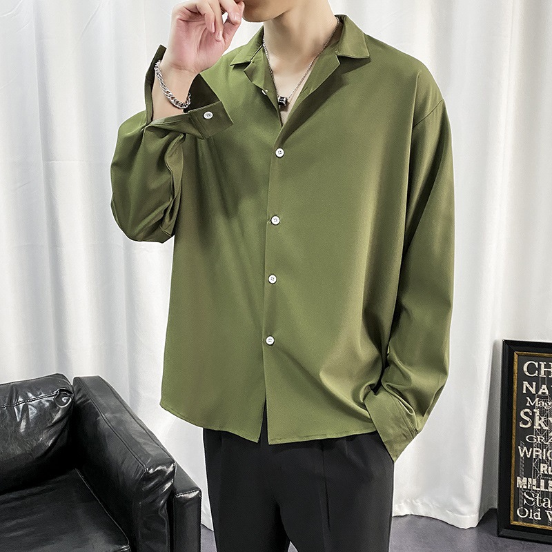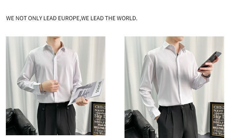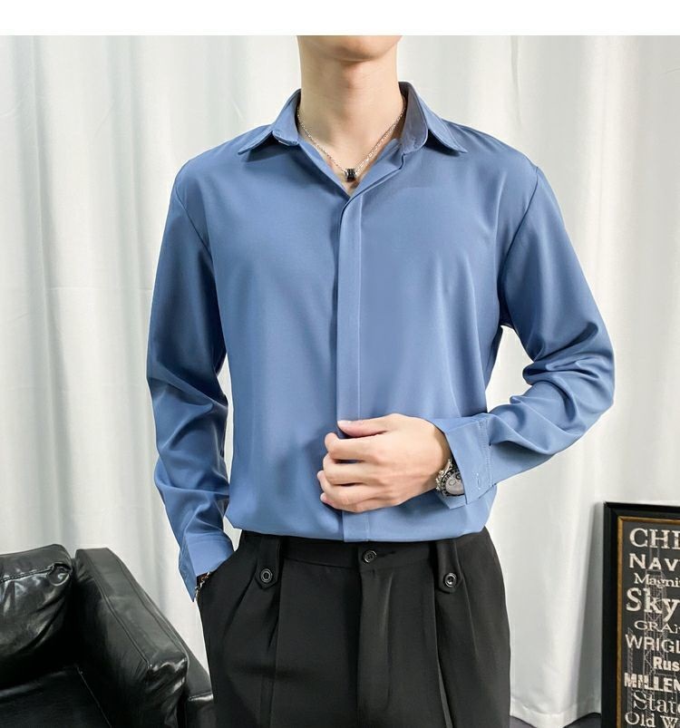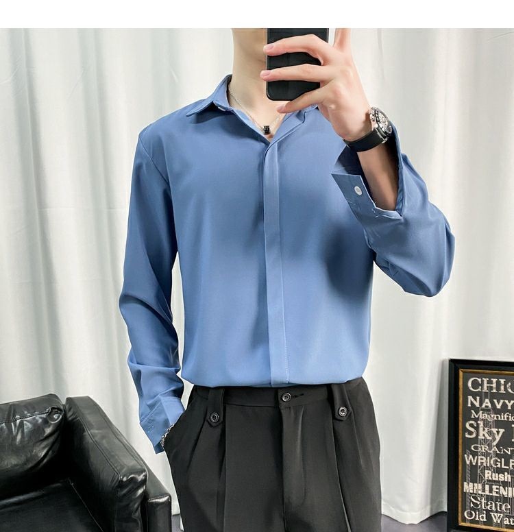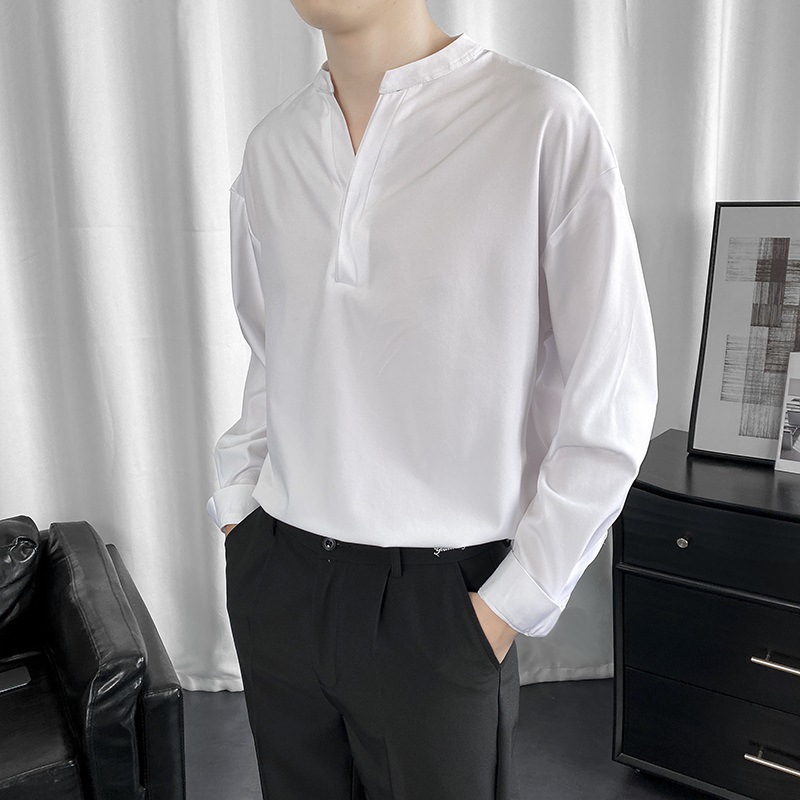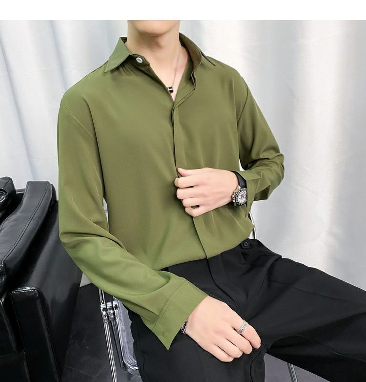 검은 셔츠 남자 긴팔 한국 스타일 유행 잘 생긴 Dk 남자 캐주얼 홍콩 스타일 일본식 게으른 스타일 비 다림질 화이트 셔츠스토어 가기
