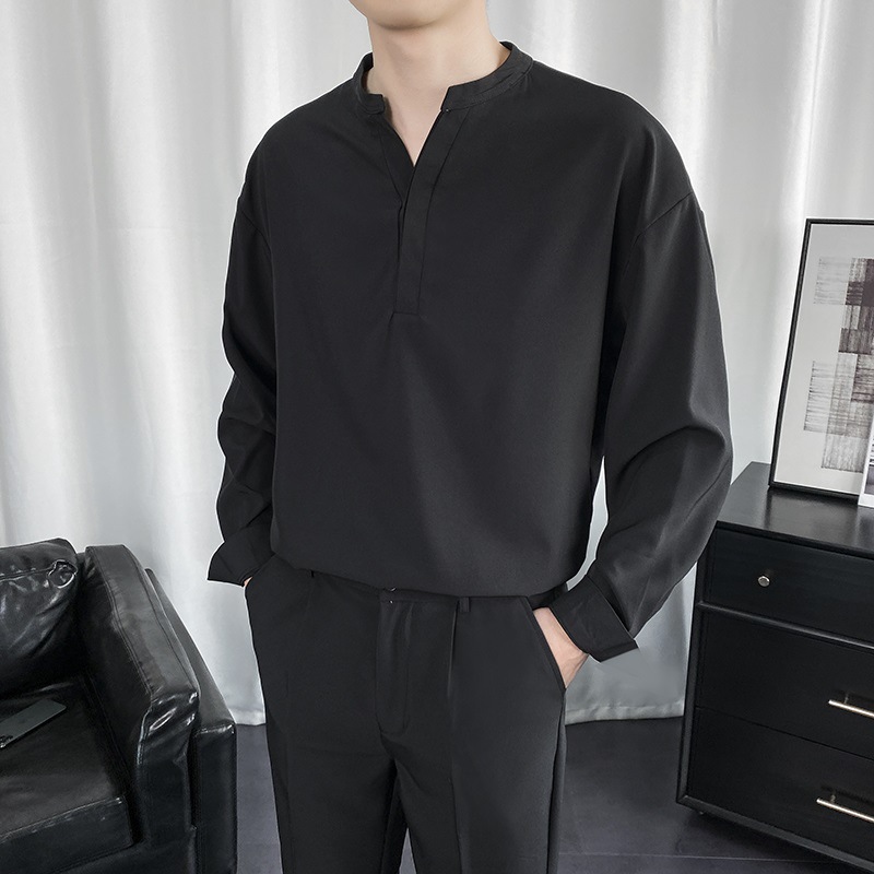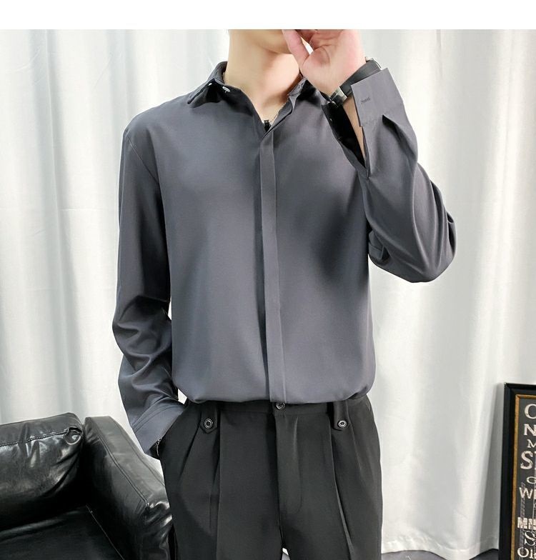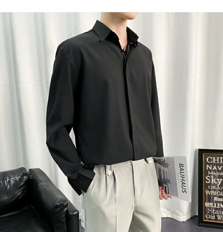 검은 셔츠 남자 긴팔 한국 스타일 유행 잘 생긴 Dk 남자 캐주얼 홍콩 스타일 일본식 게으른 스타일 비 다림질 화이트 셔츠