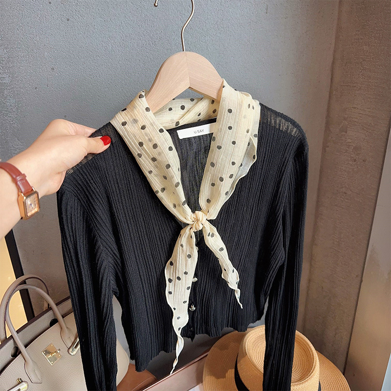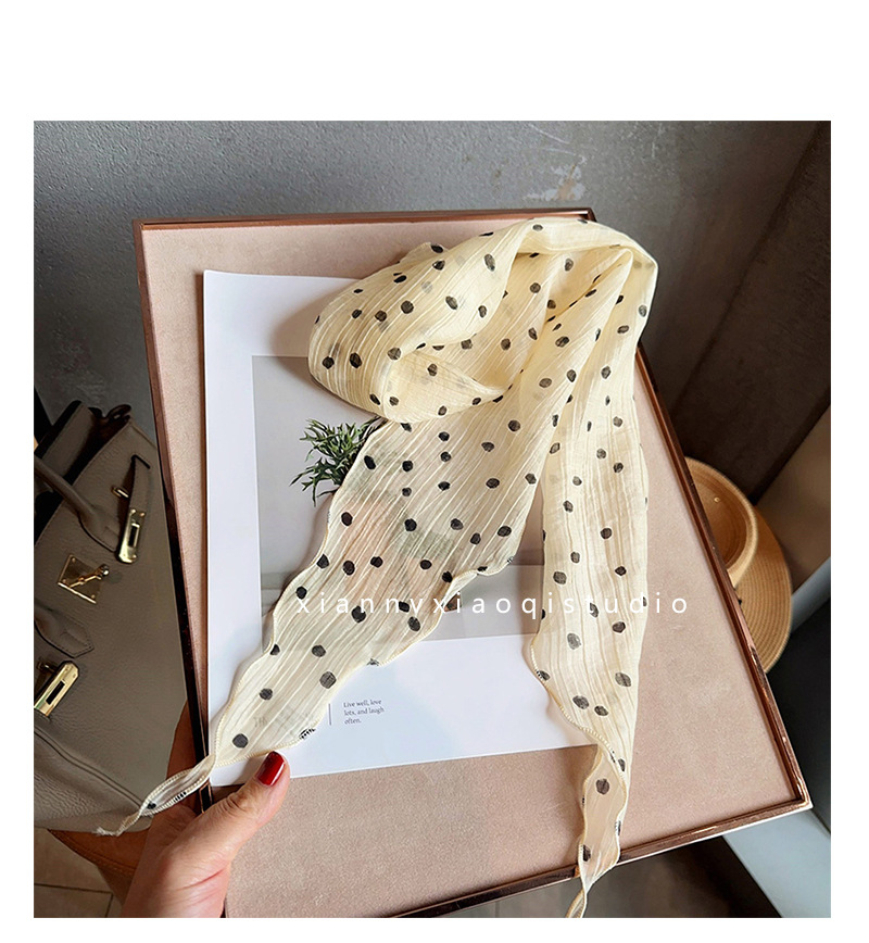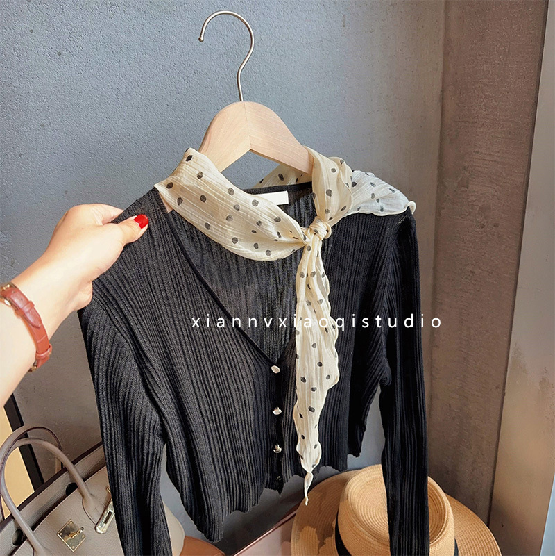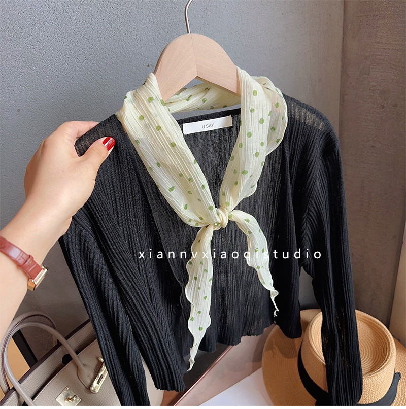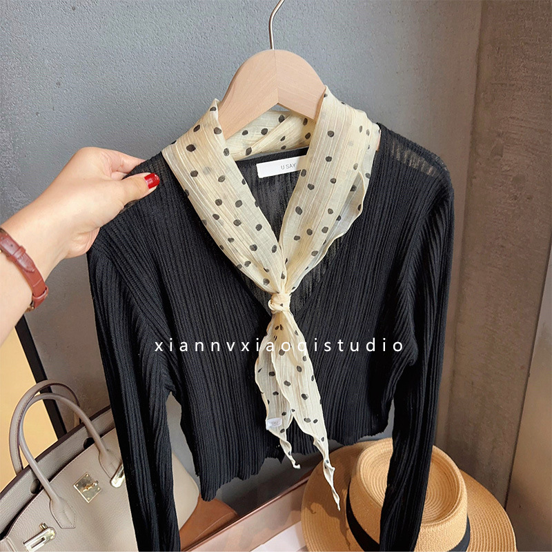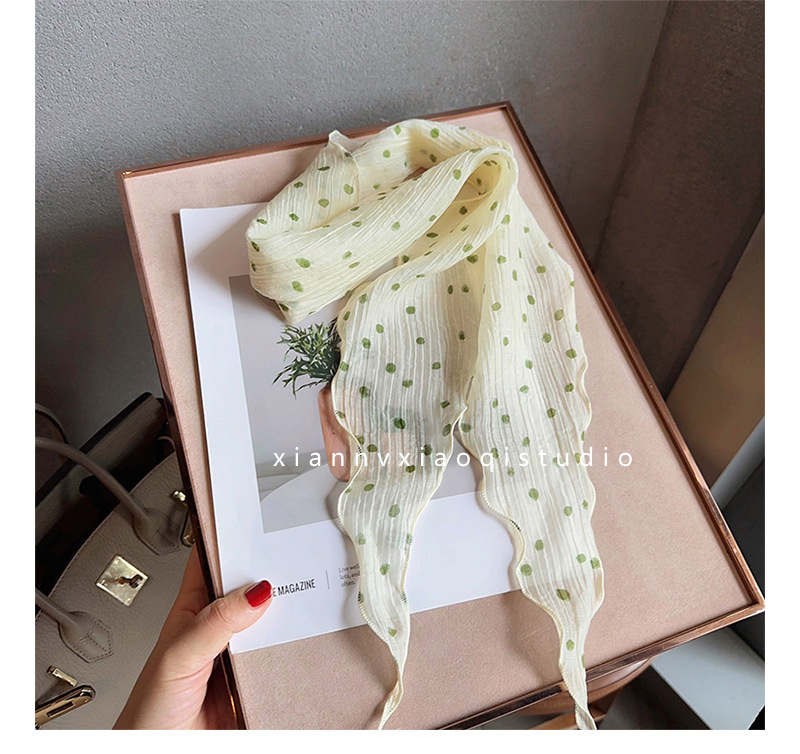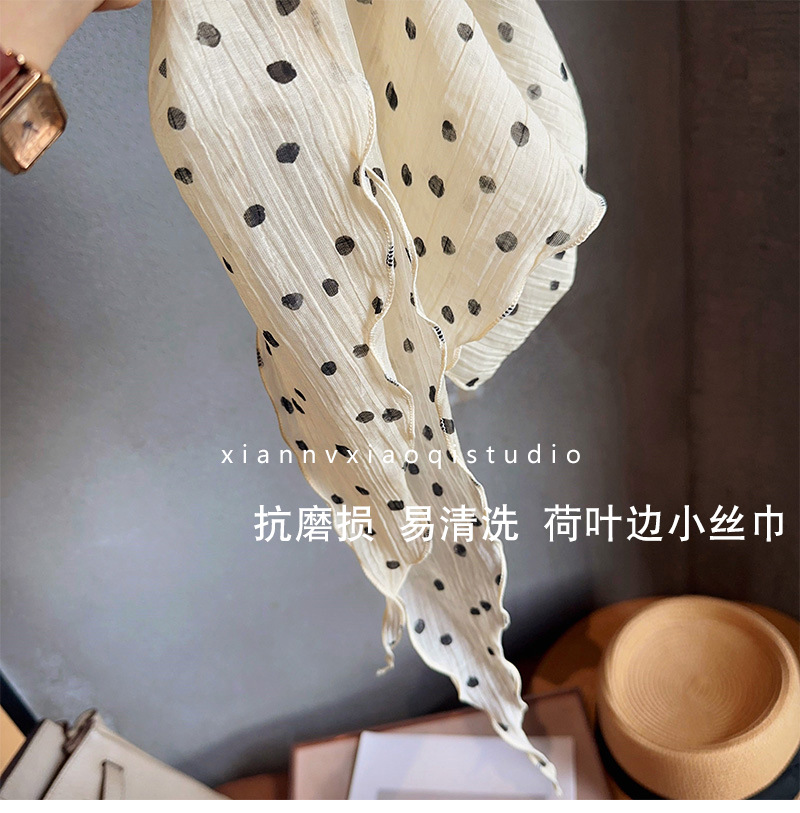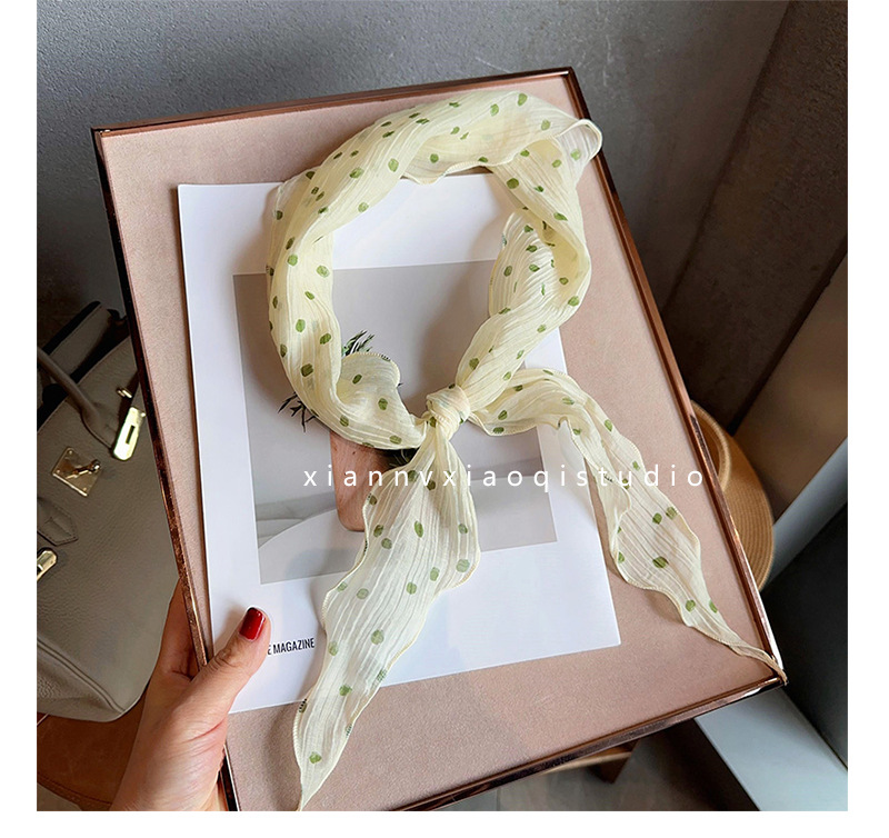 한국 스타일의 멋진 점 작은 실크 스카프 다이아몬드 주름 스카프 여성의 봄과 가을 새로운 장식 올 매치 넥 스카프 얇은