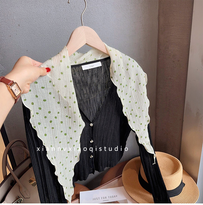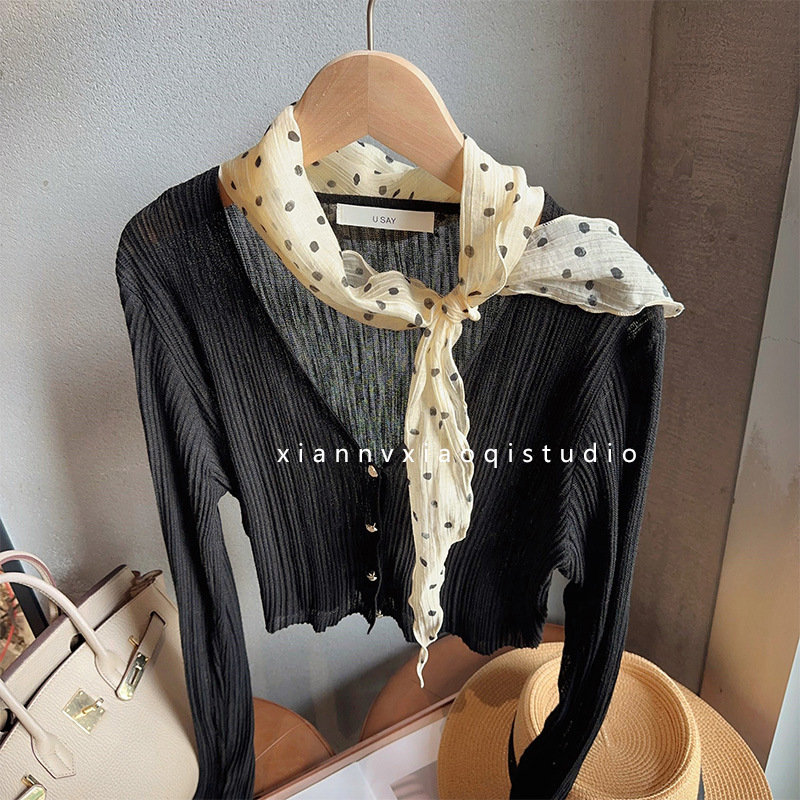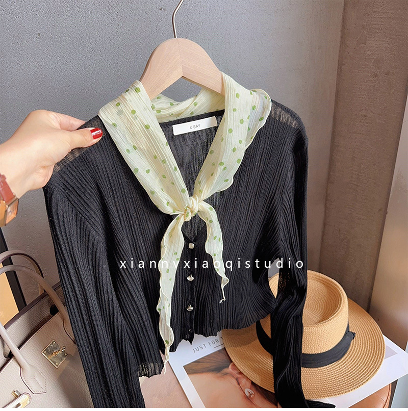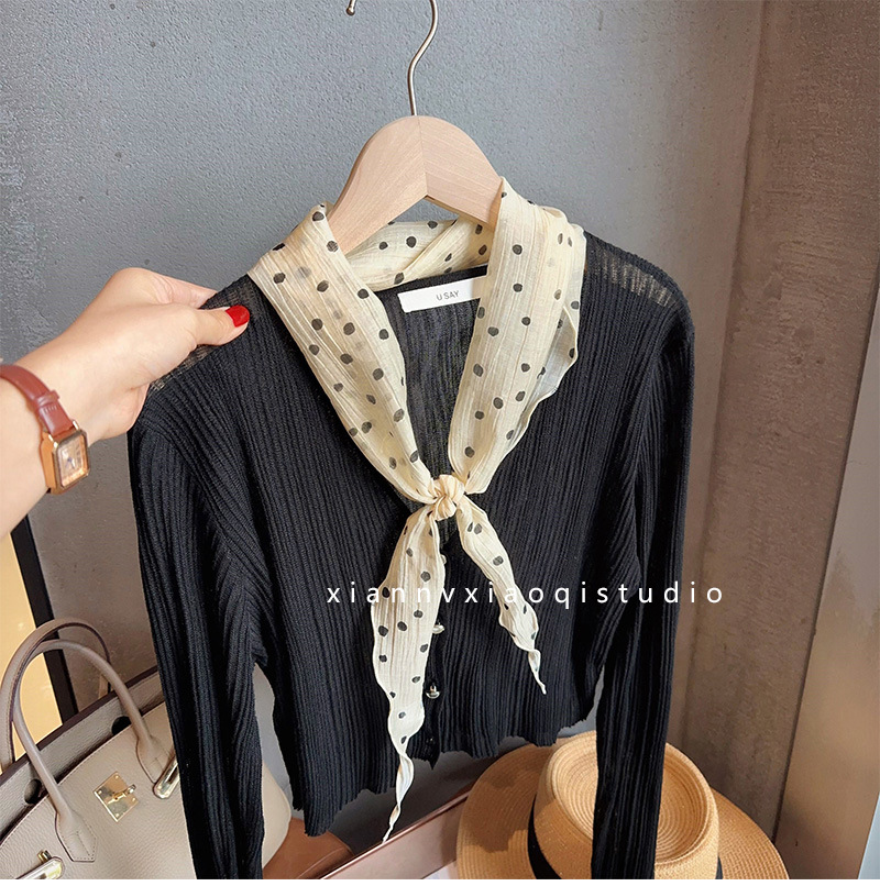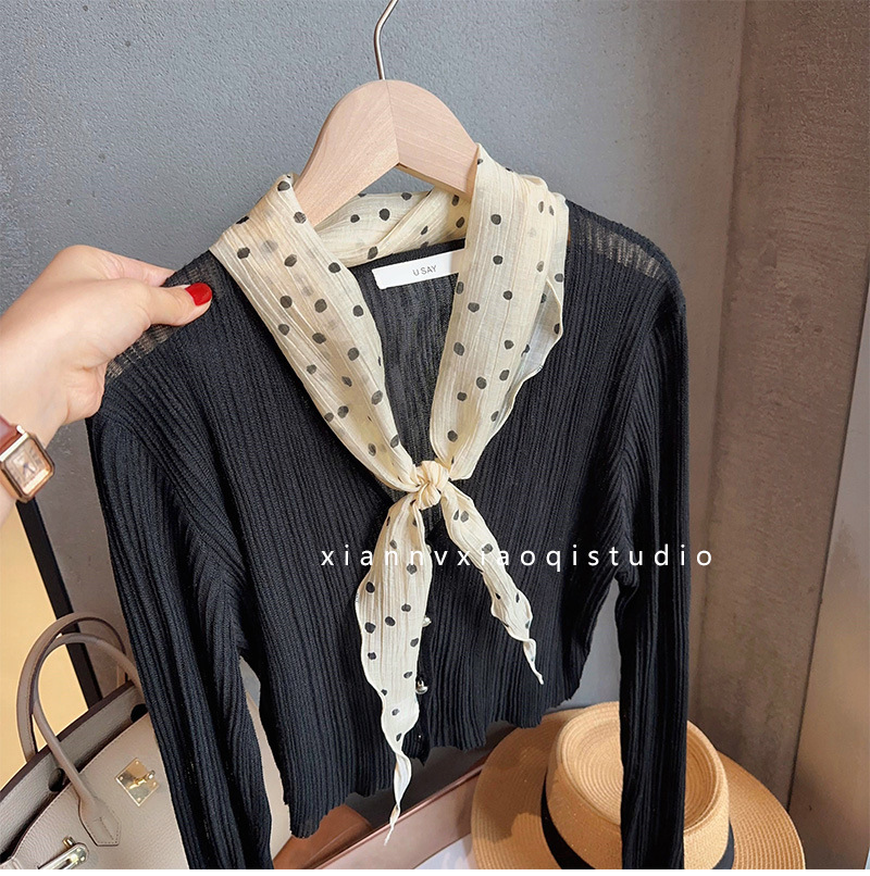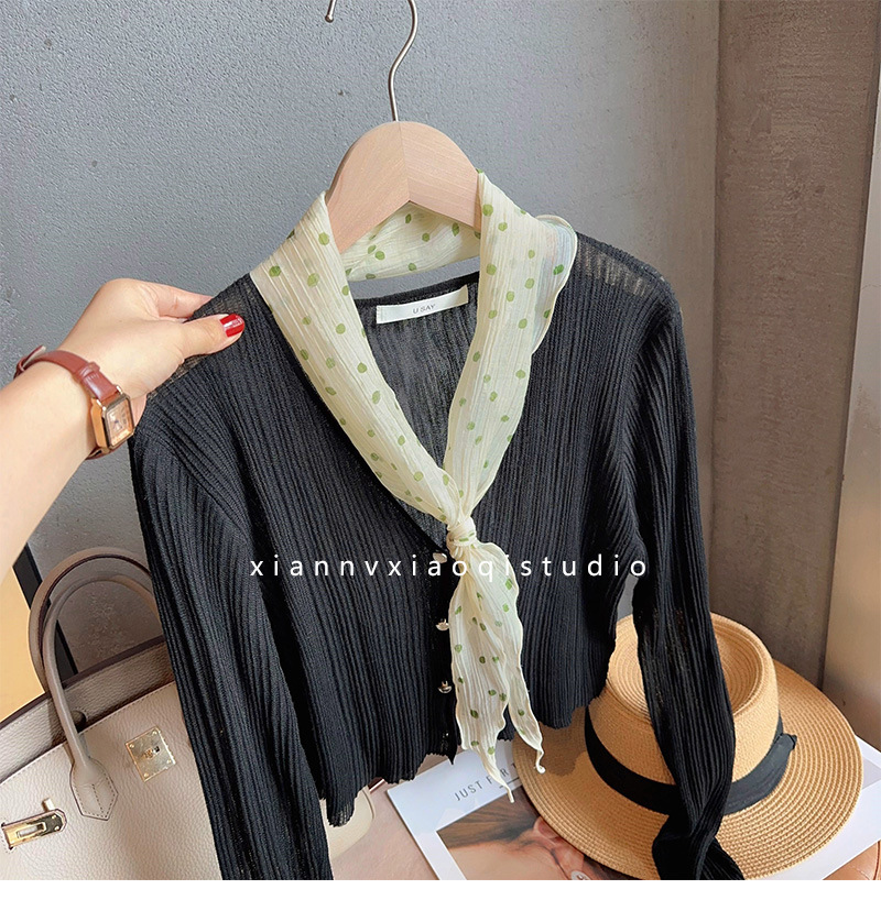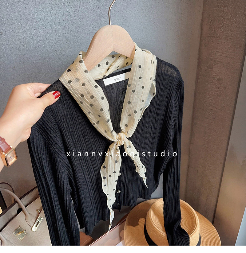 한국 스타일의 멋진 점 작은 실크 스카프 다이아몬드 주름 스카프 여성의 봄과 가을 새로운 장식 올 매치 넥 스카프 얇은
