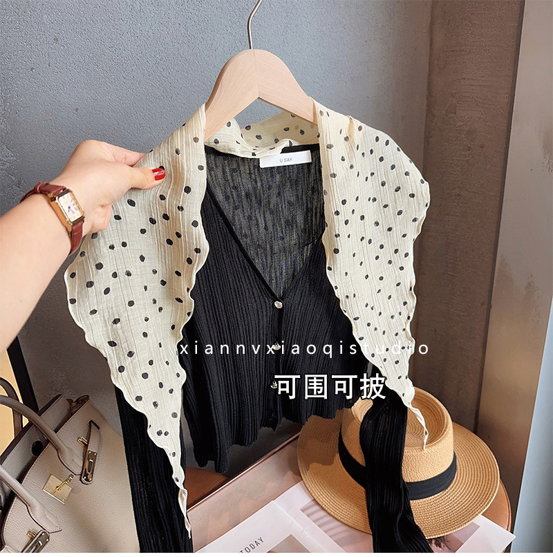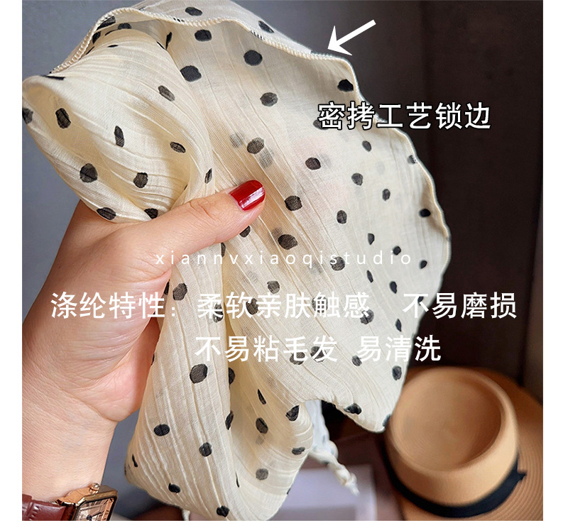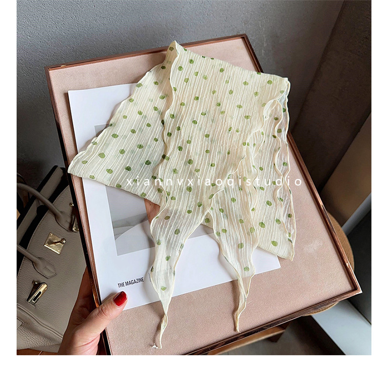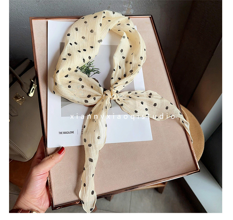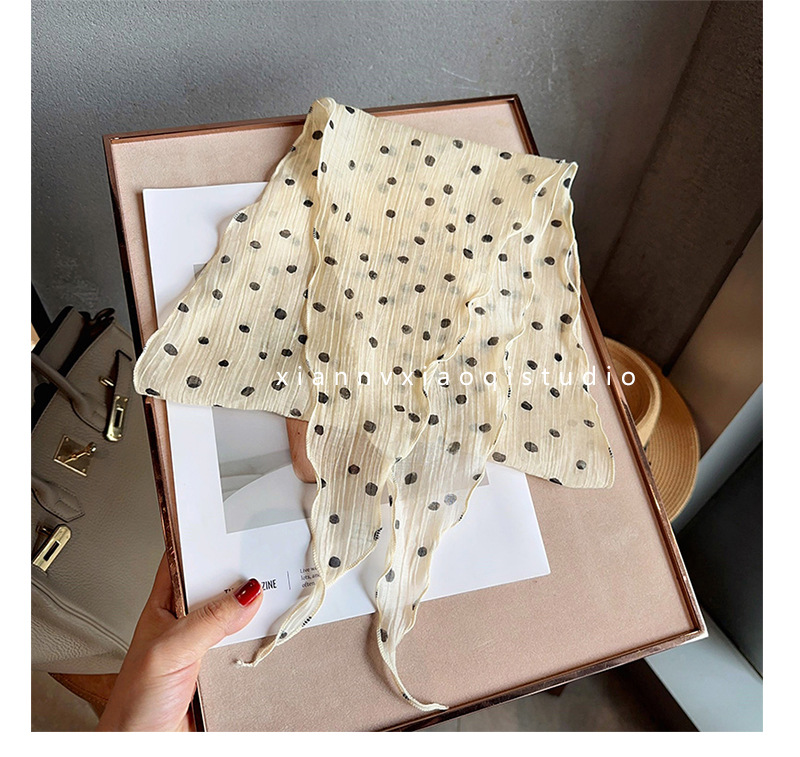 한국 스타일의 멋진 점 작은 실크 스카프 다이아몬드 주름 스카프 여성의 봄과 가을 새로운 장식 올 매치 넥 스카프 얇은스토어 가기