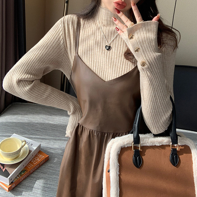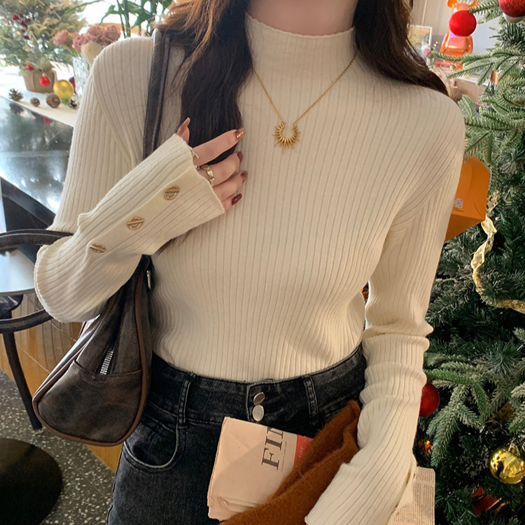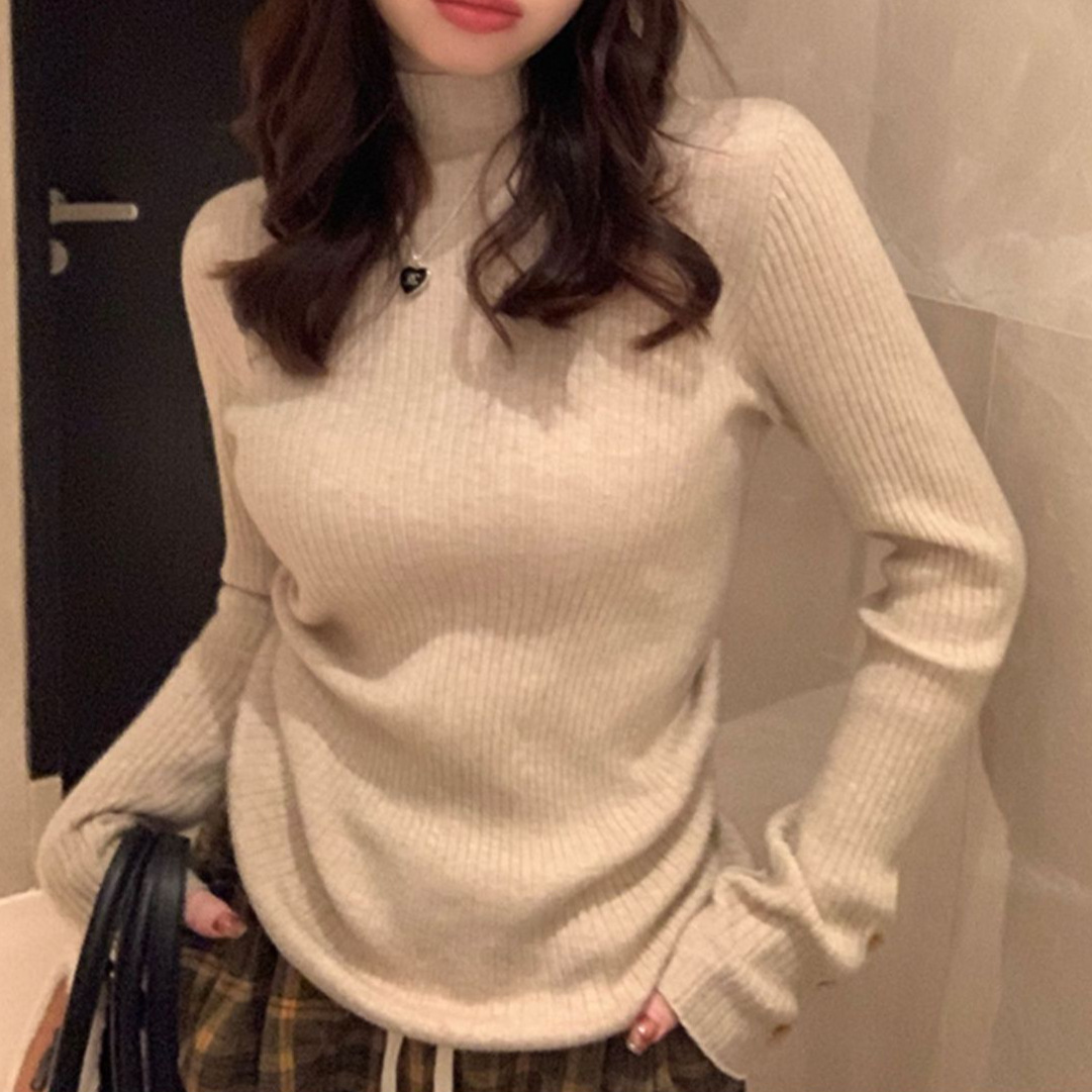 하프 터틀넥베이스 셔츠 여성의 봄과 가을 새로운 도착 웨스턴 스타일 화이트 내부 이른 가을 스웨터 디자인 센스 니치 니트 탑스토어 가기