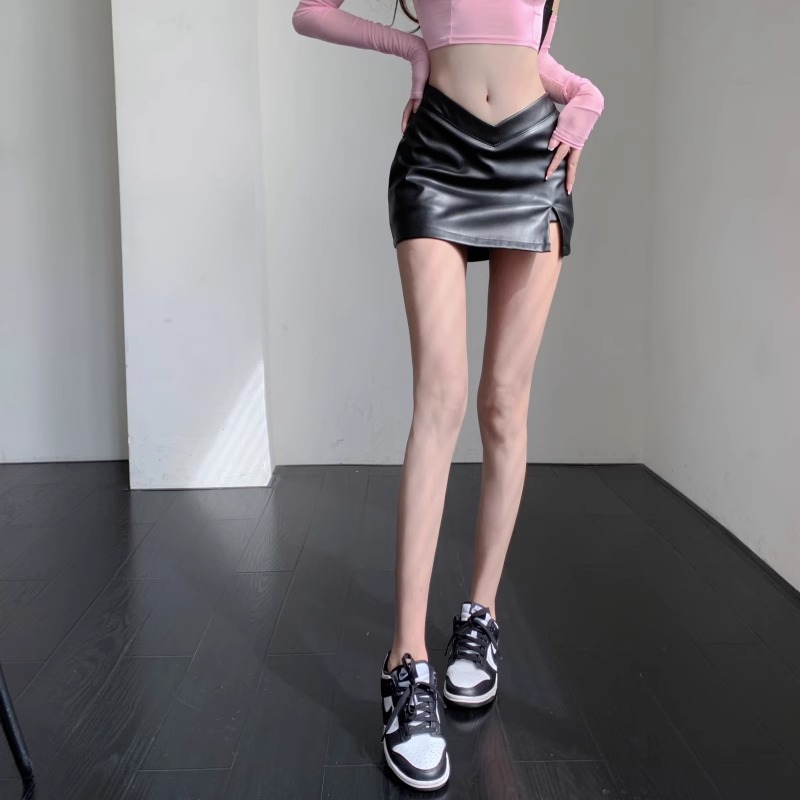 미니 스커트 불규칙한 슬릿 실버 스커트 여성 가을 높은 허리 슬리밍 핫 소녀 엉덩이 가죽 스커트 A 라인 스커트