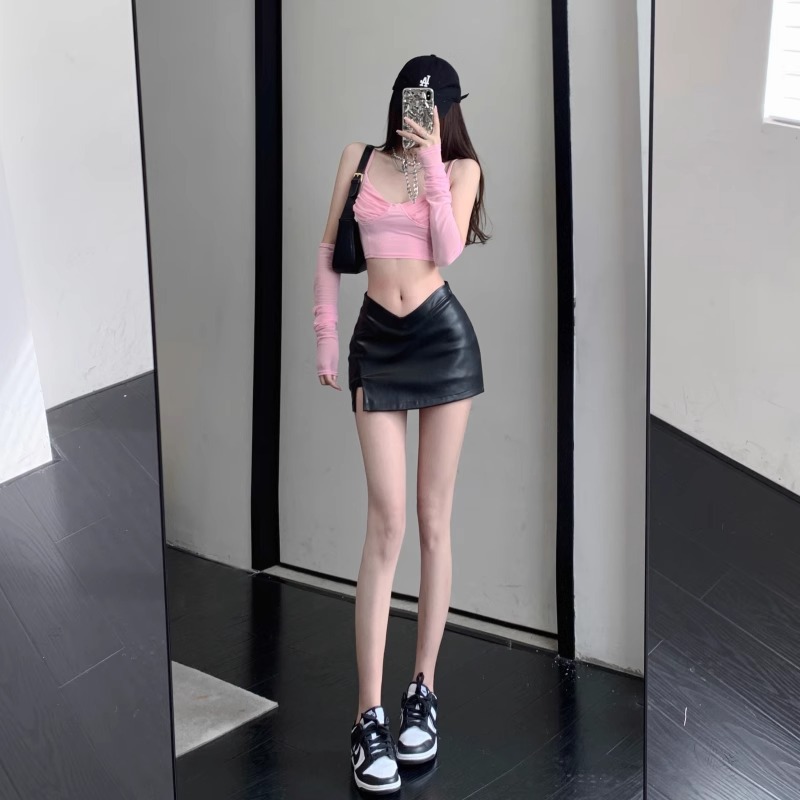 미니 스커트 불규칙한 슬릿 실버 스커트 여성 가을 높은 허리 슬리밍 핫 소녀 엉덩이 가죽 스커트 A 라인 스커트스토어 가기