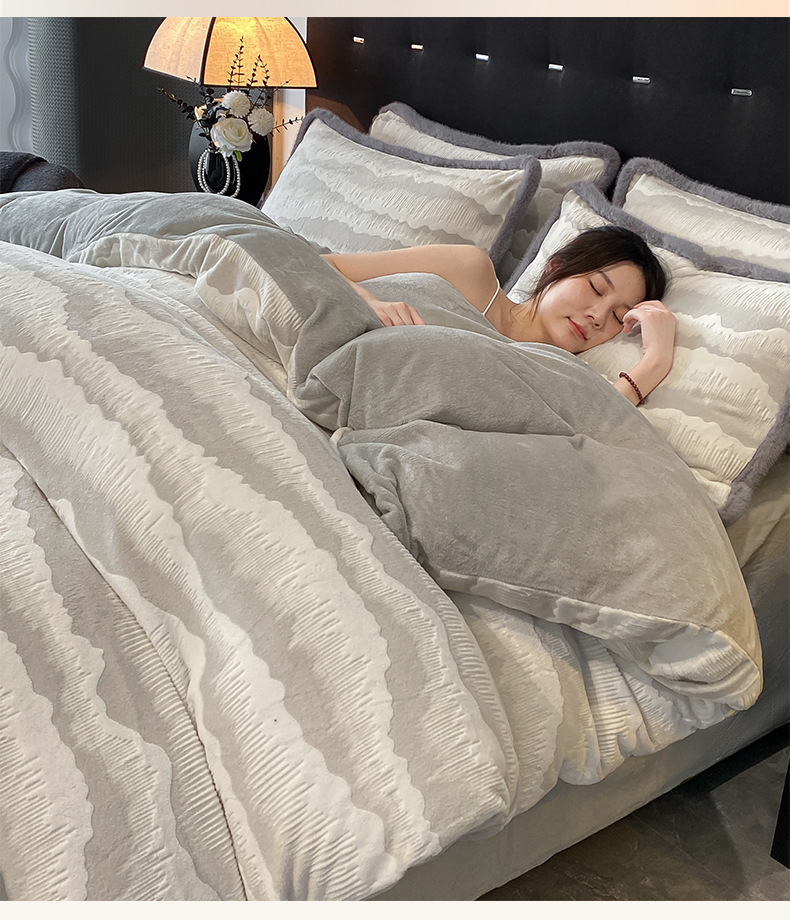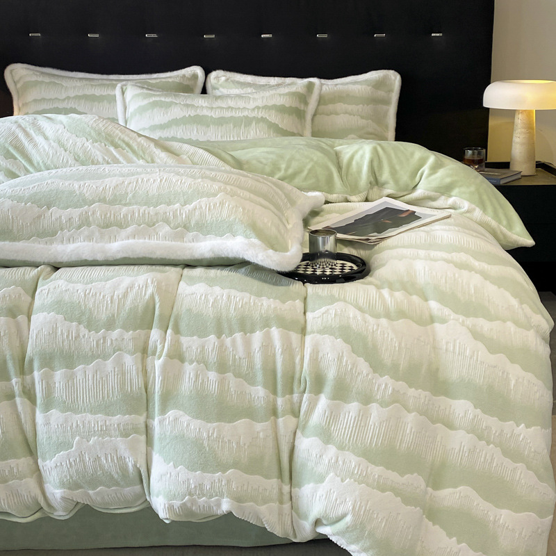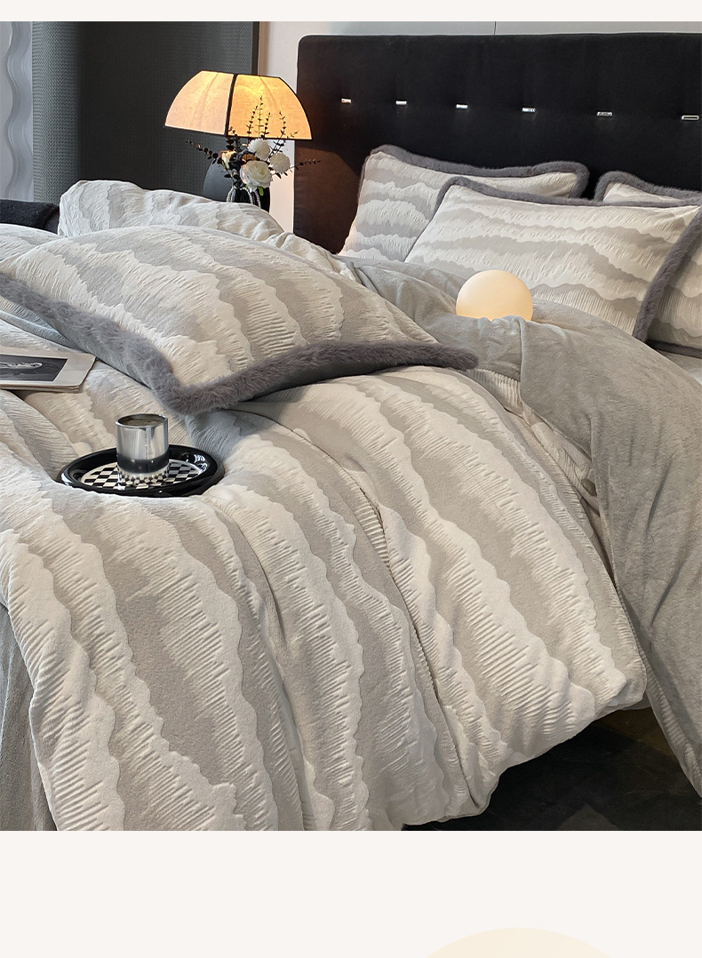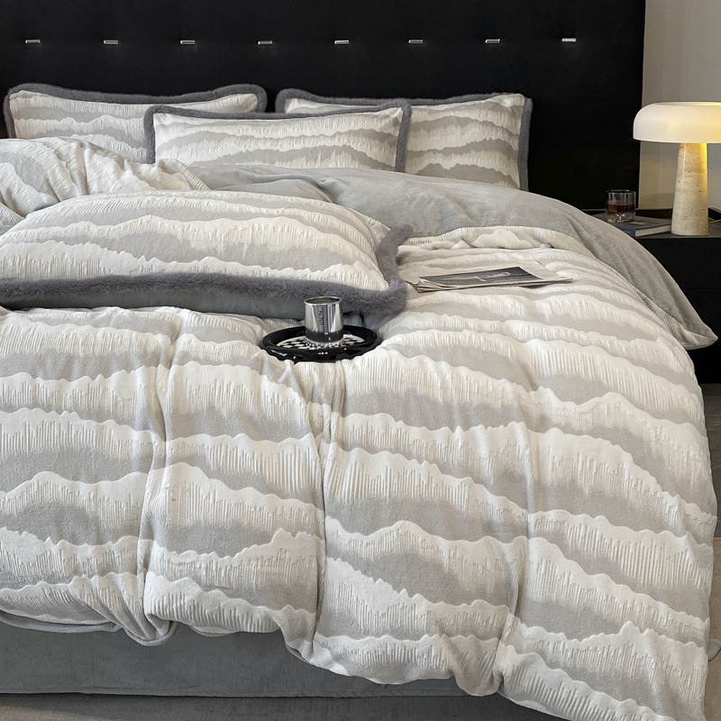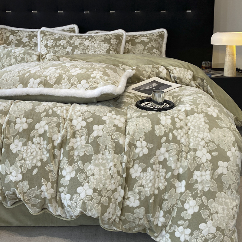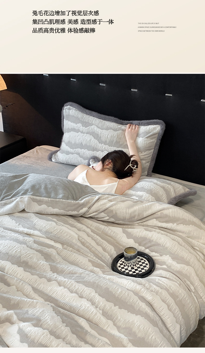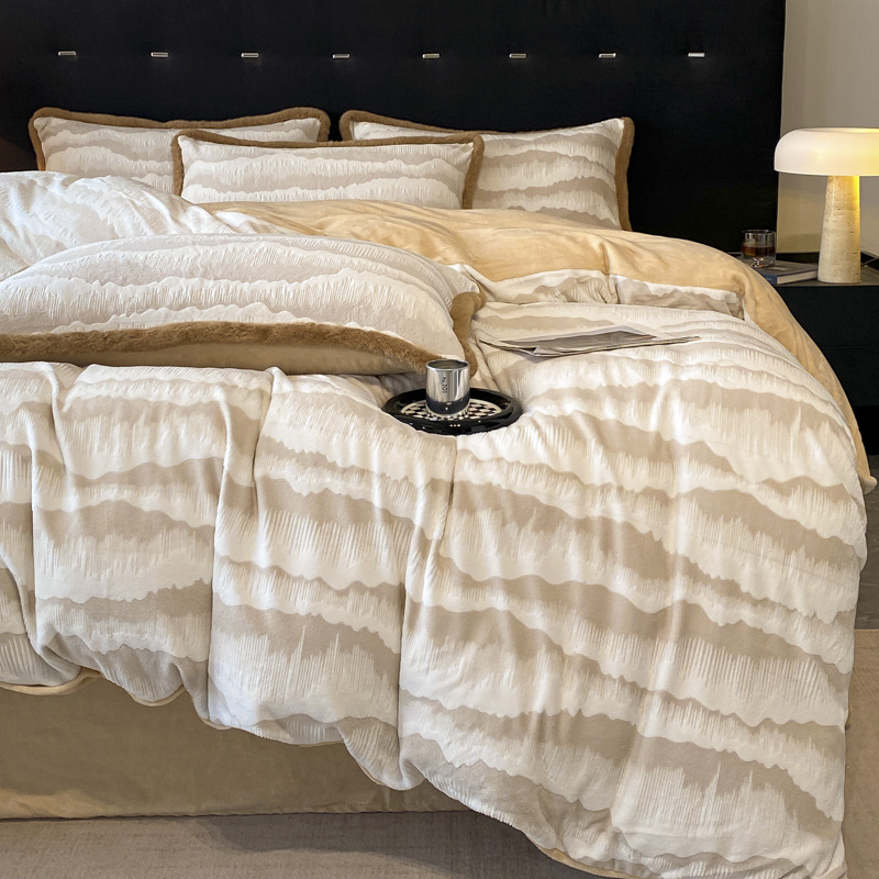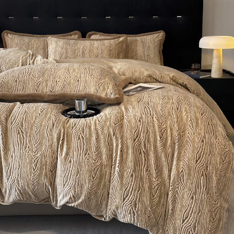 밀크 벨벳 4종 세트, A급, 가벼운 럭셔리, 벨벳, 두껍고 따뜻한 토끼털, 레이스 조각 벨벳, 공장 직판, 두꺼운 버전