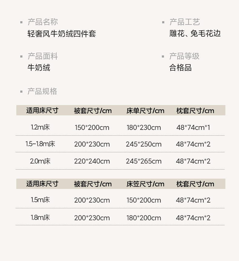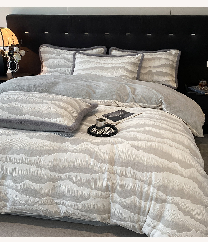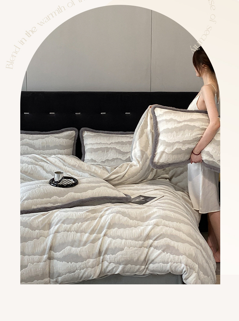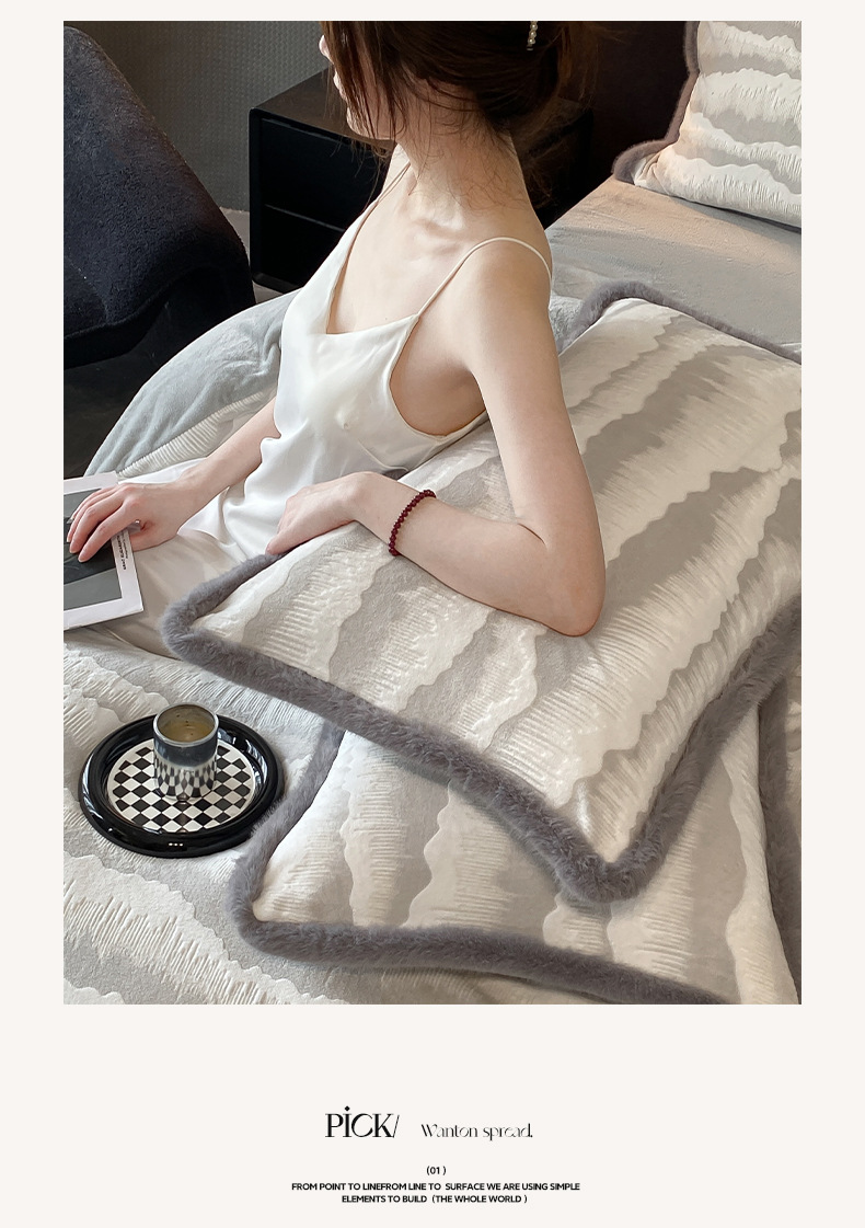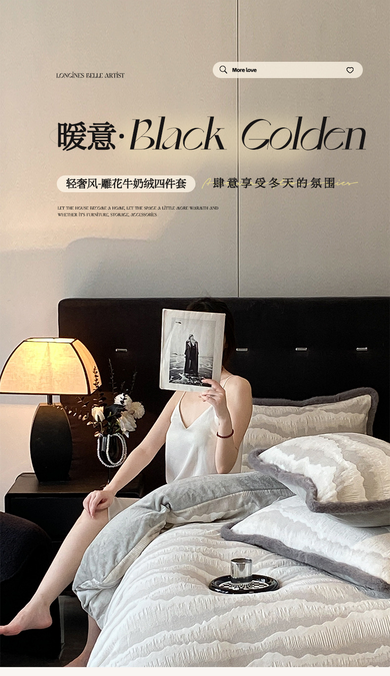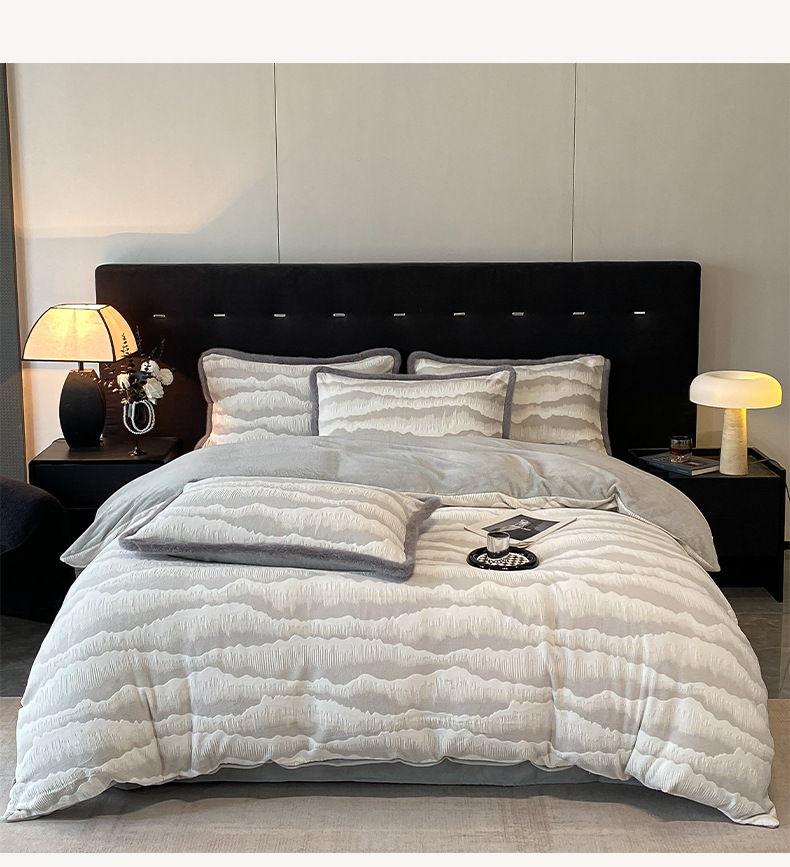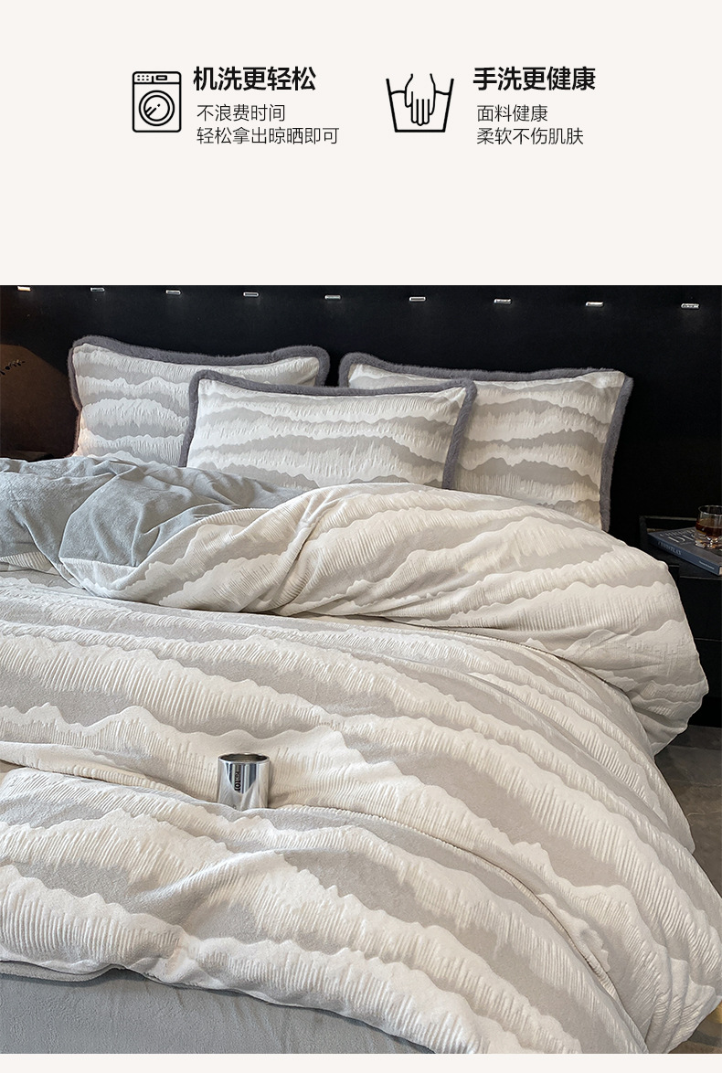 밀크 벨벳 4종 세트, A급, 가벼운 럭셔리, 벨벳, 두껍고 따뜻한 토끼털, 레이스 조각 벨벳, 공장 직판, 두꺼운 버전