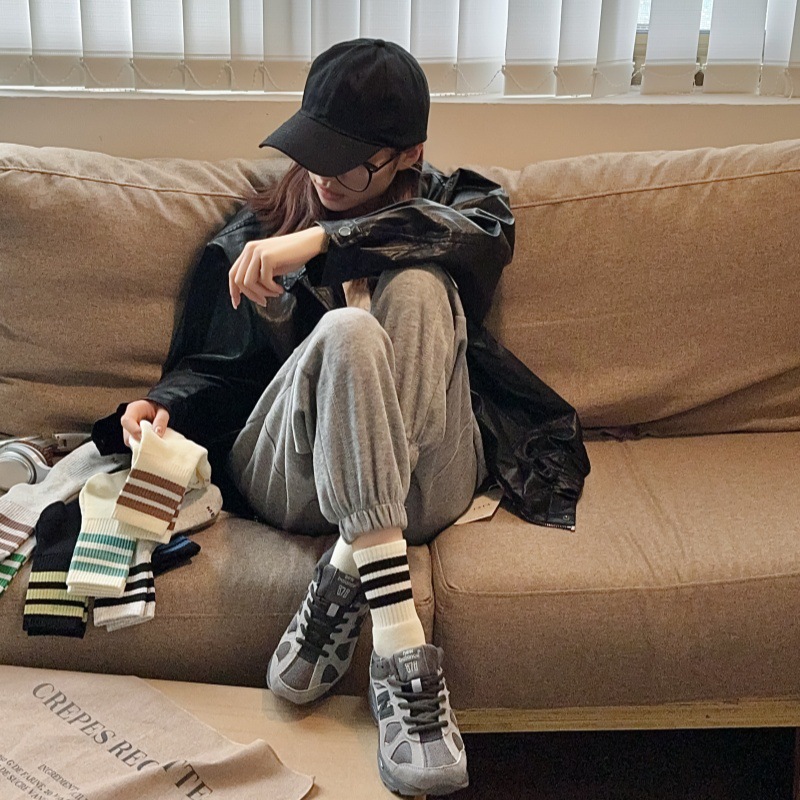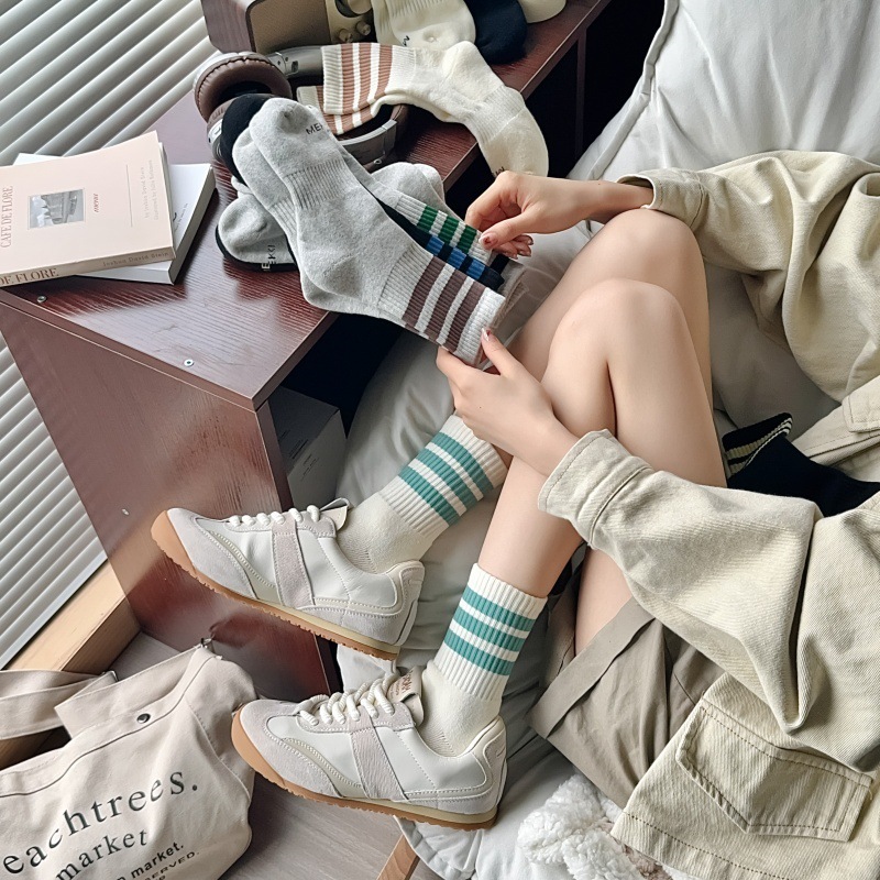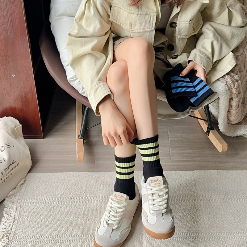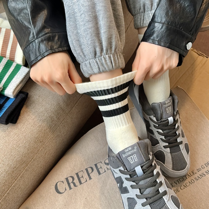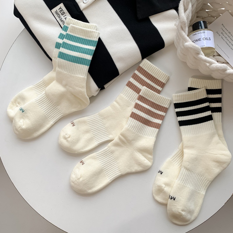 커플 양말 여성 양말 인즈 타이드-일본 남녀 스포츠 3 바 테리 통기성 땀 흡수 코튼 양말