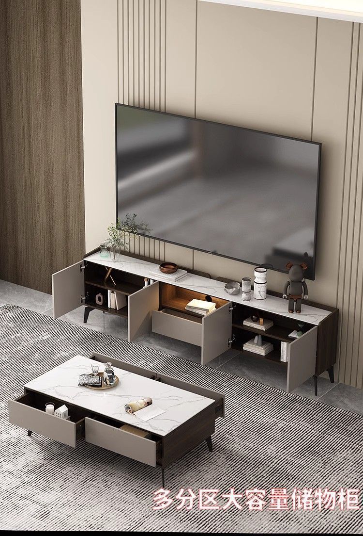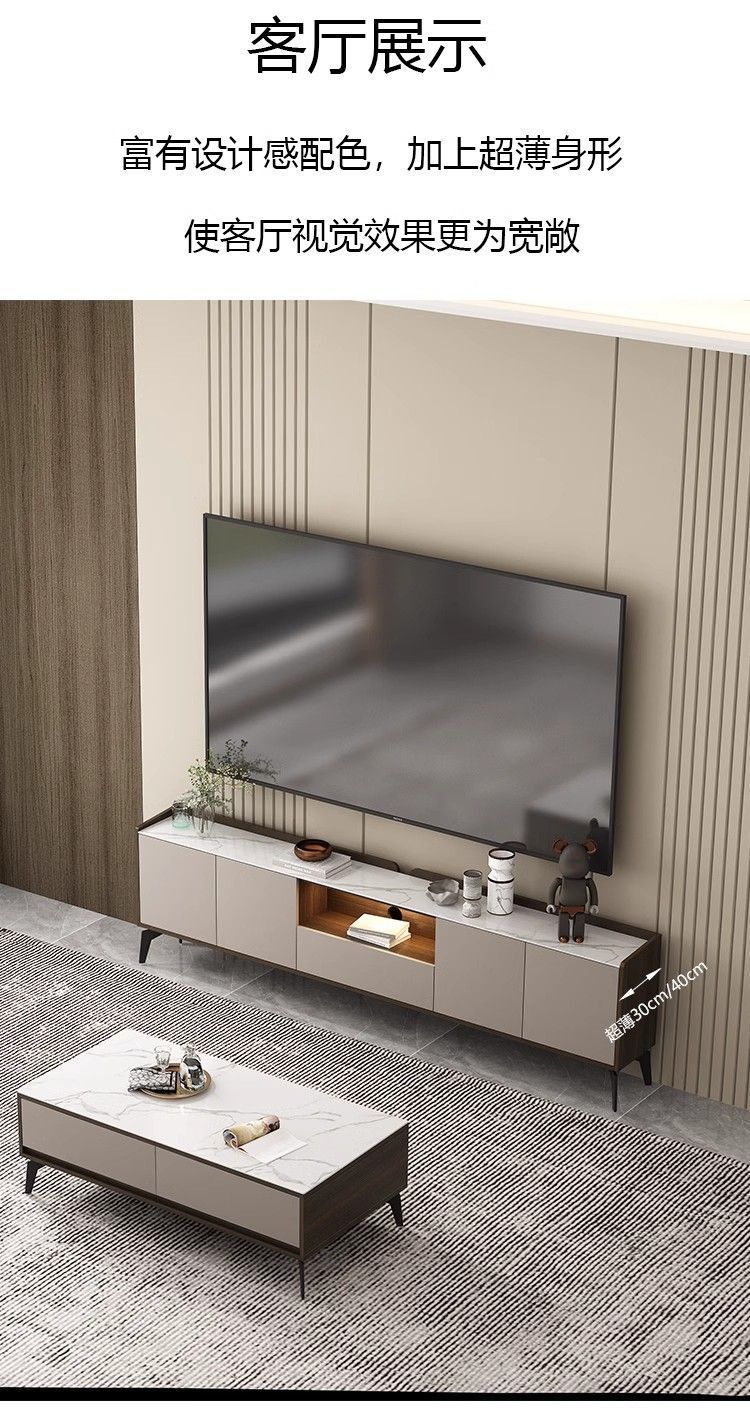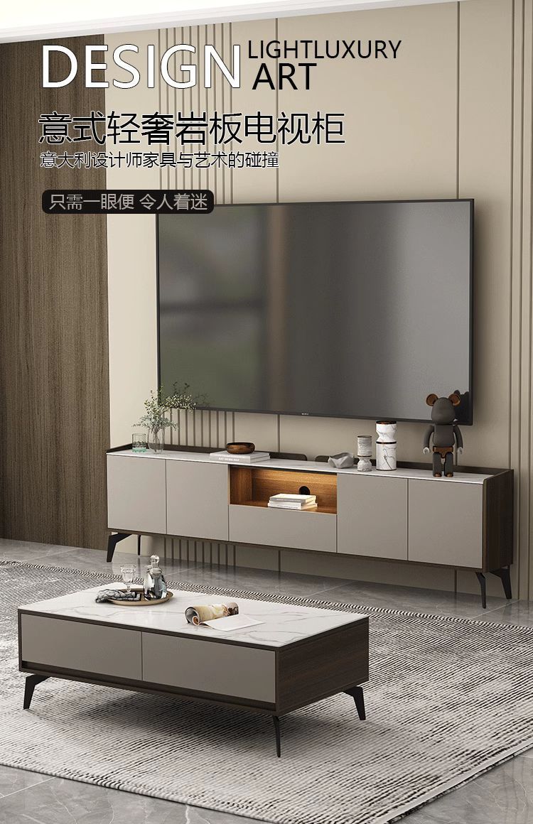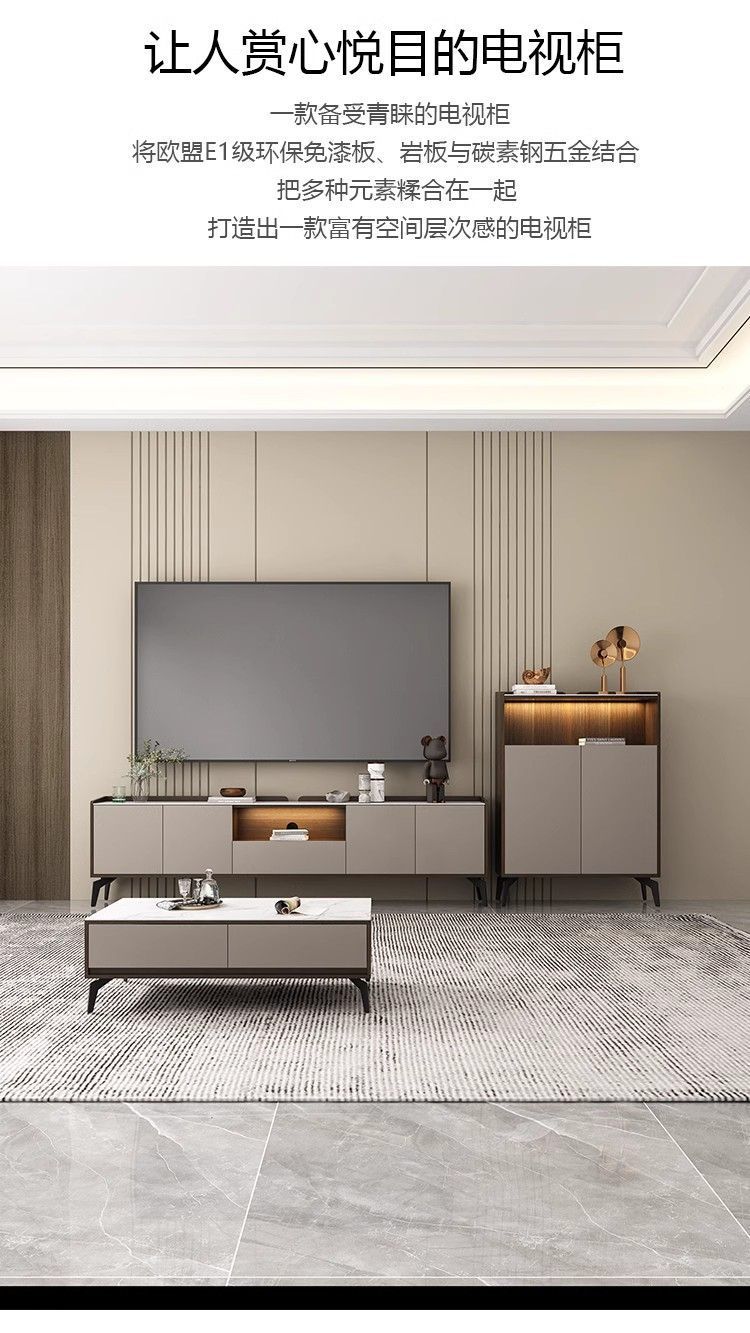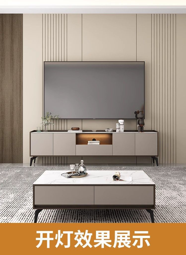 가벼운 럭셔리 스타일 록 보드 TV 캐비닛 커피 테이블 조합 현대 간단한 작은 아파트 하이 엔드 거실 보관 캐비닛 바닥스토어 가기