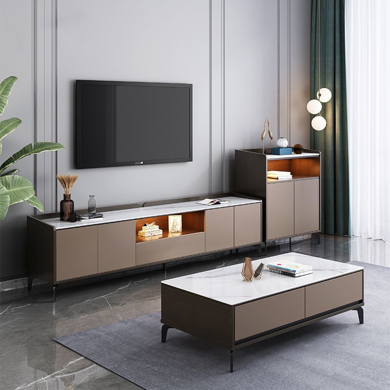 가벼운 럭셔리 스타일 록 보드 TV 캐비닛 커피 테이블 조합 현대 간단한 작은 아파트 하이 엔드 거실 보관 캐비닛 바닥