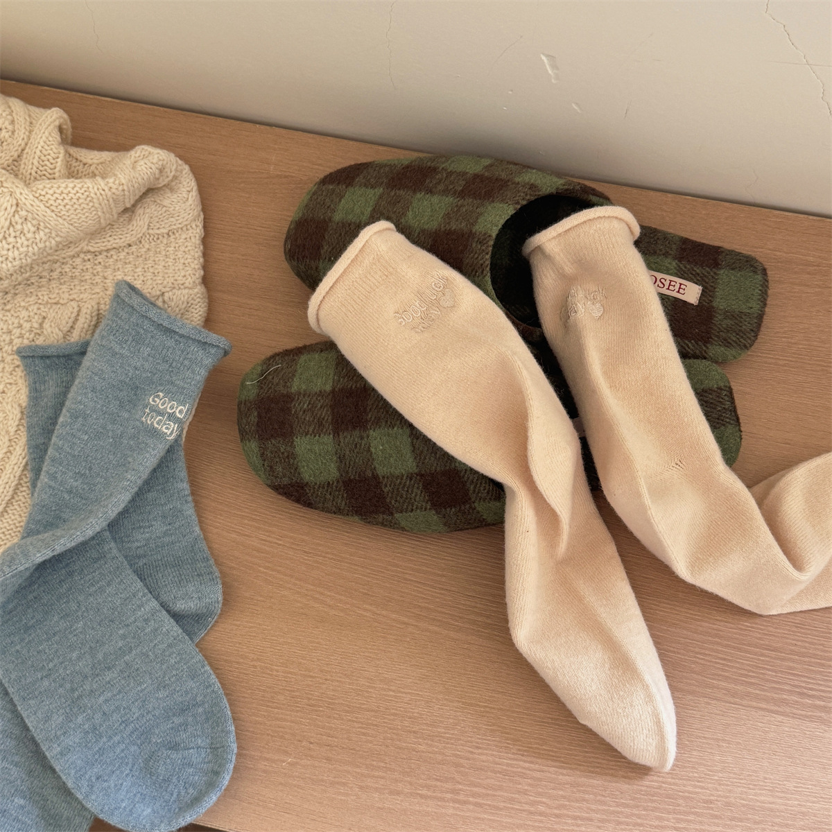 "게으른 캐주얼하고 순수한 욕망" 가을과 겨울 스태킹 양말 어린이 일본식 따뜻한 부드러운 왁스 컬링 양모 미드 튜브 양말스토어 가기