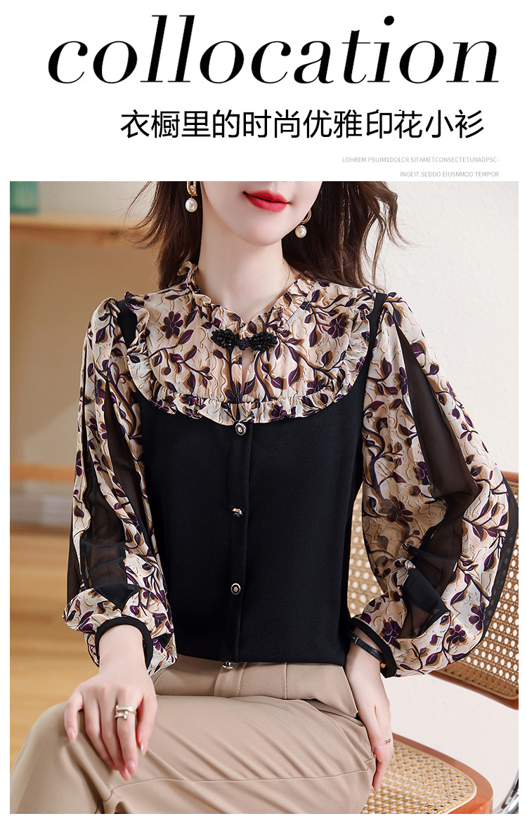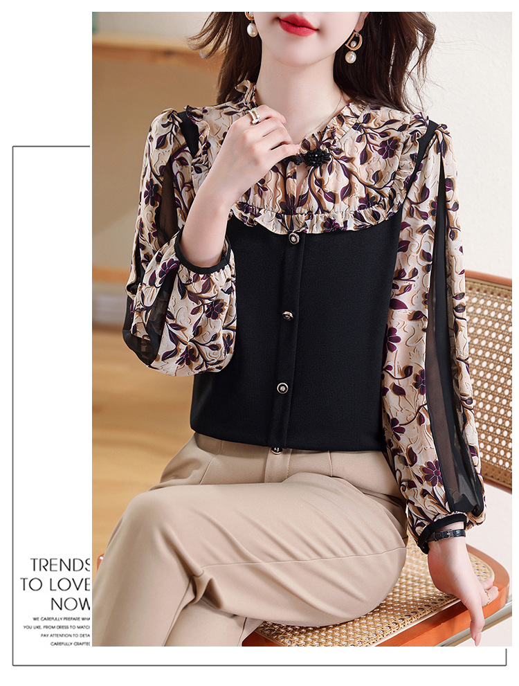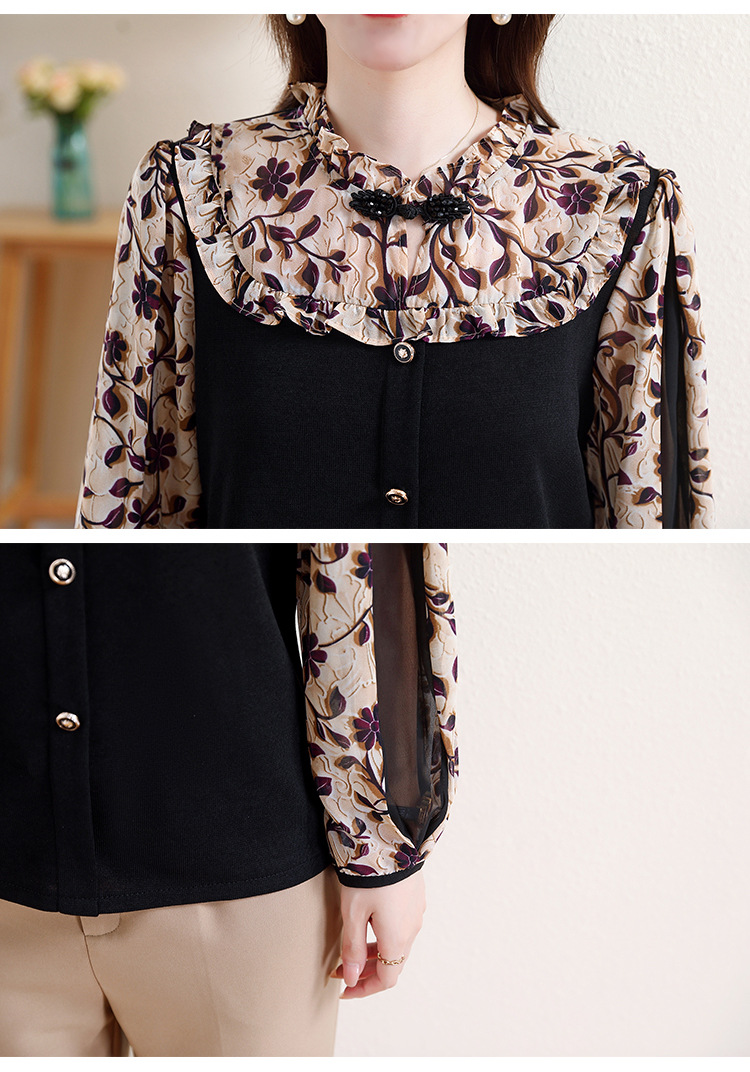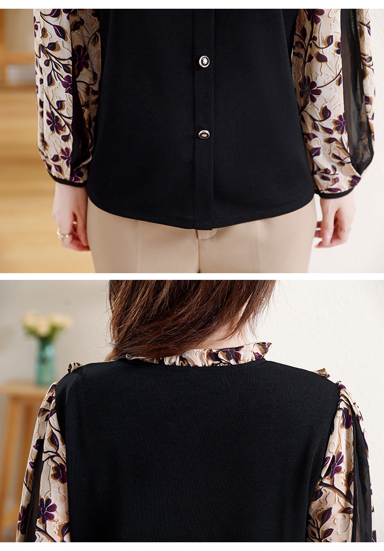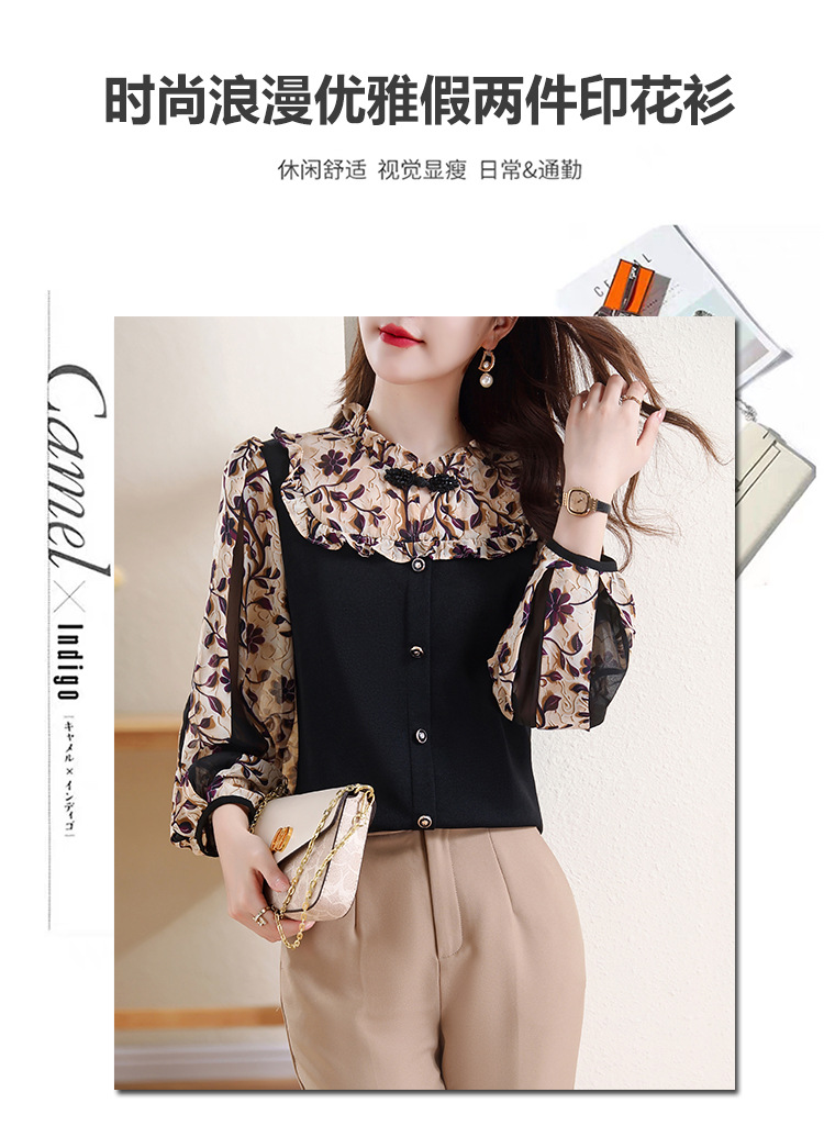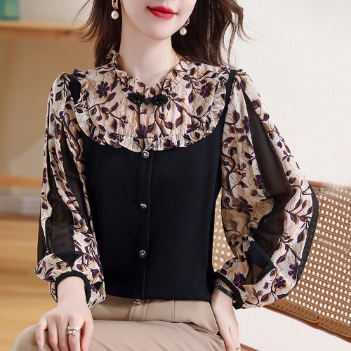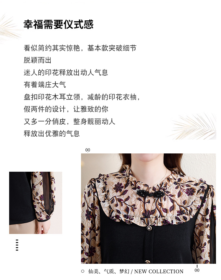 바느질 가짜 투피스 긴팔 쉬폰 셔츠 여성의 2024 가을 새로운 패션 슬리밍 연령 감소 셔츠 어머니의 탑