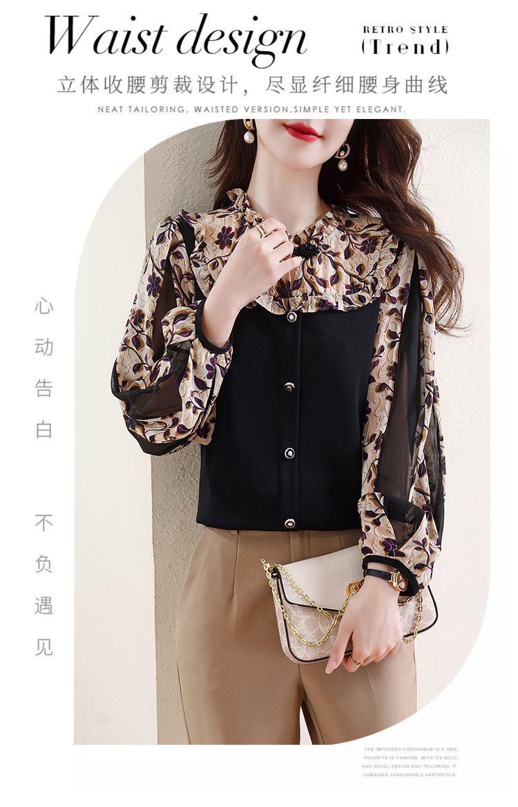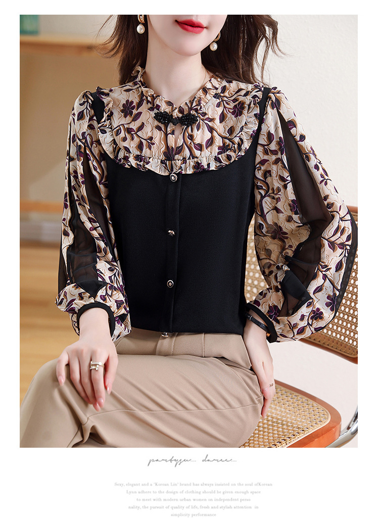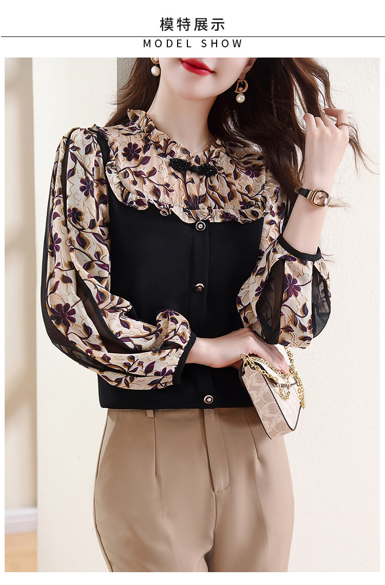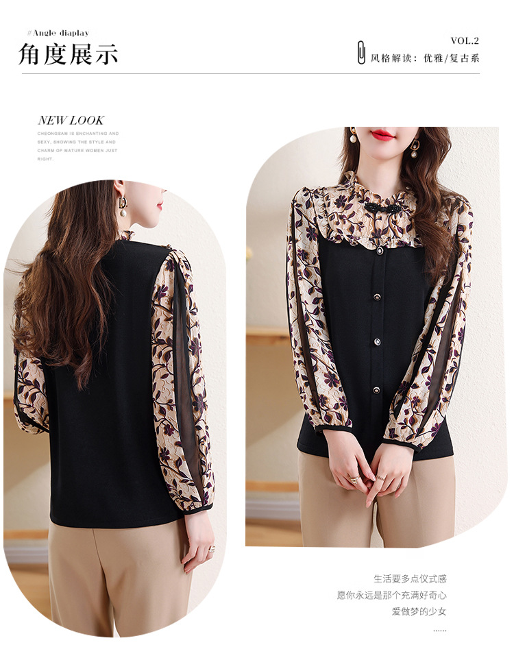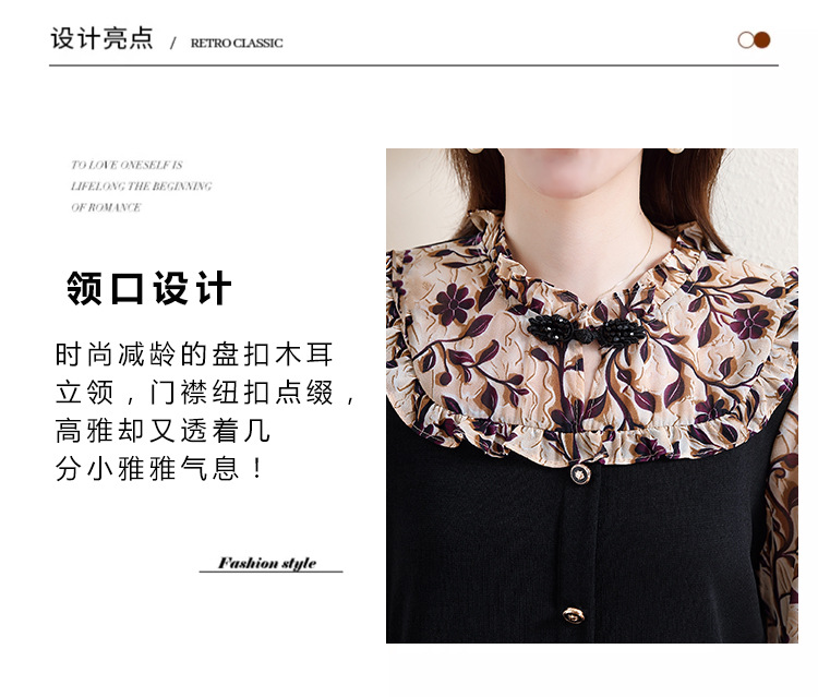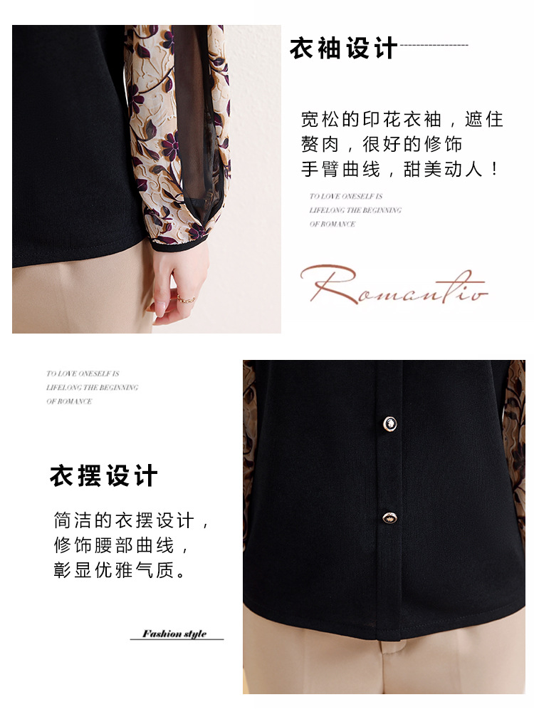바느질 가짜 투피스 긴팔 쉬폰 셔츠 여성의 2024 가을 새로운 패션 슬리밍 연령 감소 셔츠 어머니의 탑