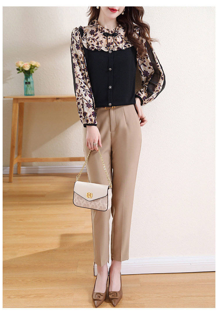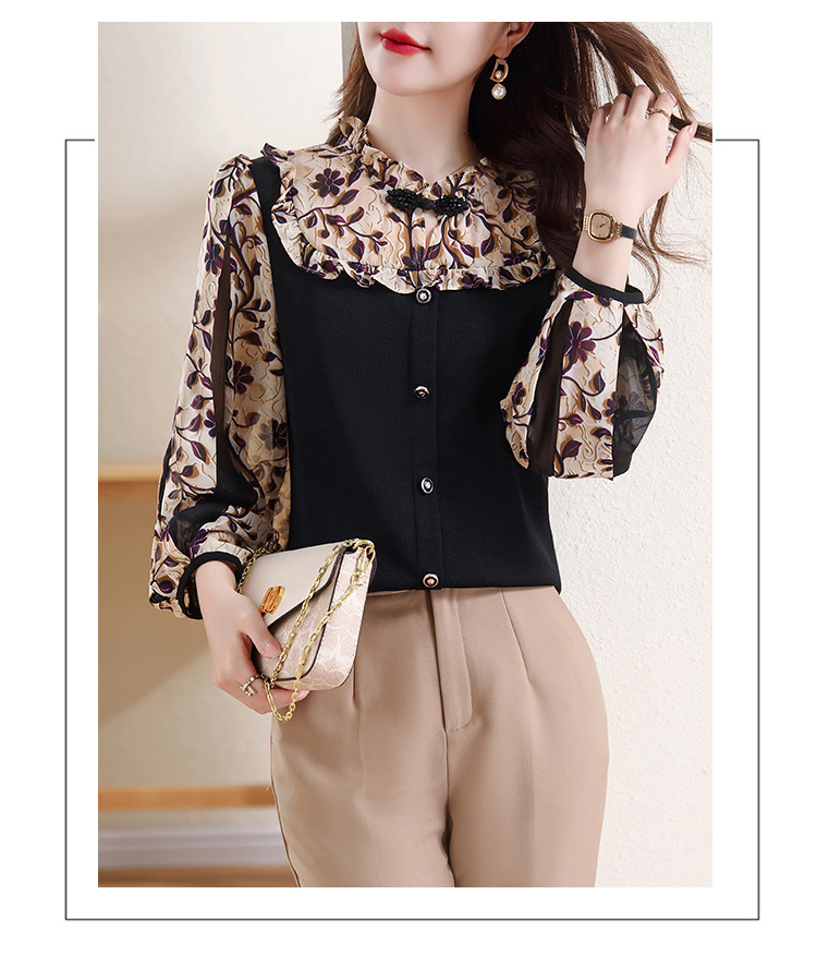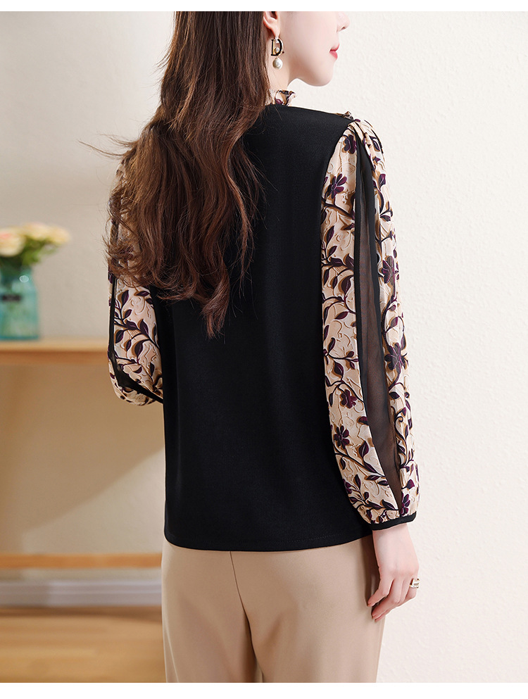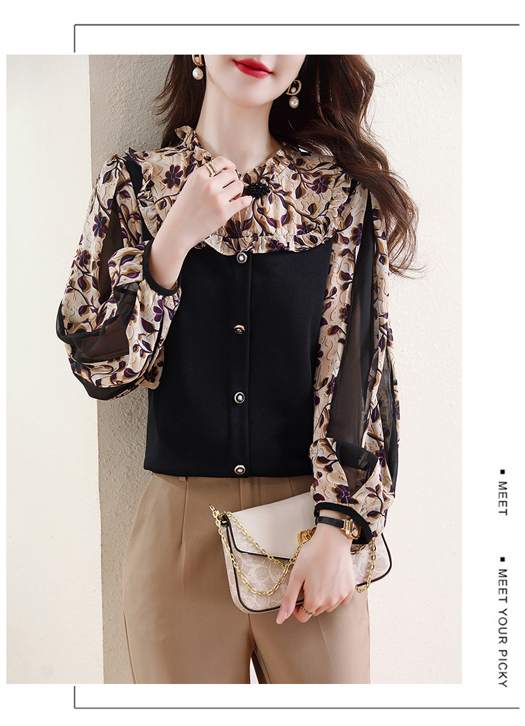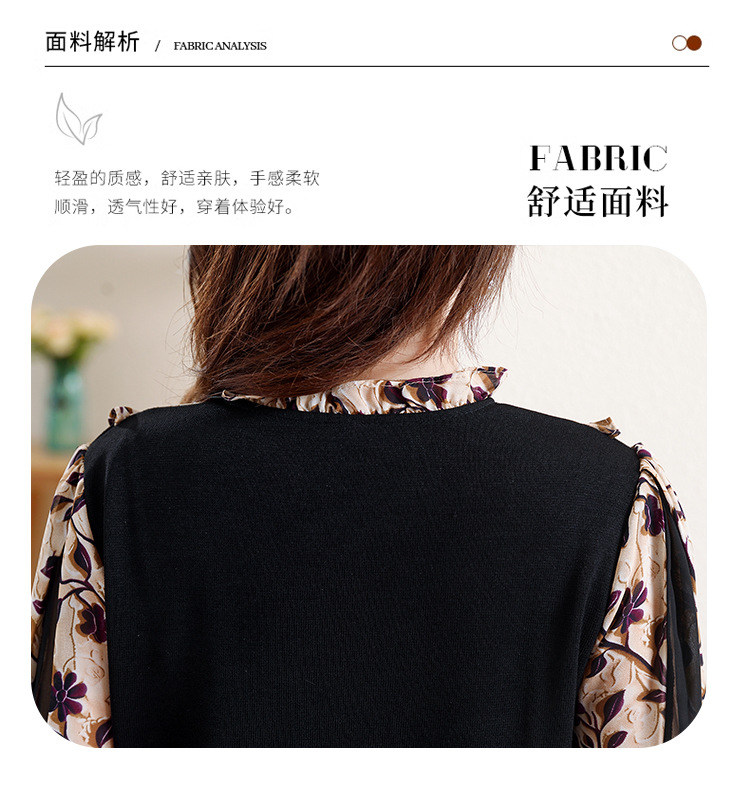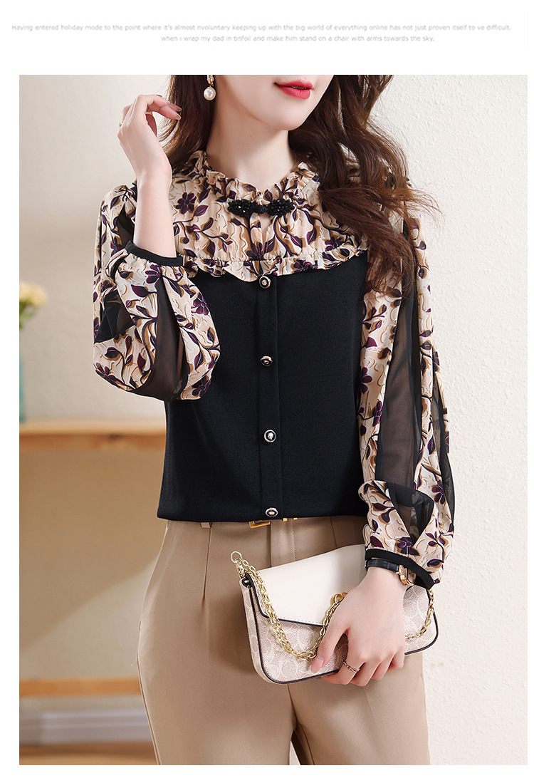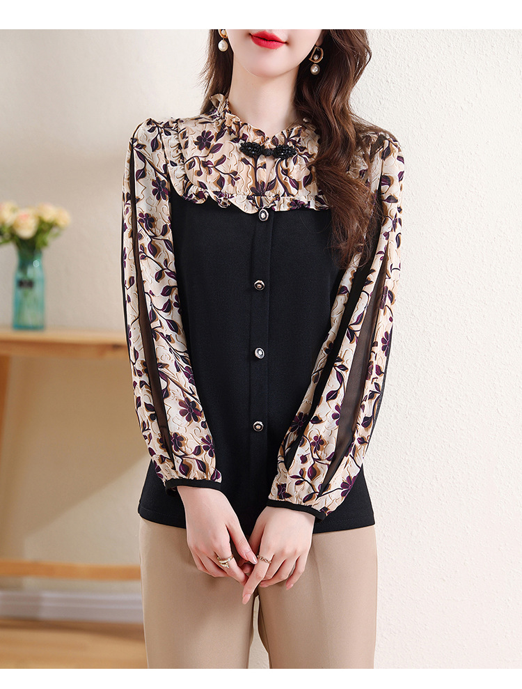 바느질 가짜 투피스 긴팔 쉬폰 셔츠 여성의 2024 가을 새로운 패션 슬리밍 연령 감소 셔츠 어머니의 탑