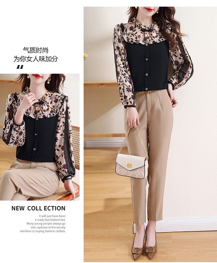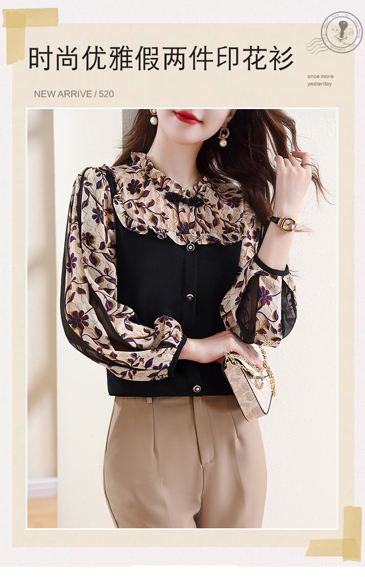 바느질 가짜 투피스 긴팔 쉬폰 셔츠 여성의 2024 가을 새로운 패션 슬리밍 연령 감소 셔츠 어머니의 탑스토어 가기