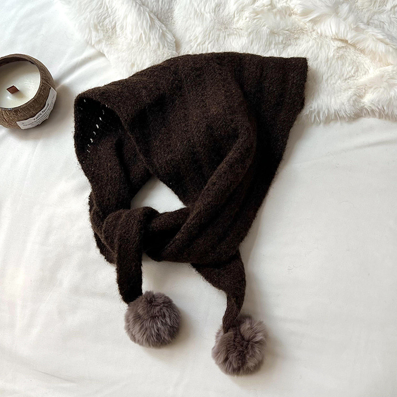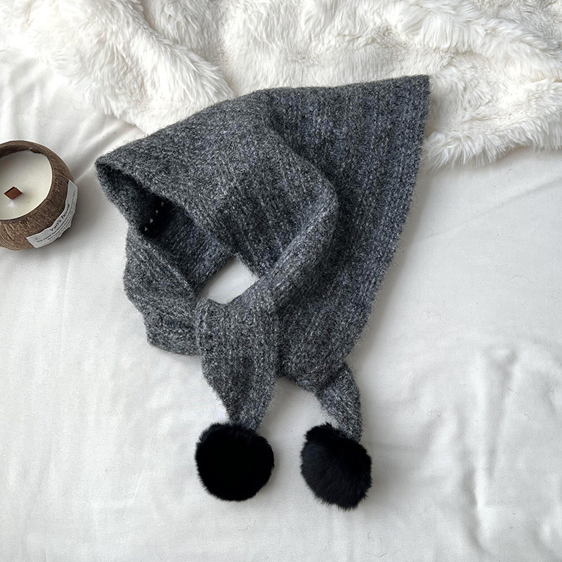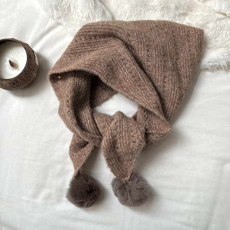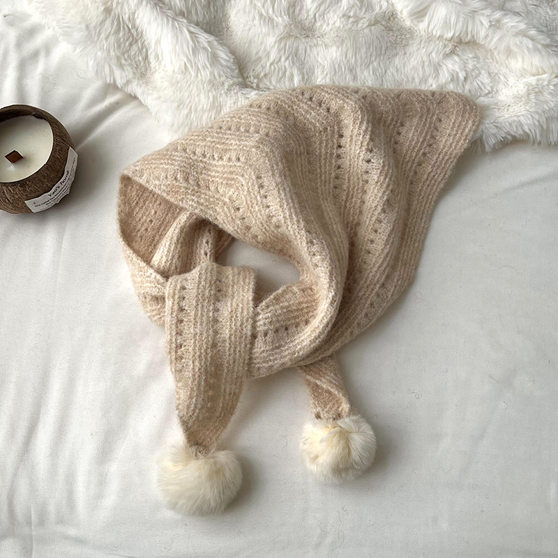여성을위한 가을, 겨울 스카프 2024 새로운 다목적 삼각형 목도리 학생 모피 공 니트 울 스카프 목도리