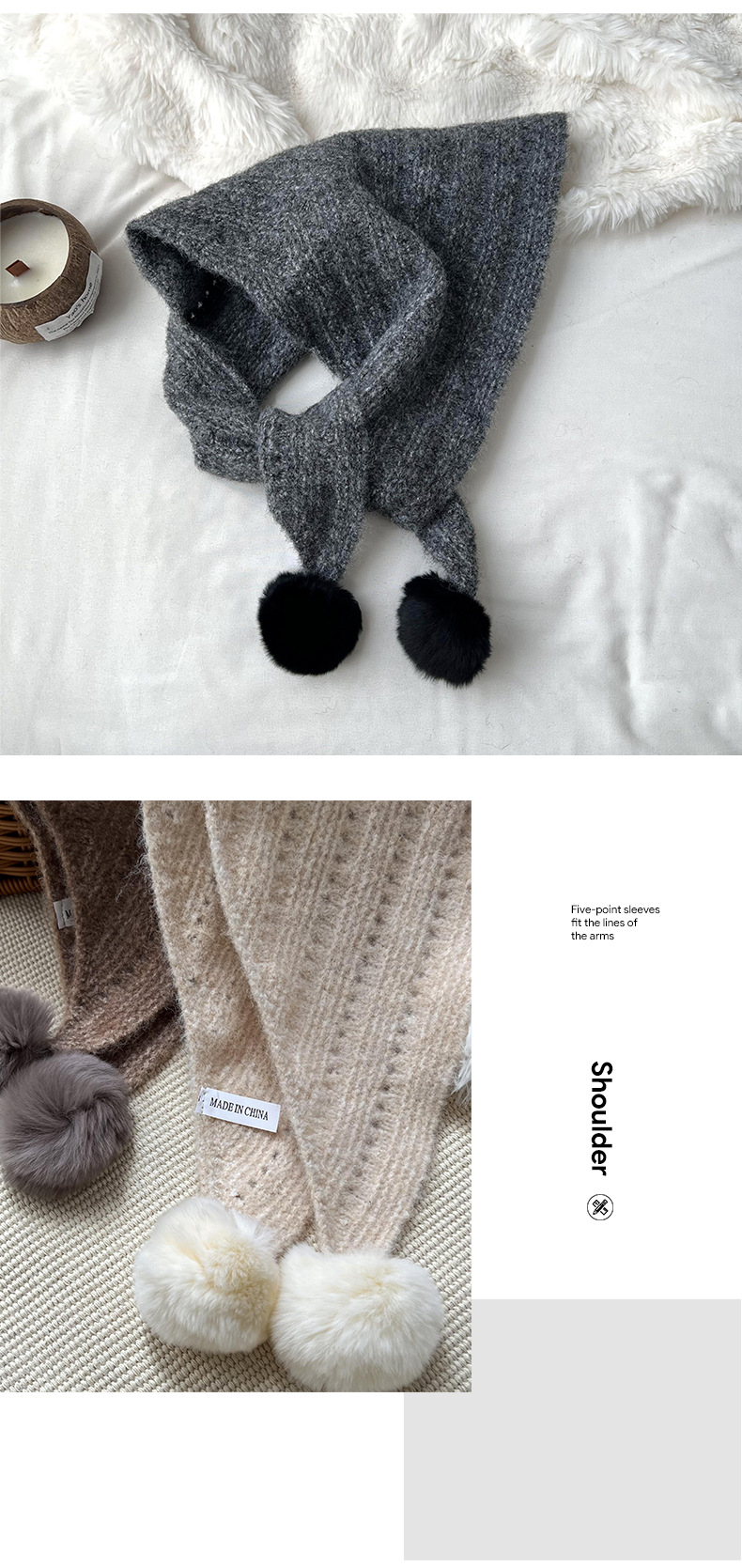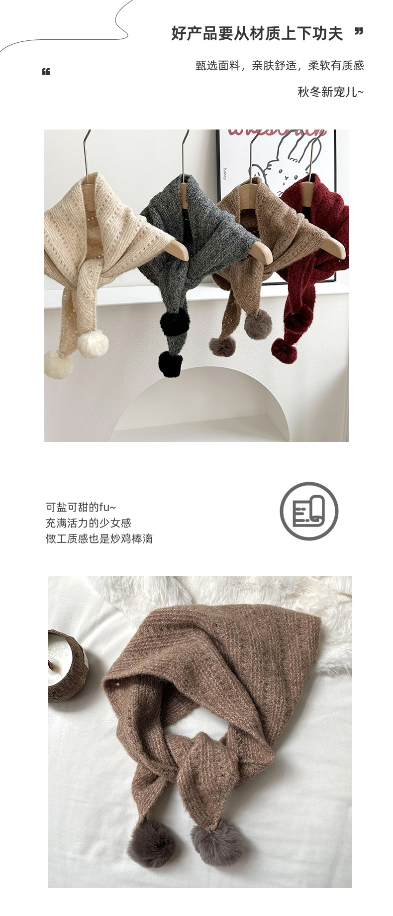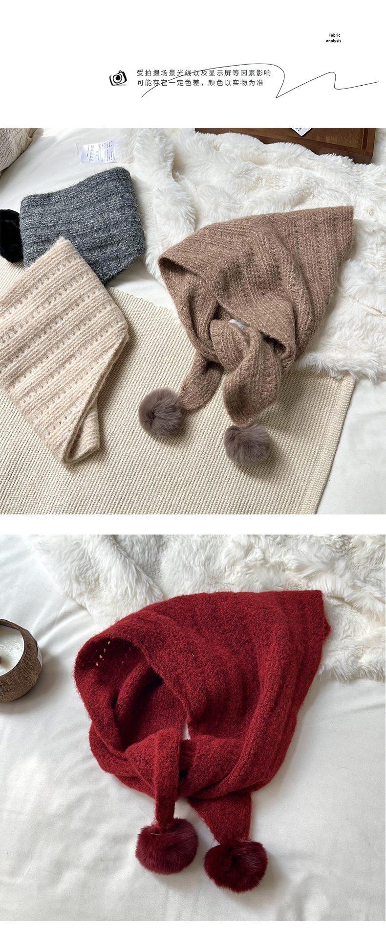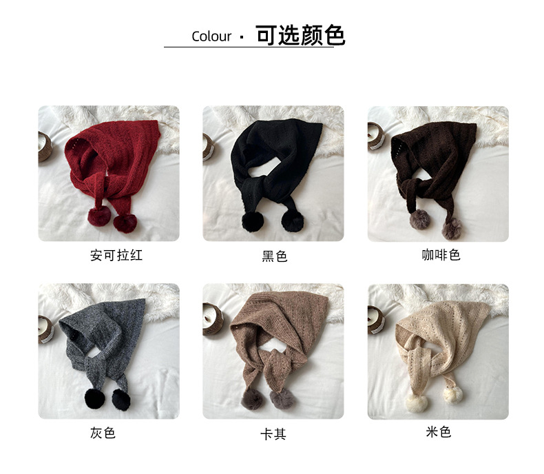 여성을위한 가을, 겨울 스카프 2024 새로운 다목적 삼각형 목도리 학생 모피 공 니트 울 스카프 목도리스토어 가기