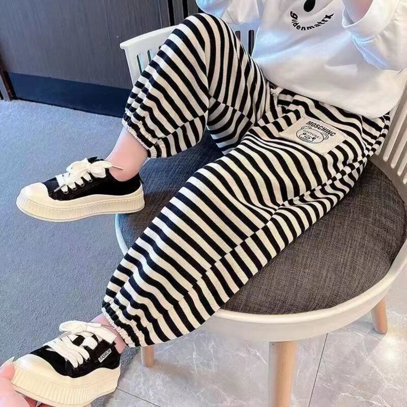 어린이 스트라이프 스웨트팬츠 남아 여아 루즈핏 캐주얼 팬츠 유아 유치원 팬츠 한국 스타일 스포츠 팬츠 유아동용