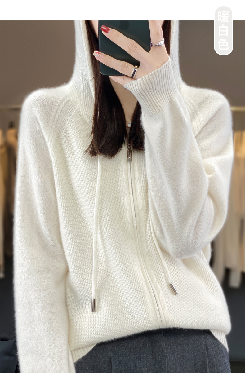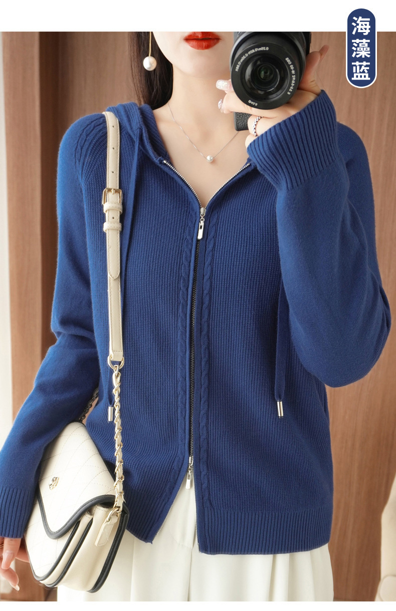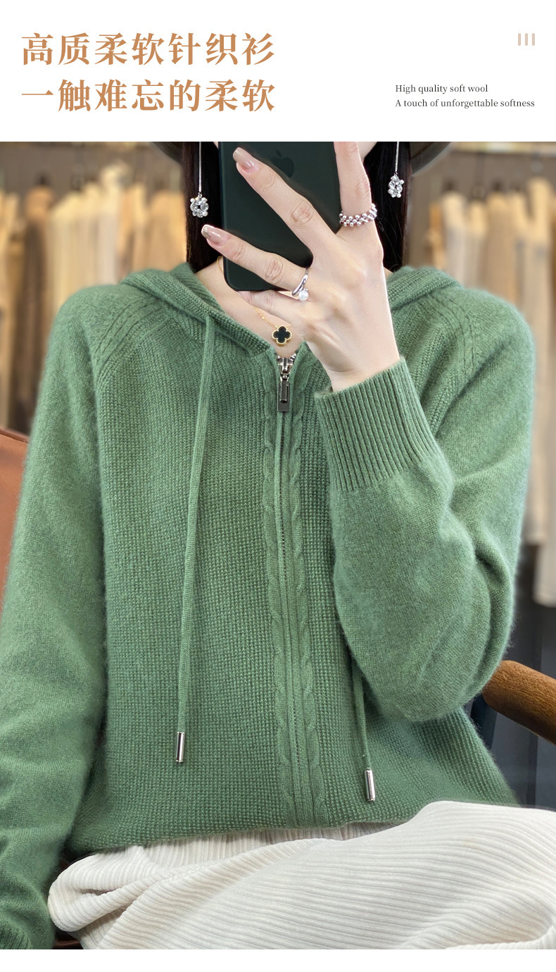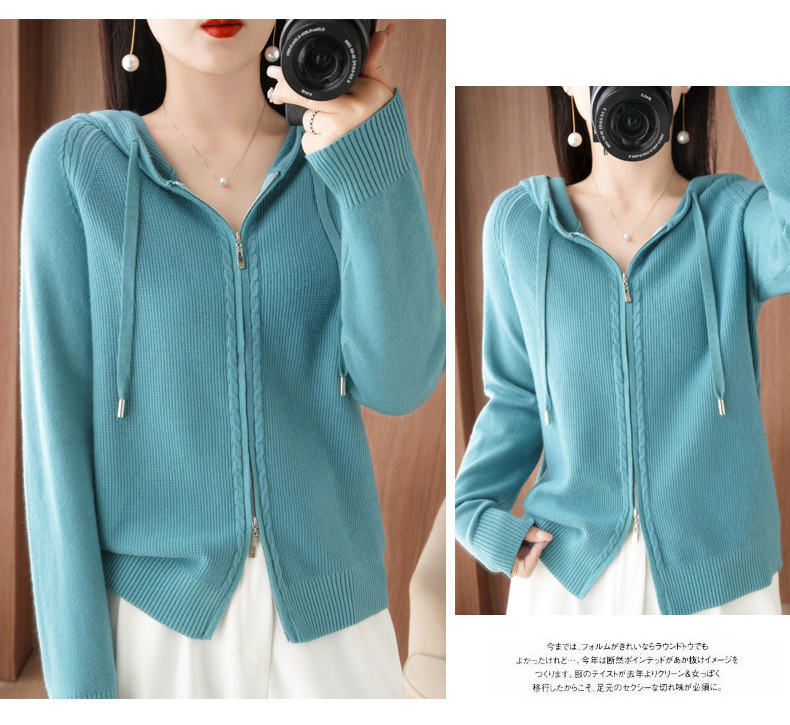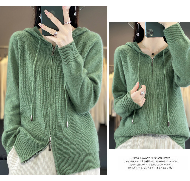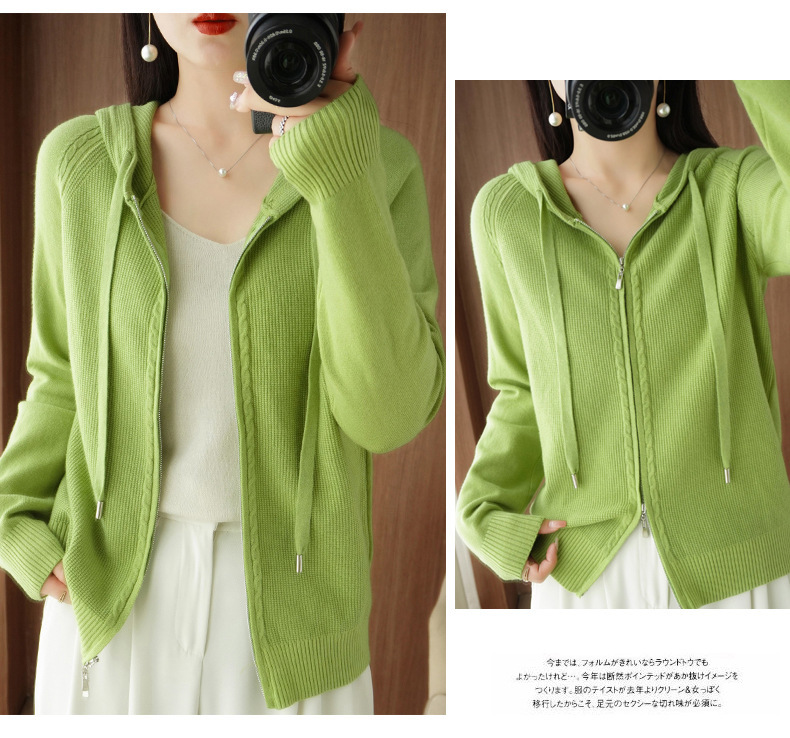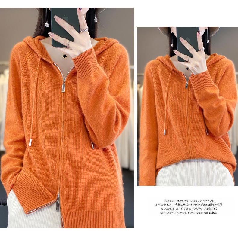 2024 가을과 겨울 새 니트웨어 카디건 한국 여성 블렌드 울 후디 더블 지퍼 후드 스웨터 재킷스토어 가기