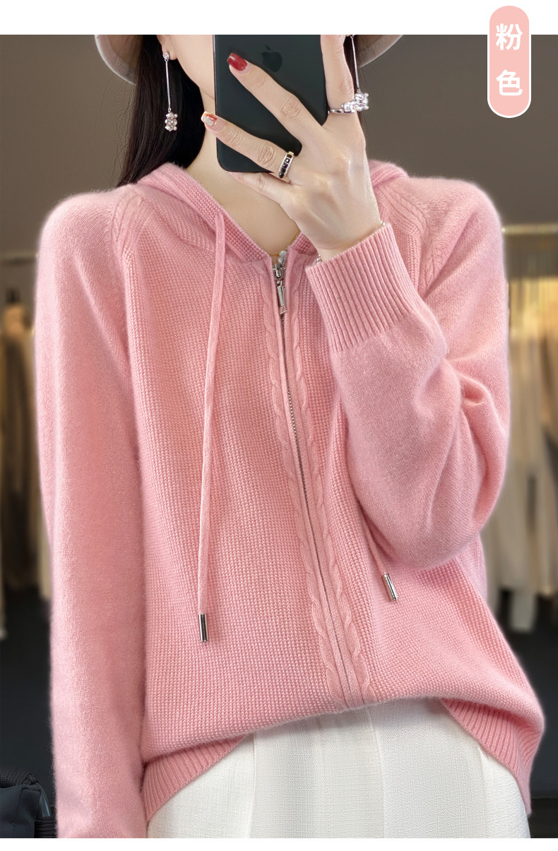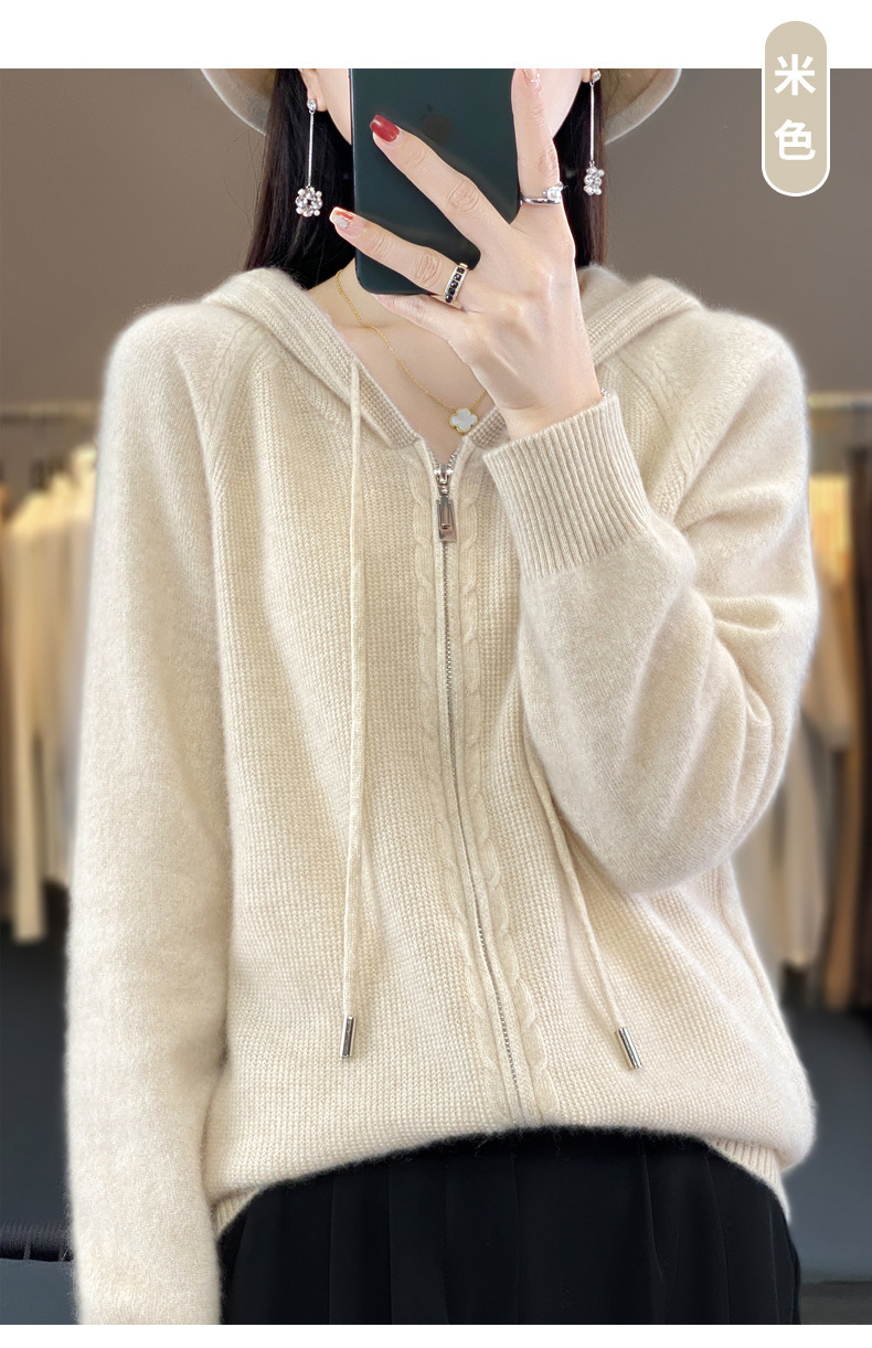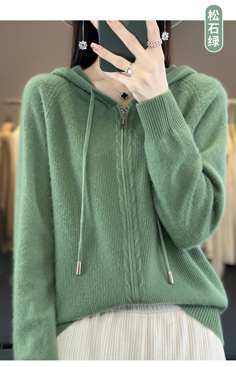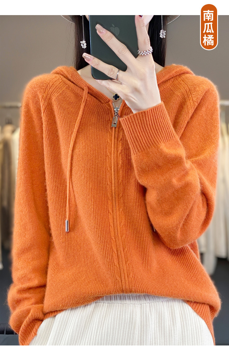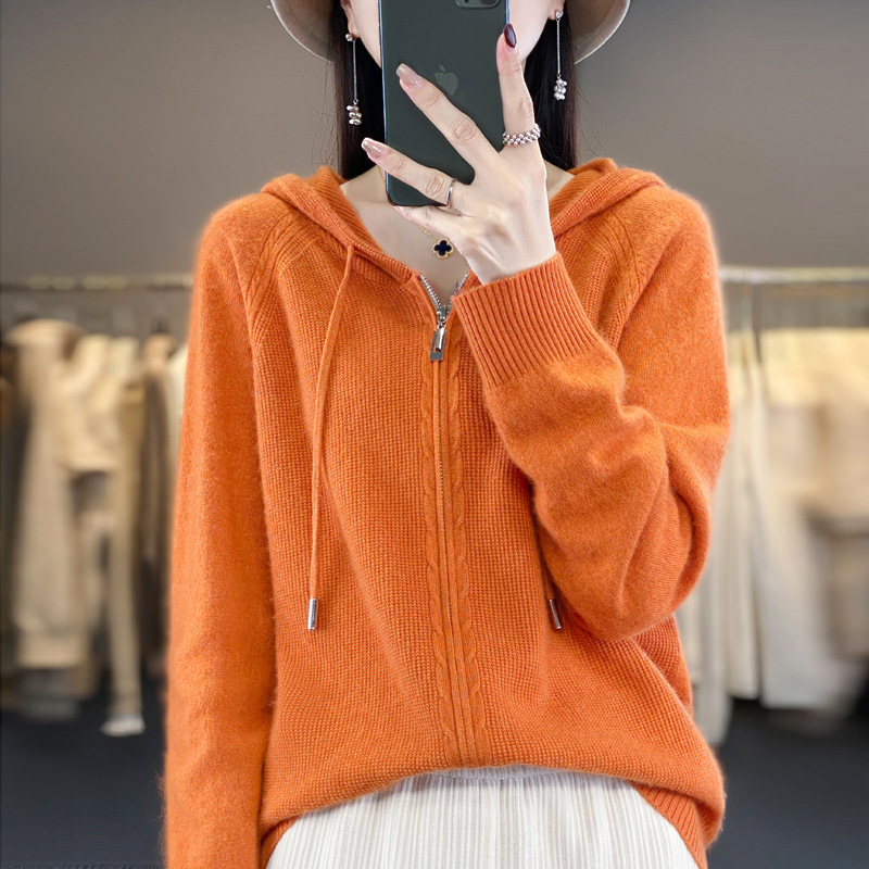 2024 가을과 겨울 새 니트웨어 카디건 한국 여성 블렌드 울 후디 더블 지퍼 후드 스웨터 재킷스토어 가기