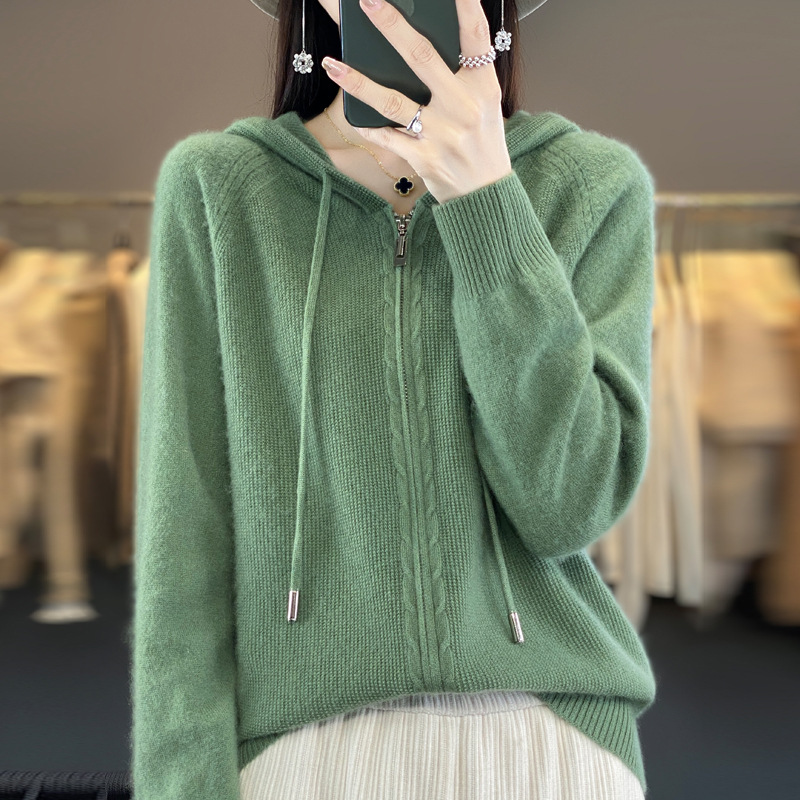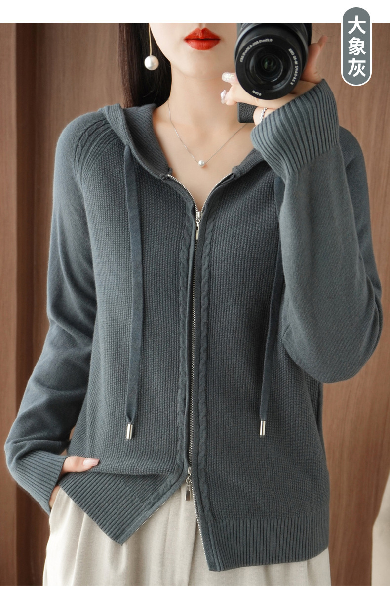 2024 가을과 겨울 새 니트웨어 카디건 한국 여성 블렌드 울 후디 더블 지퍼 후드 스웨터 재킷
