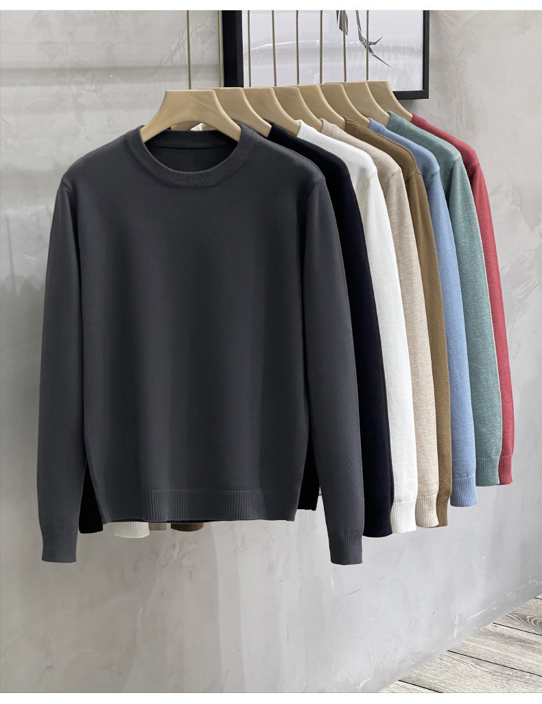 도매 스웨터 남성 둥근 목 단색 내면베이스 셔츠 2024 가을과 겨울 새로운 스웨터 스웨터 남성 패션 세대