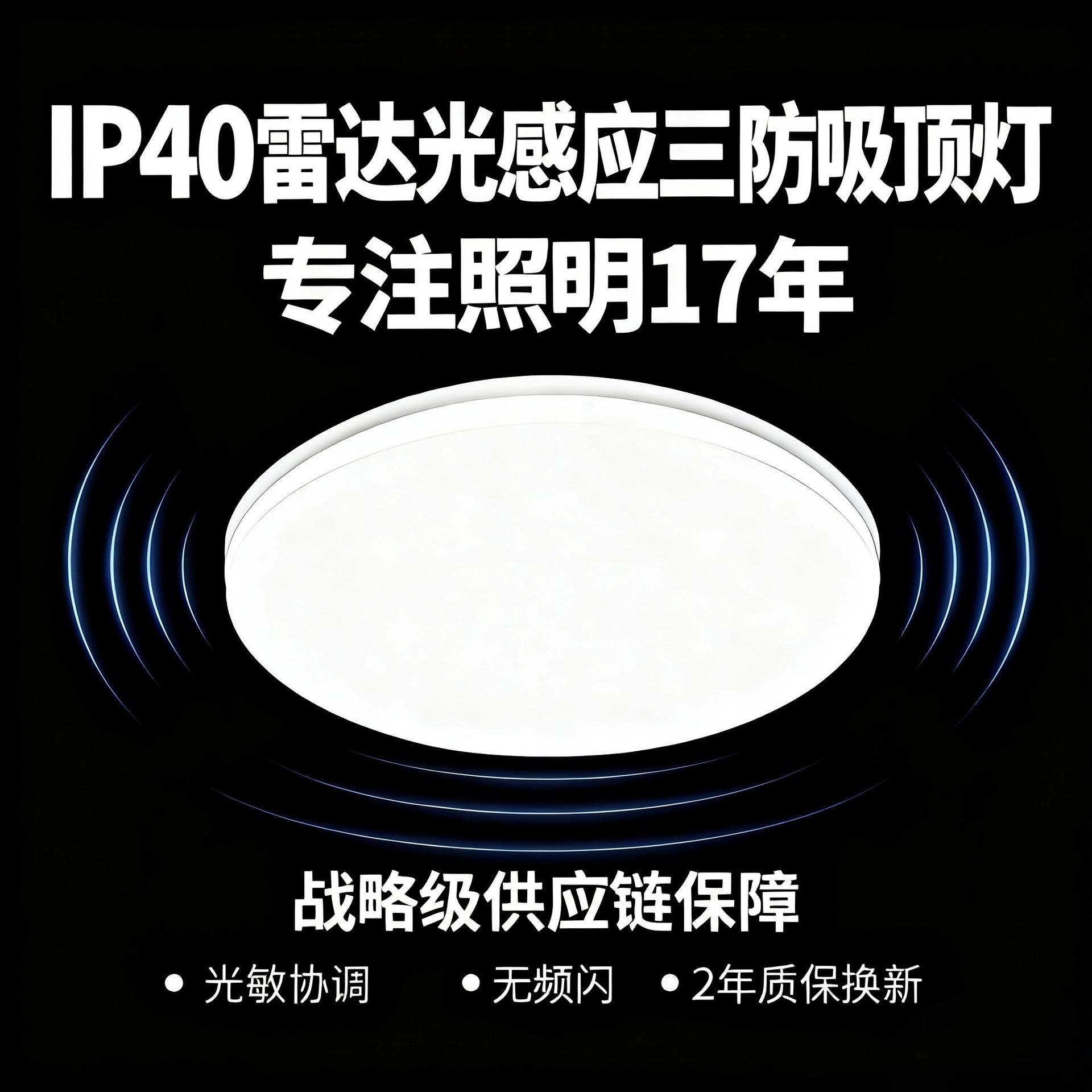 IP40 레이더 광센서 삼중 방수 천장등 이중 감지 방진 방습 창고 복도 전용 2년 교체