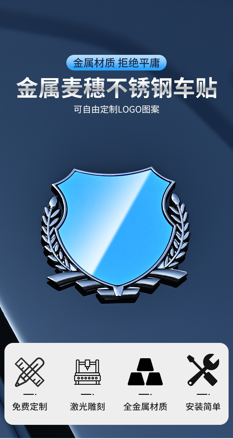• [Wenjie] 밀이삭 메탈 사이드 라벨 자동차 스티커 [미러 블랙] 싱글