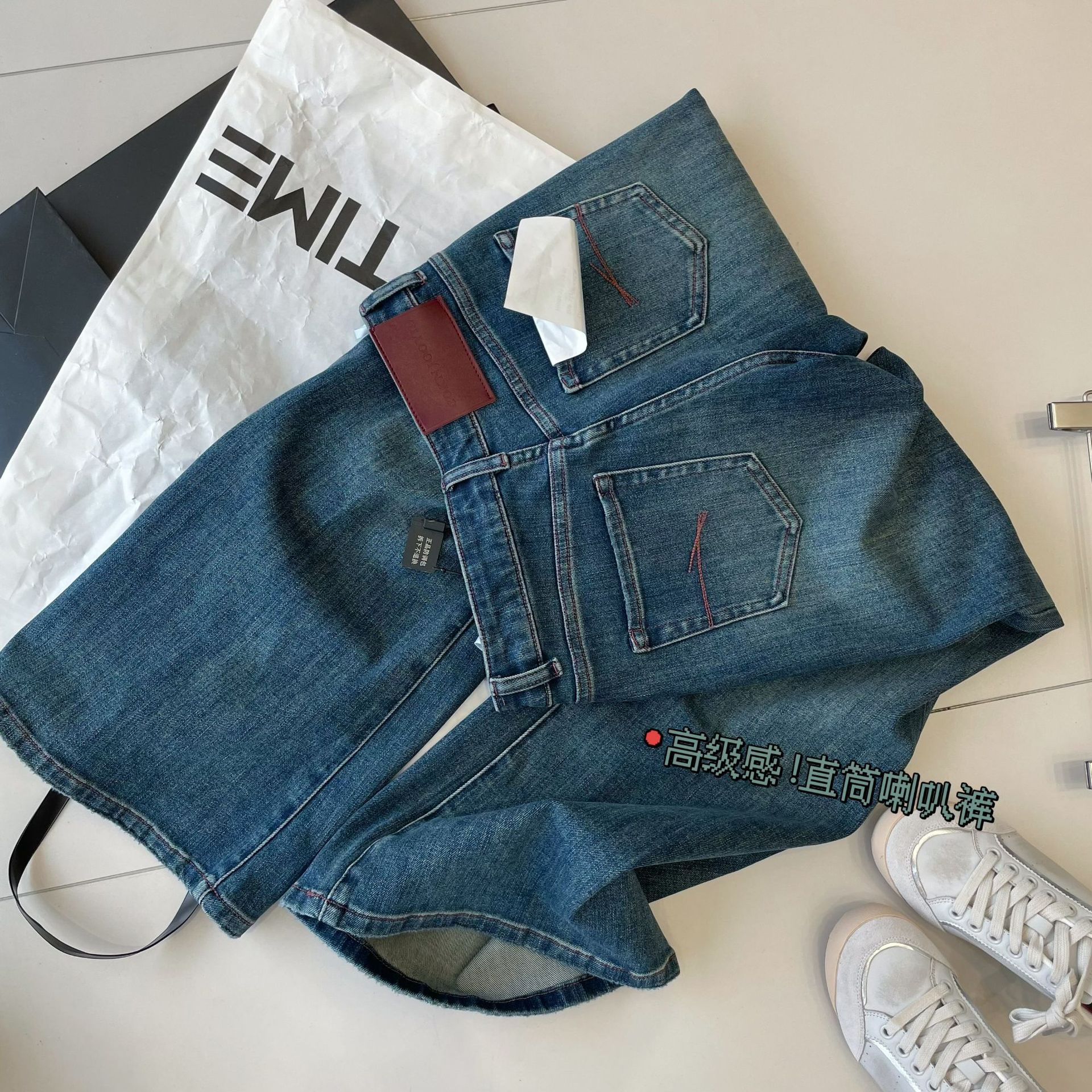 폭발! 기운은 2 미터 8 입니다! 2024 년 가을 수놓은 한국 스타일 레트로 슬리밍 넓은 다리 경적 청바지스토어 가기