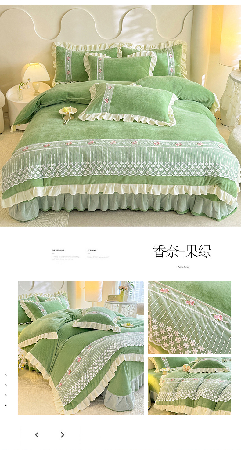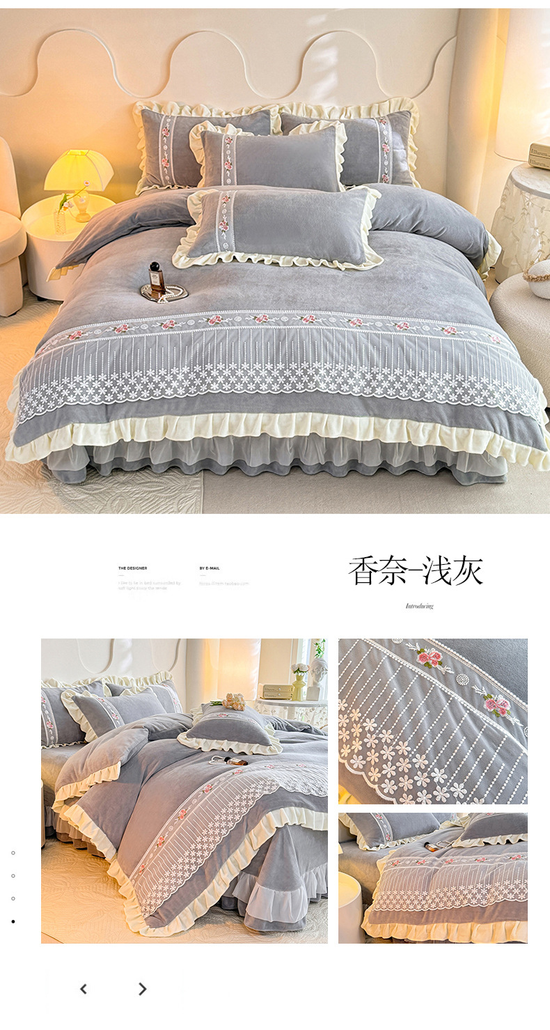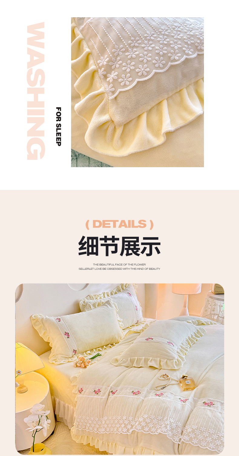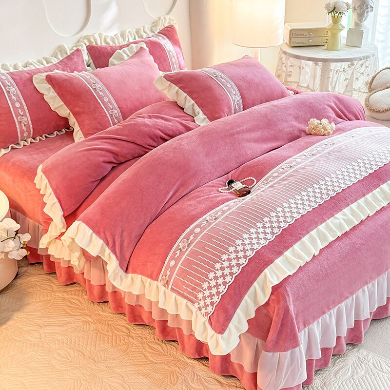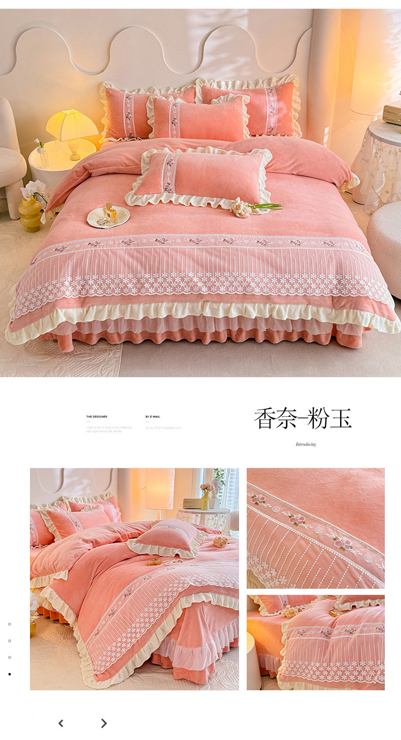 공주 스타일 자수 우유 벨벳 침대 스커트 4 피스 세트 레이스 베이비 벨벳 퀼트 커버 싱글 베이비 바이트
