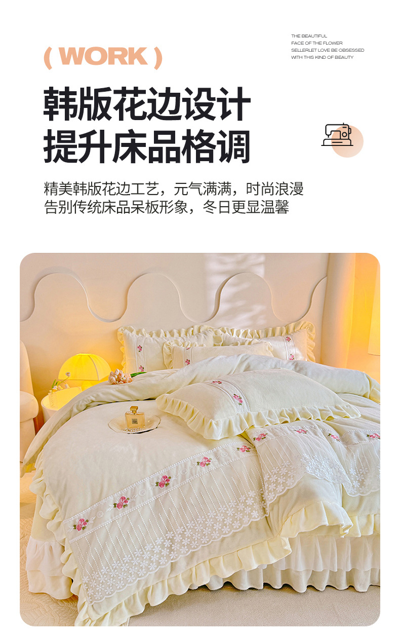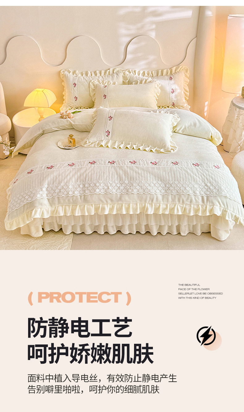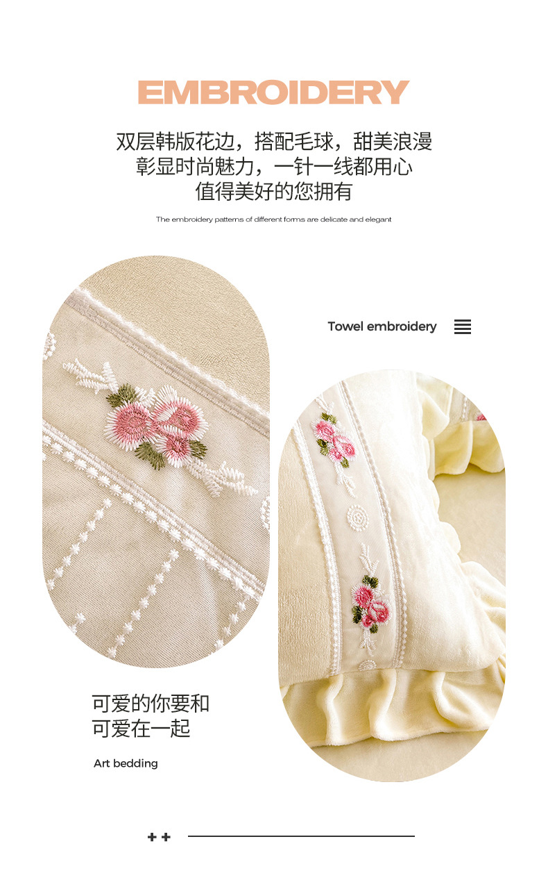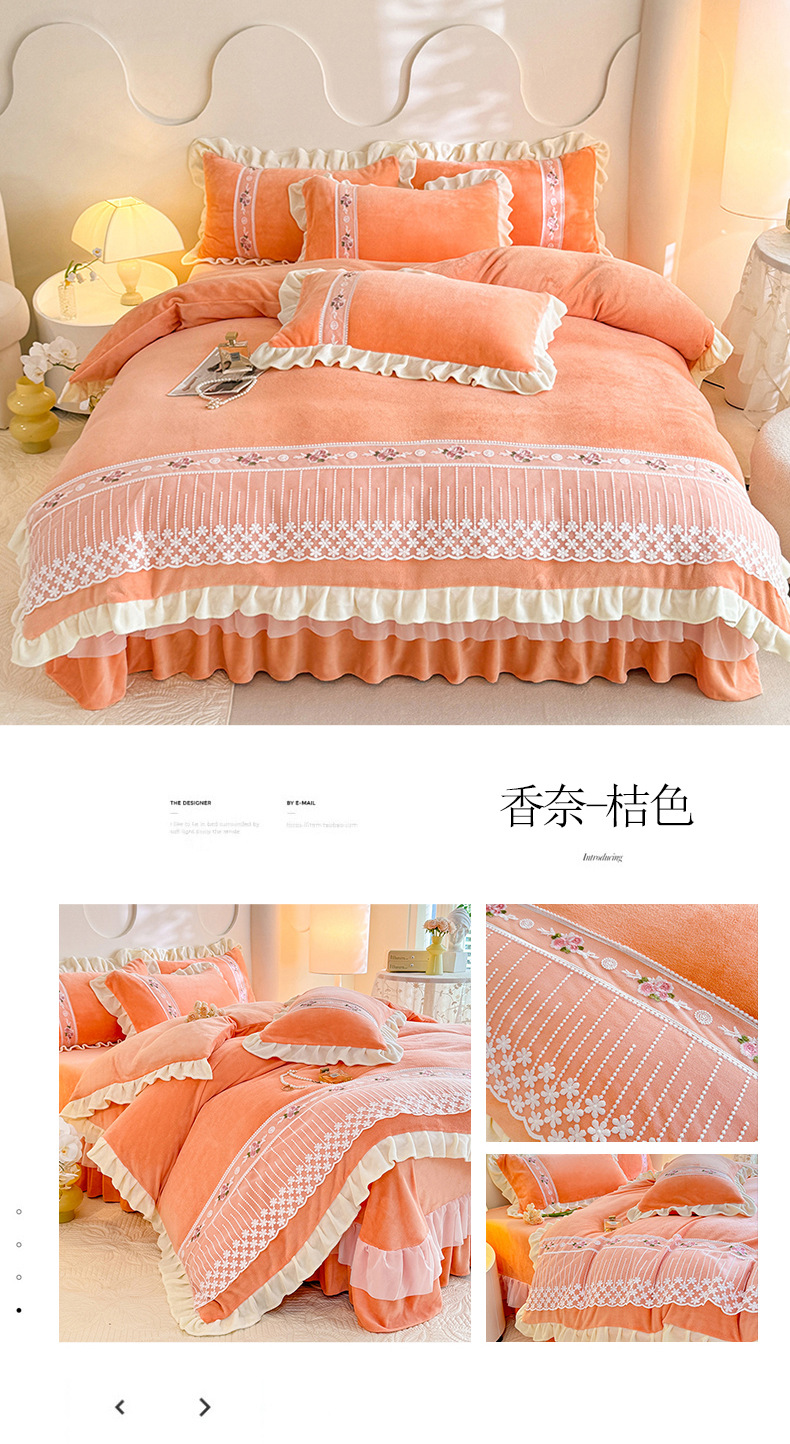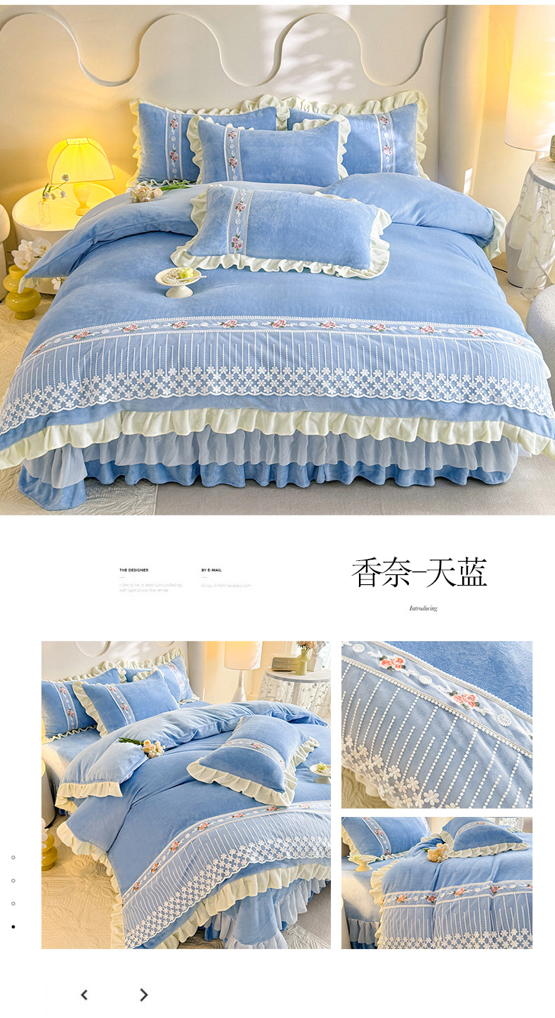 공주 스타일 자수 우유 벨벳 침대 스커트 4 피스 세트 레이스 베이비 벨벳 퀼트 커버 싱글 베이비 바이트