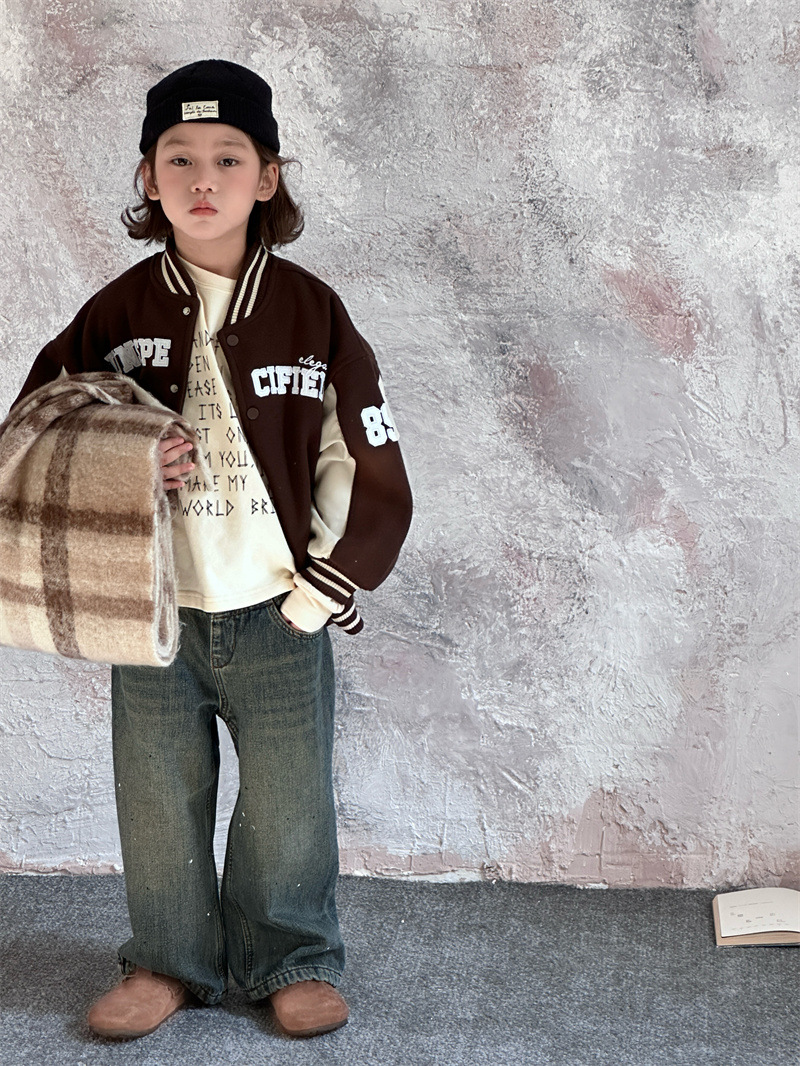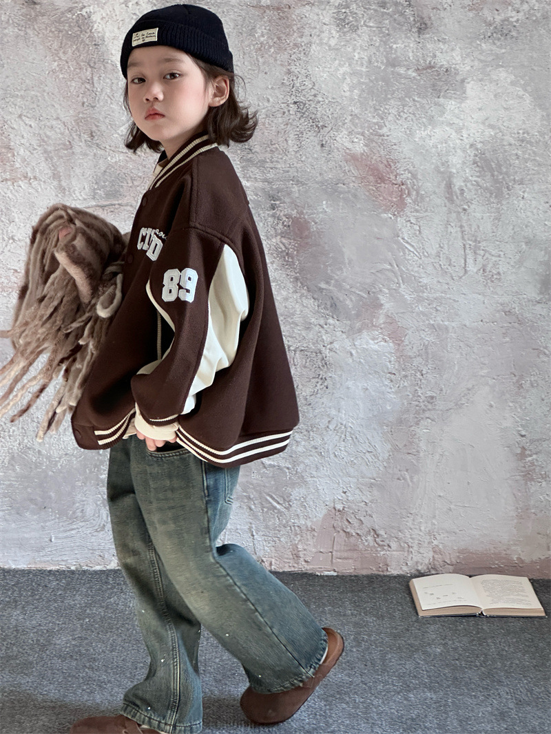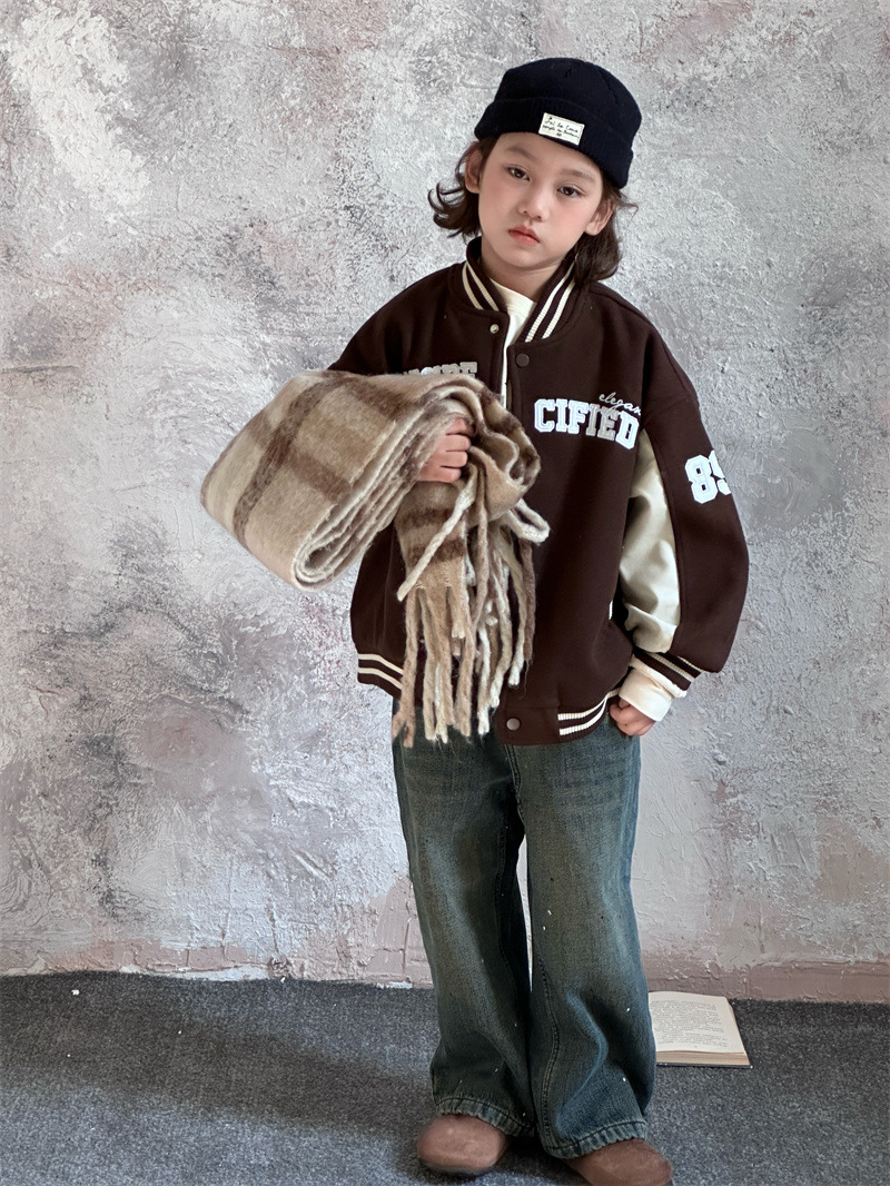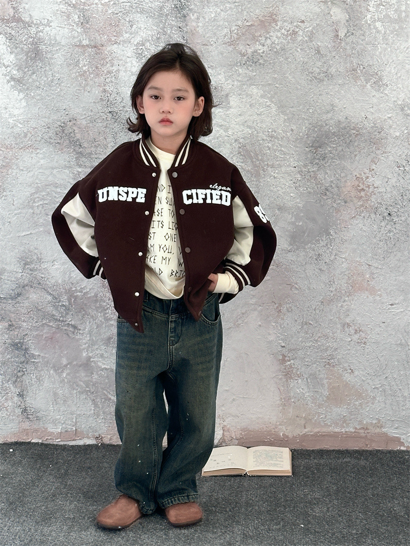 가을 2024 년 새 한국 스타일 어린이 대비 컬러 야구 저지 소년의 유행 패딩 천 편지 자수 캐주얼 자켓 트렌디스토어 가기