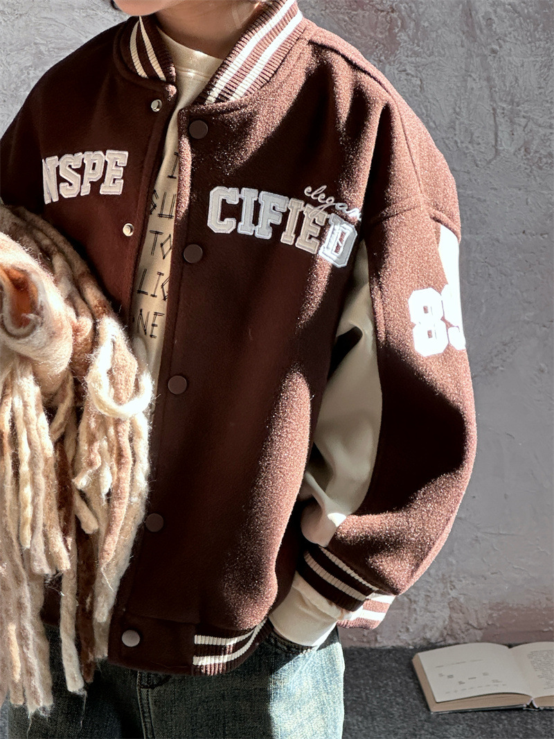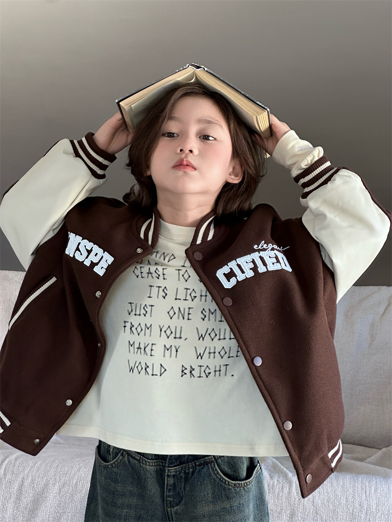 가을 2024 년 새 한국 스타일 어린이 대비 컬러 야구 저지 소년의 유행 패딩 천 편지 자수 캐주얼 자켓 트렌디