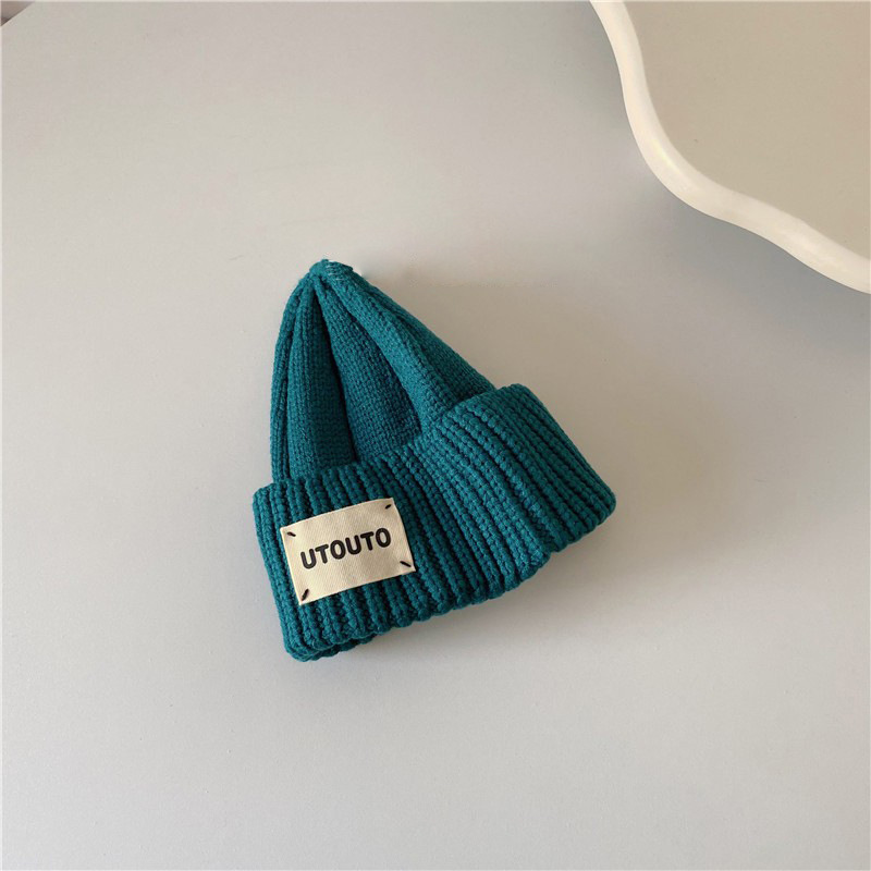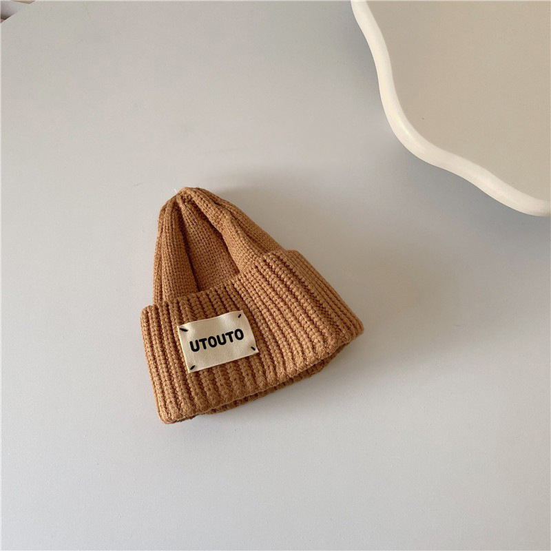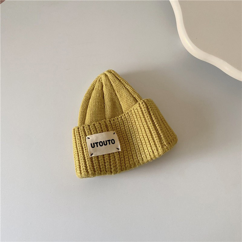 Ins 한국 아기의 서양식 단색 편지 풀오버 울 모자 가을과 겨울 한국식 올매치 어린이 니트 모자 트렌디스토어 가기