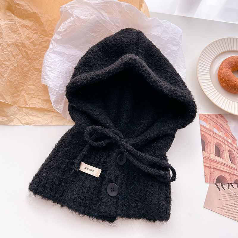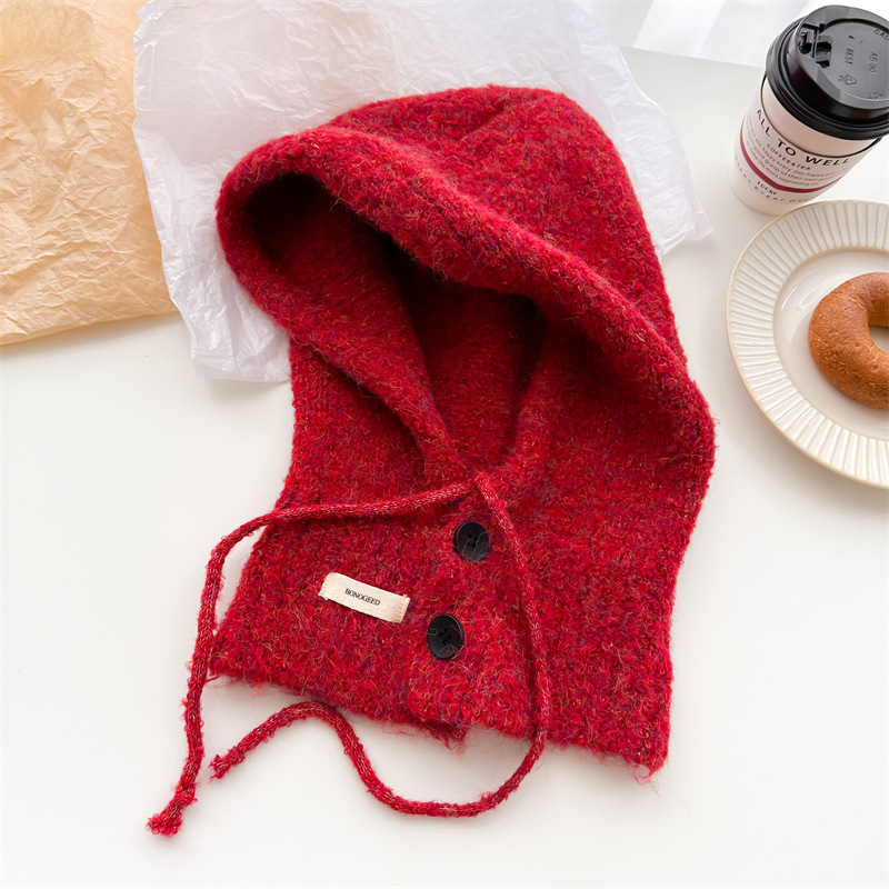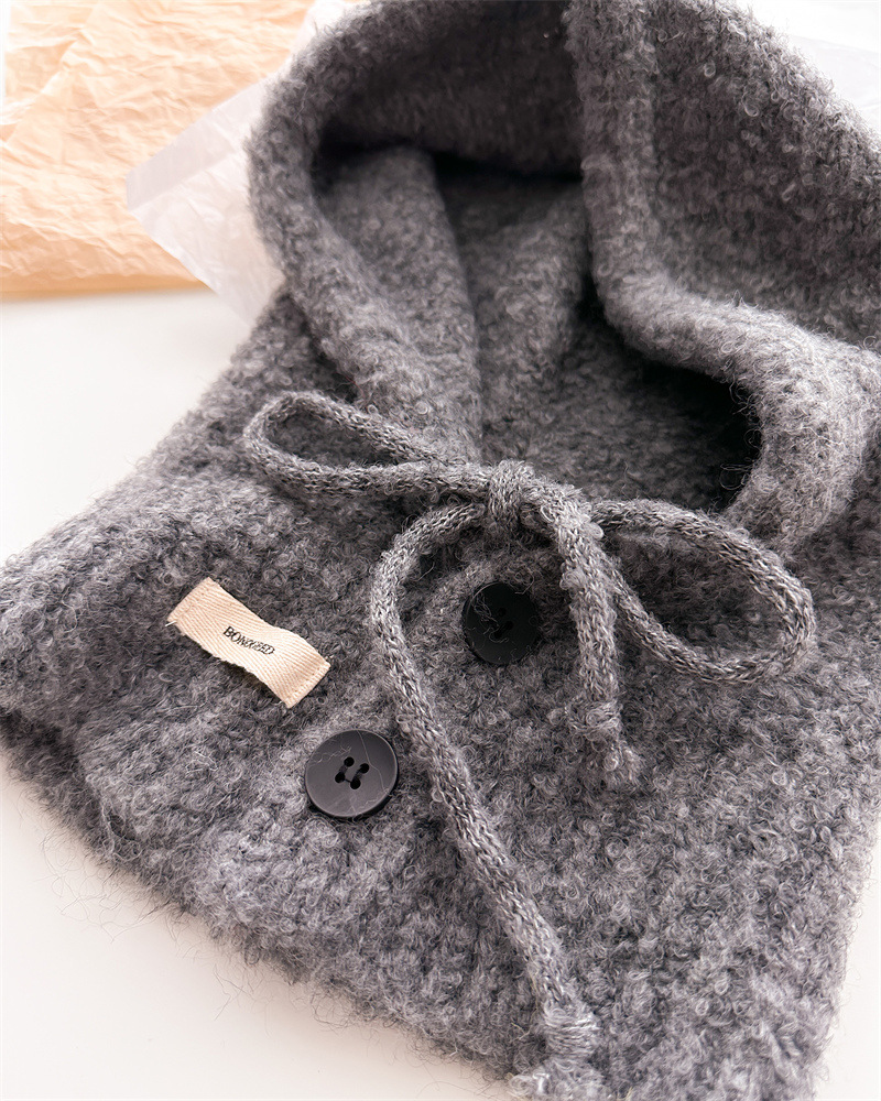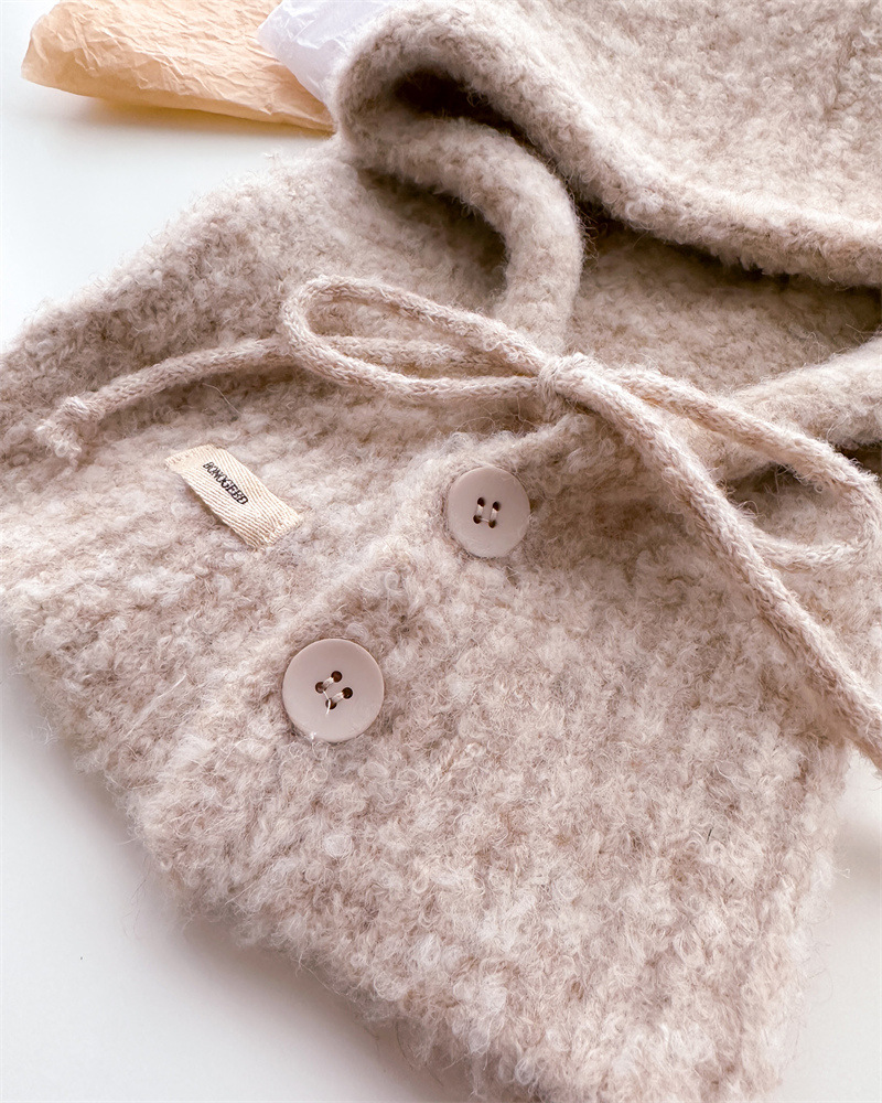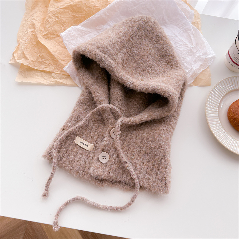 드로우 스트링 버튼 솔리드 컬러 한국 스타일 발라 클라 바 울 니트 모자 겨울 따뜻한 귀 보호 모자