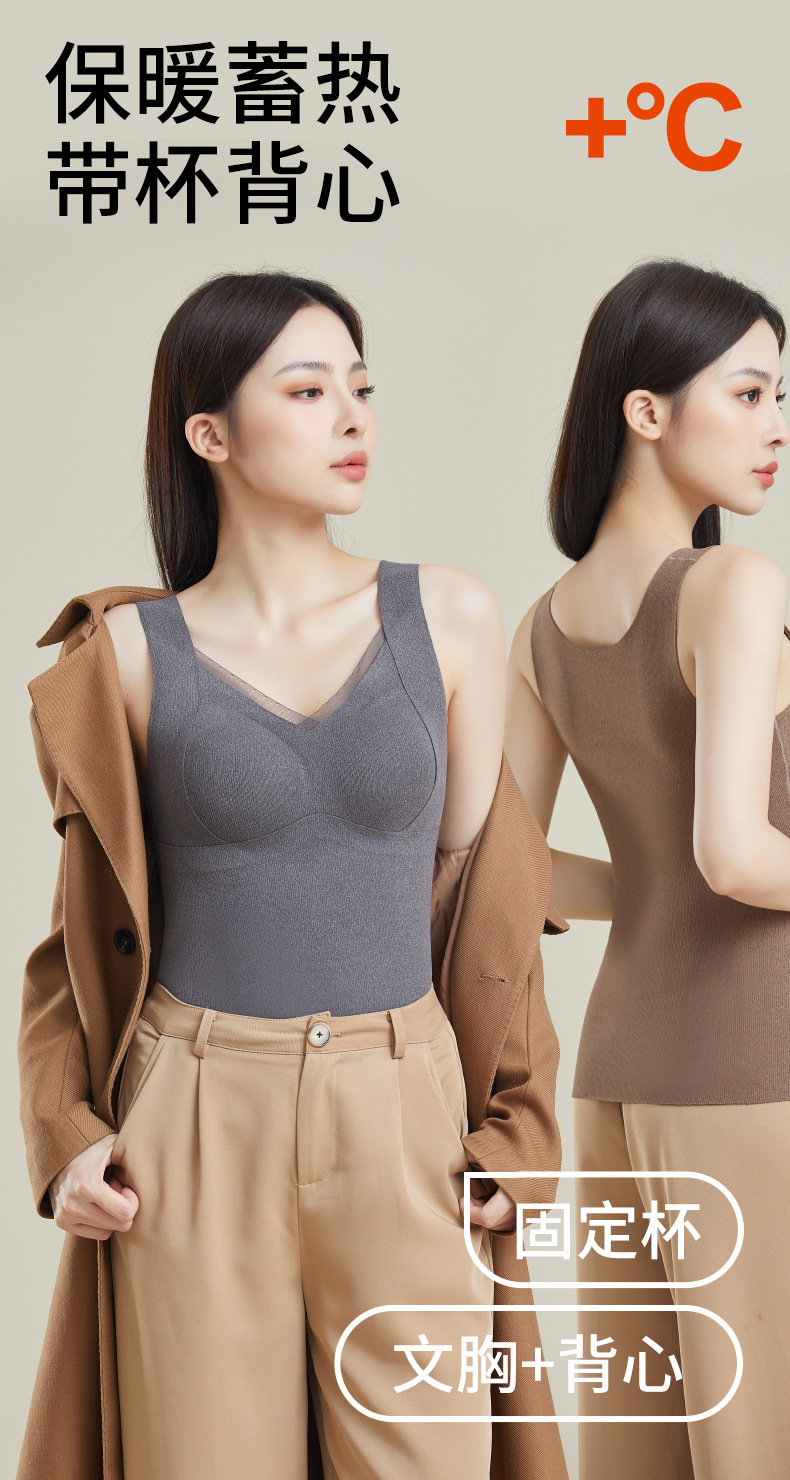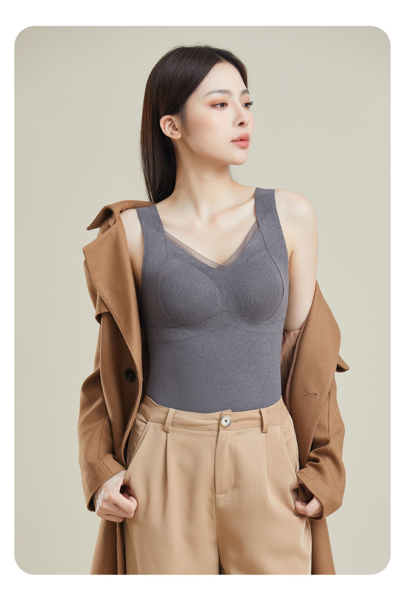 양면 벨벳 벨트 가슴 패드 따뜻한 조끼 여성 traceless 열 저장베이스 탑 슬링 속옷 기모 가을과 겨울