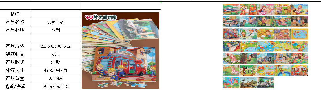 나무 30 조각 퍼즐 유아 만화 동물 교통 비행기 퍼즐 아기 조기 교육 건물 블록 장난감스토어 가기