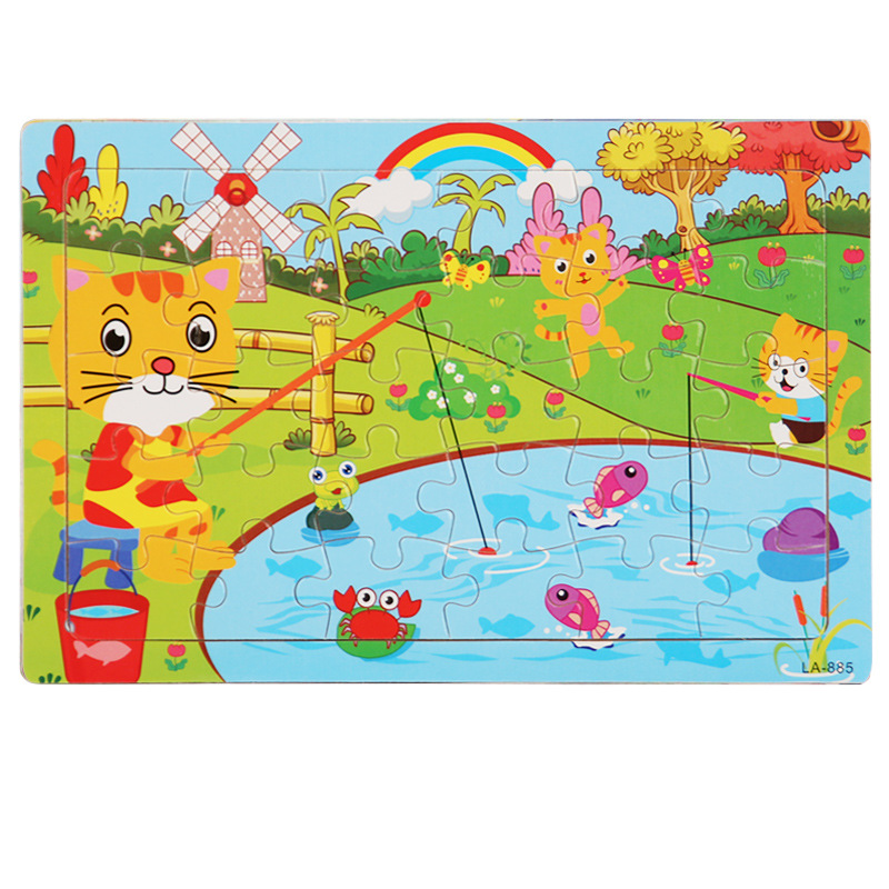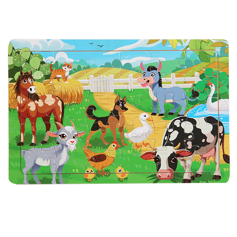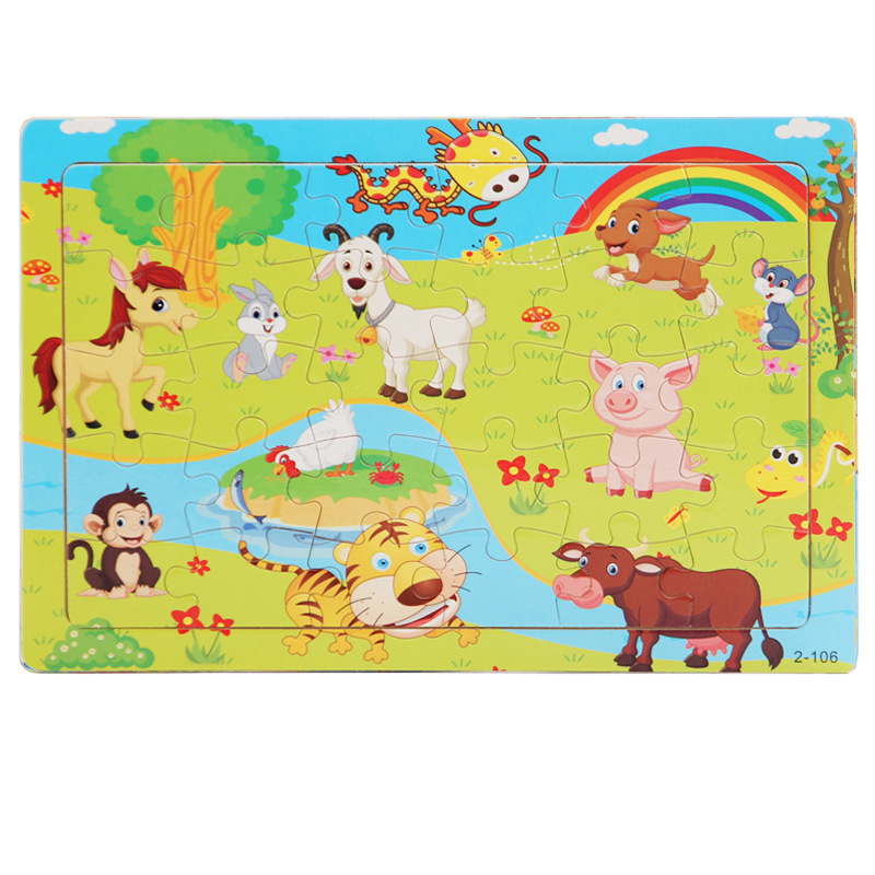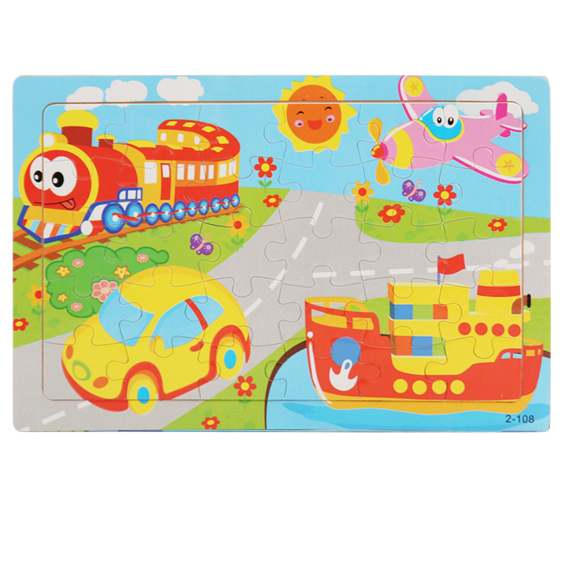 나무 30 조각 퍼즐 유아 만화 동물 교통 비행기 퍼즐 아기 조기 교육 건물 블록 장난감