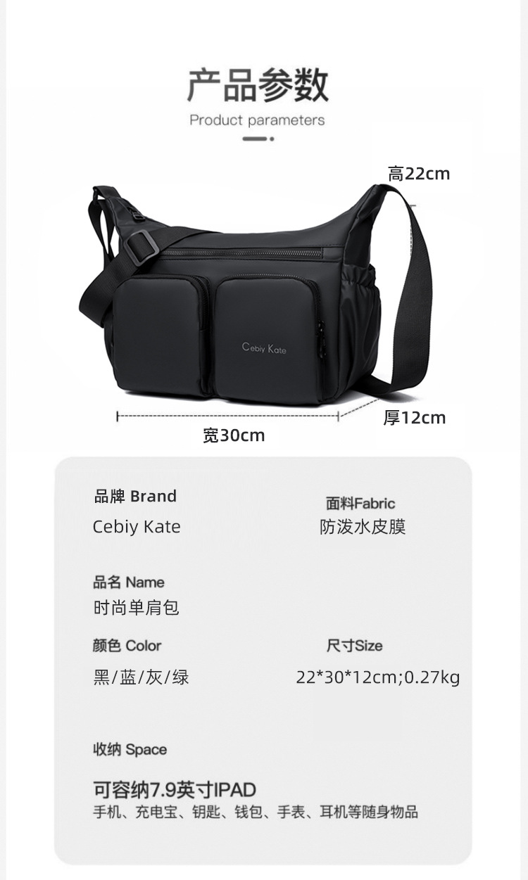 남성 크로스 바디 백 여름 새로운 방수 헝겊 다기능 패션 캐주얼 옥스포드 천 매일 통근 어깨 가방스토어 가기