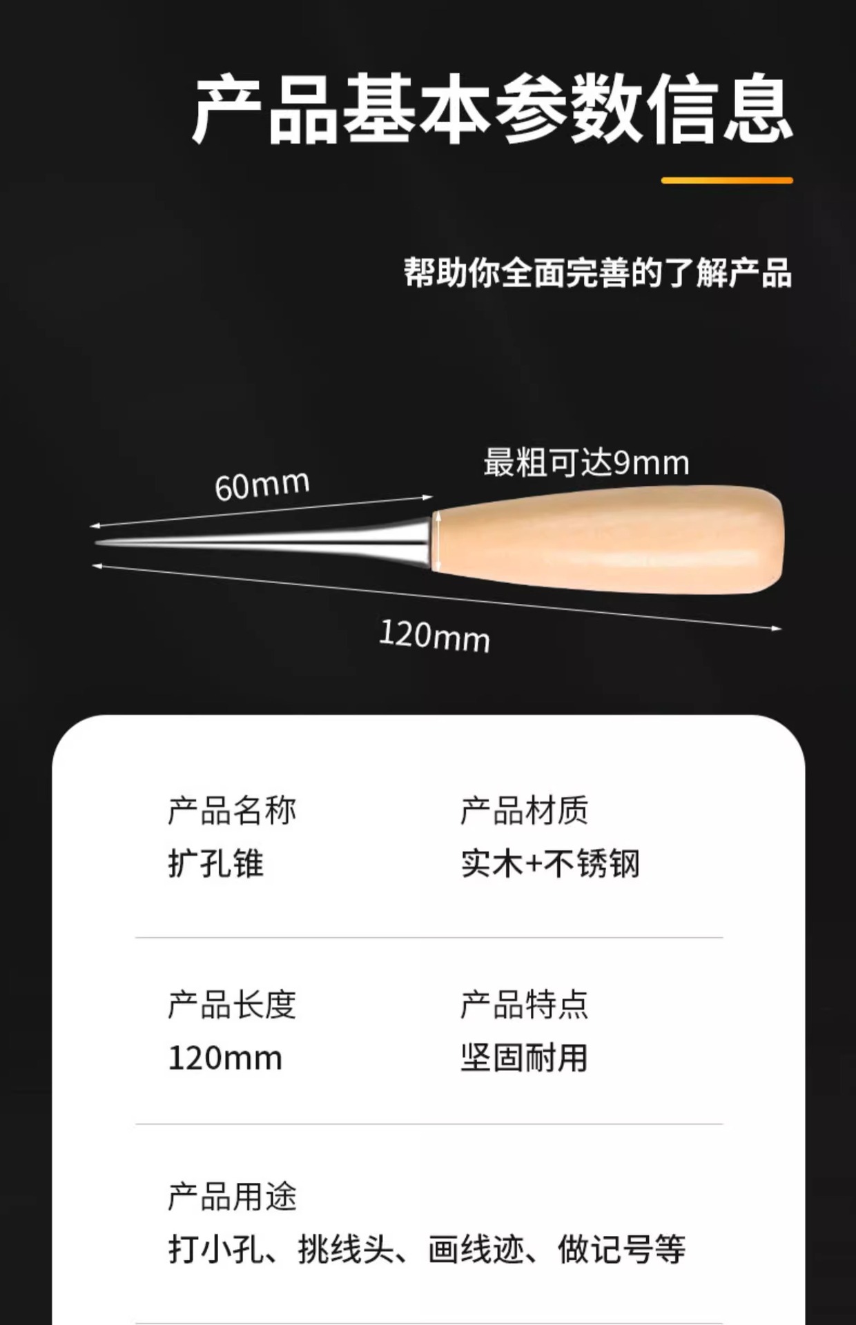 도매 둥근 구멍 단단한 나무 손잡이 송곳 수제 DIY 가죽 송곳 ceath awl 바느질 송곳 손 도구스토어 가기
